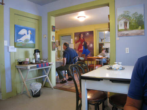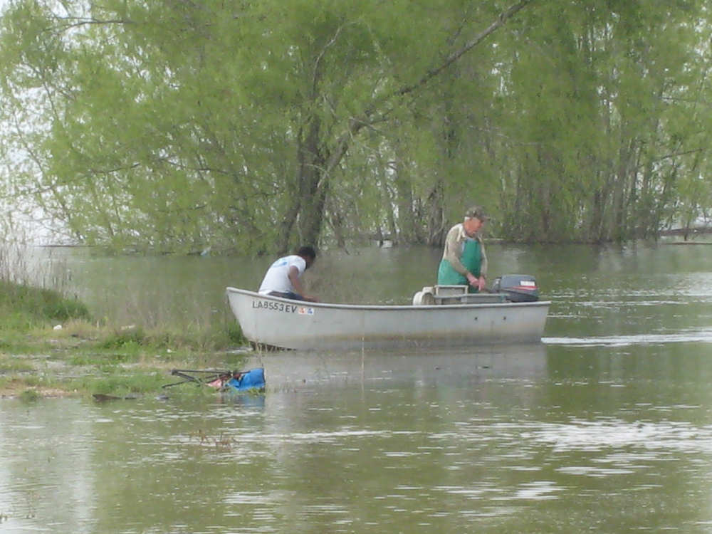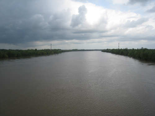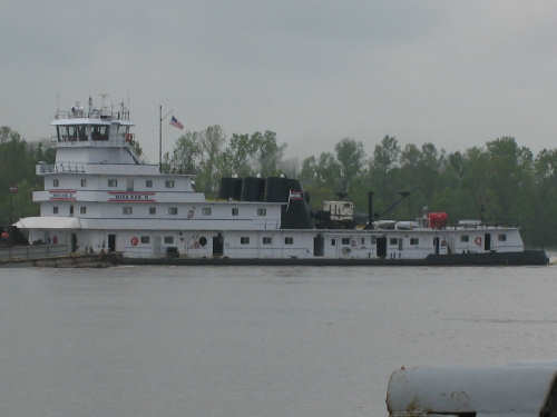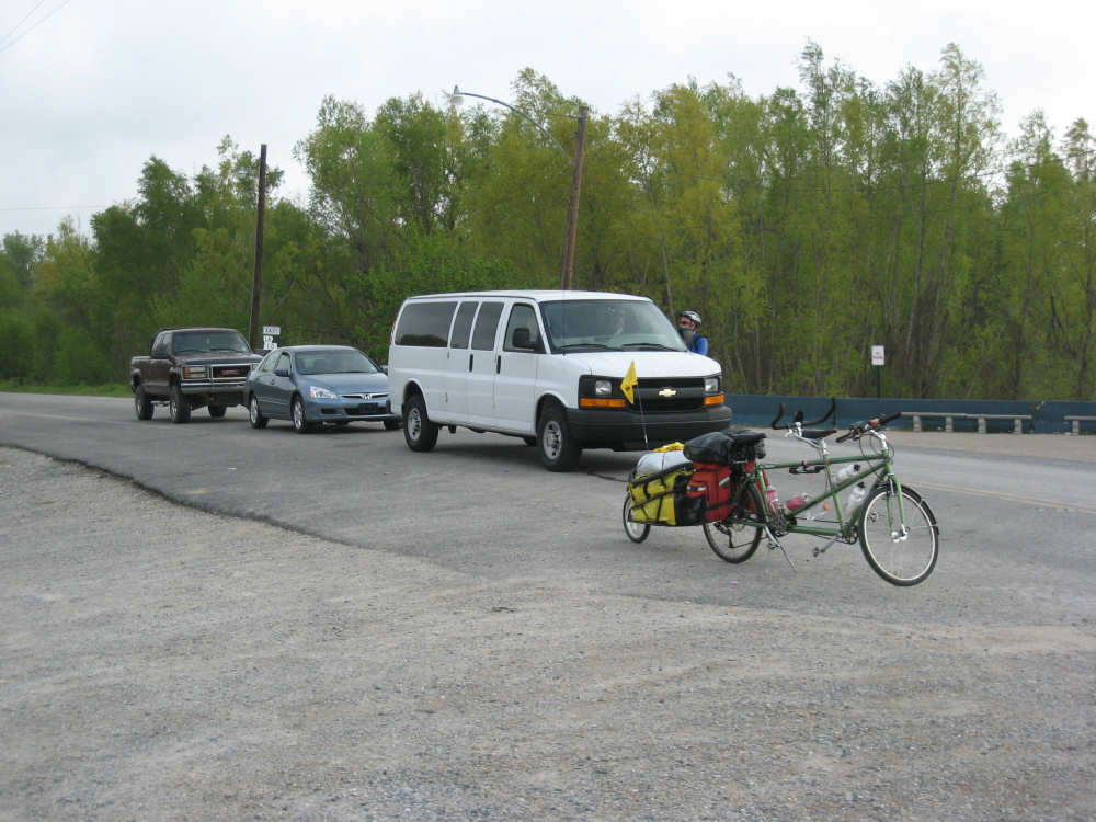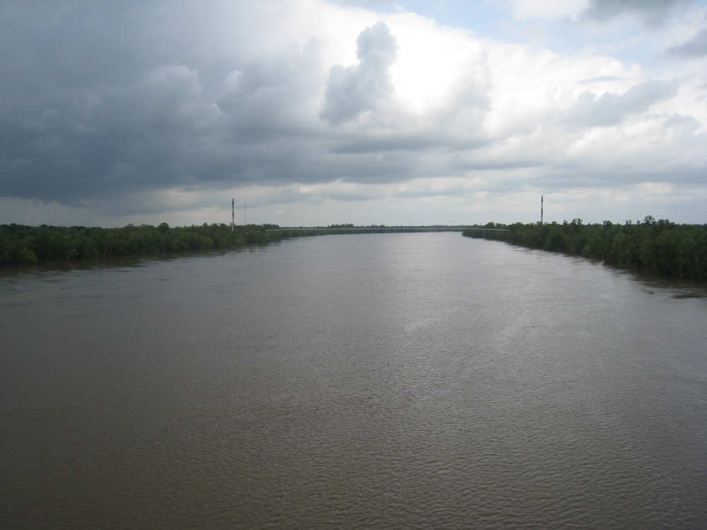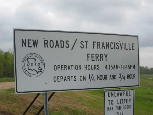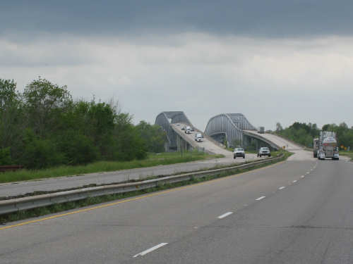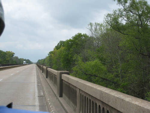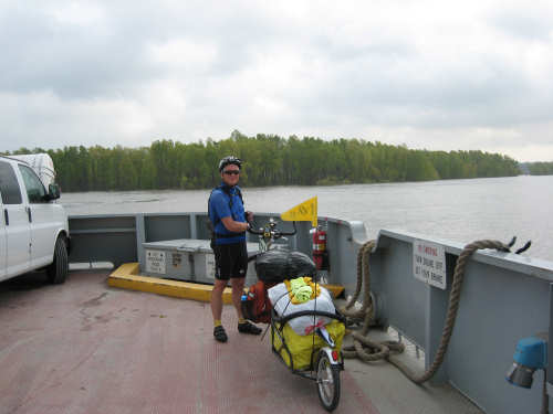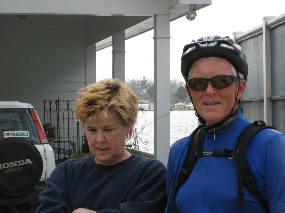 Tuesday, April 01, 2008 A very big photo day - we took 3-4 times more pictures today than normal (168) and managed to whittle them down to 50. A lot of them were taken from the bike (or we would never have gotten to our motel tonight!) so the quality may not be as good, but we hope you like them enough to get through all 50. The travelers' angels continued being good to us - our tent didn't get rained on during the night (in fact, we saw a mass of stars before we went to bed) so everything was dry when we packed up. As we were heading out, we ran into the nice couple, Suzanne and Norman, from Quebec whom we had met last night, so we took the opportunity to take their picture. We had only about 5 miles to go to get to the ferry in St. Francisville where we would cross the Mississippi River, and we hoped to find some breakfast there. As luck would have it, we saw a policeman by the road and he directed us to a wonderful place we never would have found, as it was tucked away in a little row of cabins. The Birdman Cafe and Books was a quaint little cafe, with paintings and hand-carved birds by local artists on display, a local musician playing guitar (he also baked their organic whole-grain bread), and delicious food. We talked with a woman there who had seen us on the road near our campground the night before! Fully charged by the great food and coffee, we set out for the ferry, passing through the beautiful town of St. Francisville in the process (lots of pictures there). As we went through town, we were passed by our Quebec friends who seemed to be headed that way, too. We got to the ferry just as it pulled out (our friends must have gotten on that one), but knowing it would only be about 20 minutes until it got back, we passed the time taking pictures. We had been told the river was very high, apparently due to snowmelt up in its more northern reaches like Kansas. It was quite odd to see trees along the banks with most of their trunks submerged. We also watched a truck backing down a boat ramp to launch a fishing boat, getting in way up to his bumper. He pulled out again when the boat was afloat, parked and then walked back on a little strip of land to get into the boat with the man who was already in it. When I commented to him that I didn't think he'd be able to drive out, he laughed and said he did it every day. The ferry finally arrived and unloaded. Besides about 6 regular passenger cars, its other cargo were 2 large trucks, a front-end loader, and an antique car! As we waited for the ferry, a large tug boat went by pushing a huge barge carrying coal. When we were on the ferry ourselves, another identical barge and tug went by us and I got some good pictures of that. We arrived at the other side, docking with pin-point accuracy, and got on the road into the town of New Roads. The landscape was now very different - there were lots of swamps and bayous, very large fields - mostly pasture, but some crops, lots of wildflowers along the road, fewer trees and very few of the pines we've seen since Virginia. In fact, we saw very few logging trucks today and they weren't carrying pine. The parish (which is what all the counties in LA are called) we were in was called Pointe Coupee, because it was a little point of land cut off and given to the French a few hundred years ago. The first houses we saw were very modest, but they became grander as we went farther into town. There were houses all along an arm of the Mississippi River that they call False River which curves around in an oxbow. Our road ran along that curve for several miles. When we stopped for a rest, a woman working in her yard across the street from us ran across the fairly busy street to ask us where we were headed and after chatting for a bit, invited us to see her deck along the river. We got some great pictures of the river, her landing dock, the purple martins in her bird feeder, her irises, and a little lizard that was climbing up her wall. After New Roads, we got onto a larger road (Rt. 78) and hit some head winds that slowed us down a bit. The road had a wide shoulder but it was pretty rough. We went across the Atchafalaya River, a wide river as well, on a beautiful bridge. We turned onto Rt. 190 for the last 30 miles of our 59-mile day. The winds were better, and the shoulder was better most of the time, but the traffic was worse. 190 is apparently a major alternate route for the Interstate Route 10 which is still being reconstructed in places from Hurricane Katrina damage. One of the amazing things on this road, though were the bridges over what they call spillways - I guess that's where the water goes when the rivers overflow. Our first one was the Morganza Spillway, which went on for about 5 miles! It was 4 lanes divided by a barrier but very little shoulder, so there was no chance to stop for those 5 miles. Below us were trees and swampy areas. The second spillway was, thankfully, much shorter. We made better time on Rt. 190, but it wasn't as scenic. The storm clouds that had come and gone all day finally started to dump some of their rain, as well. Mostly, it was just a few sprinkles, but it rained hard for one short period. We were thankful for the clouds, and even the rain, though, because the sun was scorching when it came out and the humidity was very high. The rain cooled things off nicely. We did get some wildflower close-ups in between the rain spells. Oh, and we got 2 answers to yesterday's mystery flower question - one guess was purple vetch and the other was a variety of pentstemons. We have 2 other flowers to identify today, see below. We ended up at our motel in Opelousas at 4:30, pretty tired after a long, exciting day. We had gone 59 miles, in 5 hours and 10 minutes of bike time, averaging almost 11.6 mph, nearly as fast as yesterday. |