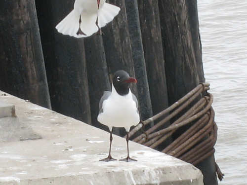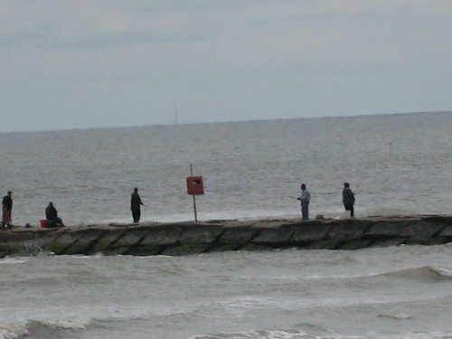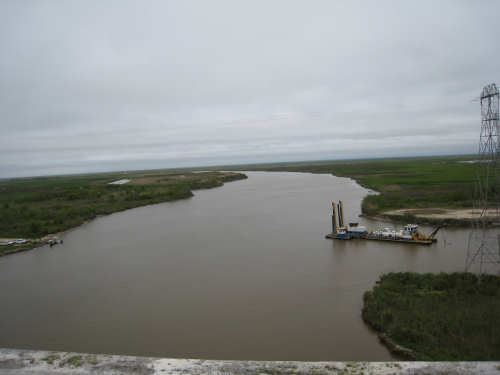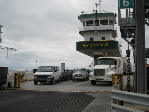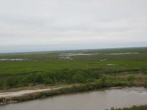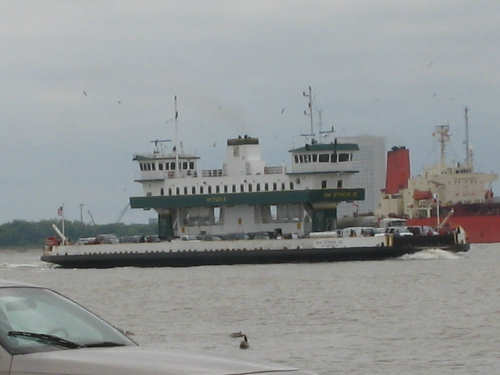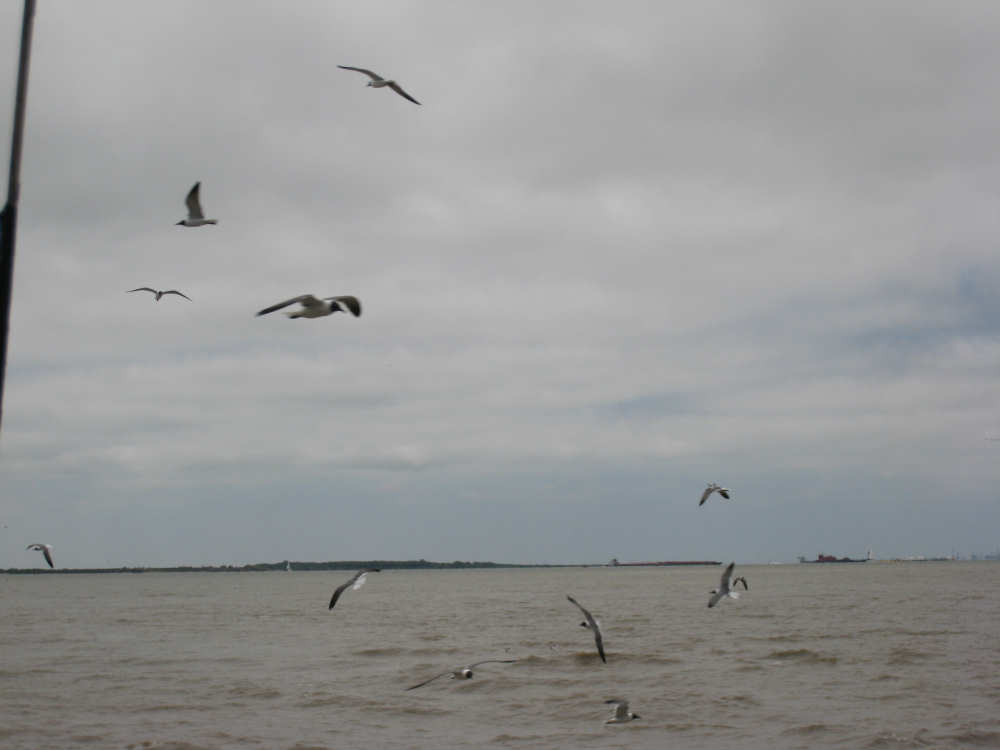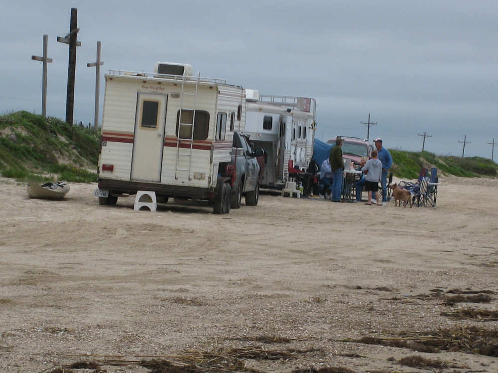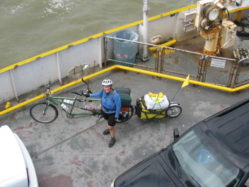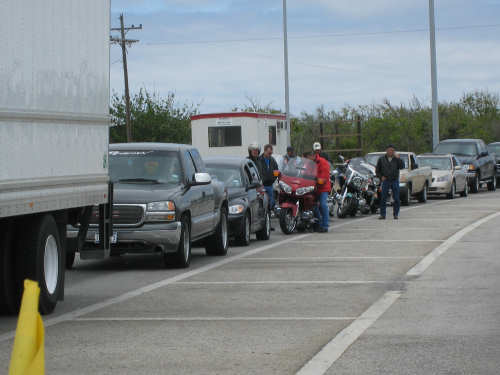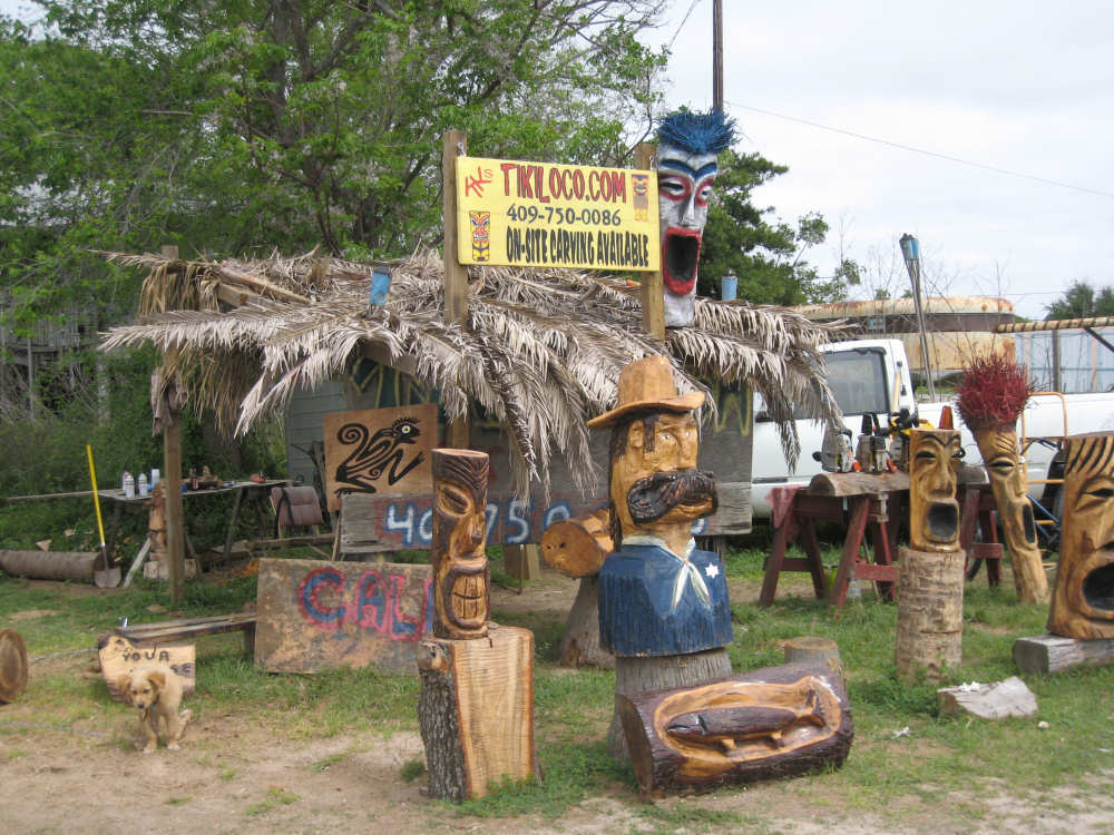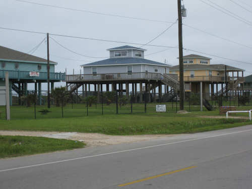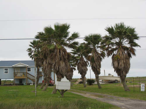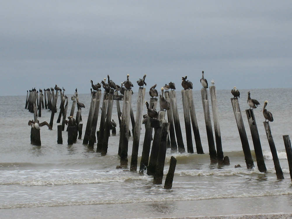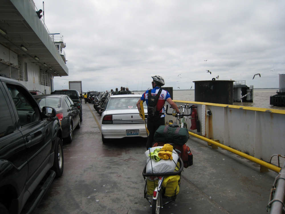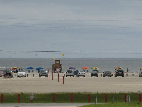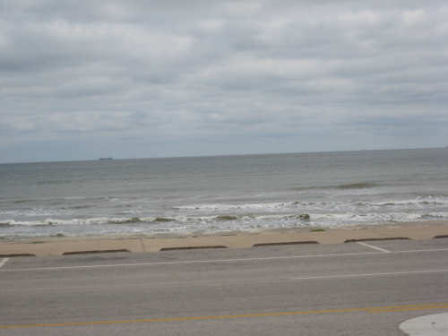 Saturday, April 05, 2008 Today was a much easier and more interesting day. The weather was dry but overcast and chilly when we left at 7:30 this morning and stayed that way until we got to Galveston. The road was smooth and simple for the most part and we even had a tail wind a lot of the day. The scenery was enjoyable - mostly large, grassy fields with some cattle and horses and lots of wildflowers. There were large swaths of pink primroses, red Indian Paintbrushes, purple Lyre Leaf Sages, blue Four o'clocks, white daisies and spider lilies, and various yellow flowers. We also went by lots of honeysuckle, inhaling its heady scent. We went over a bridge to the area called High Island which had an interesting marker giving some of its history. This area is a major migratory bird sanctuary and is visited by many birders each year. We were now on the Bolivar Peninsula, and finally saw the Gulf Coast; we stopped for a minute by the first beach we came to. There were some campers on the beach (not an official campsite, but apparently not an uncommon occurrence). There were also several large pelicans roosting on some wooden pilings in the water. They let us come fairly close so we kept inching up on them, taking pictures as we went. Some of them flew off as we approached, but many stayed, seemingly unconcerned. We continued down Route 87, passing more large fields and wildflowers, and went through a few small communities with houses up on stilts. Clearly, the water often rose a lot higher than it was at the moment. We stopped for lunch at a place in Crystal Beach with an interesting shop across the street. A local artisan had many of his woodcarvings on display, mostly cut out of trunks of palm trees. It was still chilly, overcast and damp-feeling and we were getting antsy to get to the ferry when it finally came into view. There was not a long line when we got there, and we were directed to a spot out of traffic to wait for the ferry to arrive. By the time the boat came, a full boat-load of cars had lined up. We went on last and parked at the back over to one side. The ride was uneventful but interesting; there were various boats in the harbor and in the channel, from sailboats to tankers. There was a group of motorcyclists from Louisiana who were headed to Houston for a big bikers' barbeque picnic. There were swarms of sea gulls that followed the boat; one boy was feeding them by throwing bread crumbs in the air - the gulls were good at catching them! We also saw another black bird, which turned out to be a grackle, that we'd seen a lot both yesterday and today. When we landed in Galveston, the clouds were beginning to break up and the afternoon became quite sunny and warm. We had a very pleasant ride through Galveston with its large stuccoed houses, lots of palm trees and other lush plants, interesting shops, and fancy motels and condos. We rode along the beach for a long time and enjoyed watching the people strolling along the beach and the concrete boardwalk, and the waves rolling up onto the beach. We continued on another 10 miles past the end of town into Jamaica Beach where we were to camp at the Jamaica Beach RV Park, a lovely campground with great facilities - a pool, hot tub, club house, bathrooms, showers, and laundry. We arrived by about 4 pm, set up our tent, had some dinner and worked on our website and tomorrow's route until it was time for bed. Tomorrow we'll be in Houston, at Sarah's house, visiting with her and her husband Steve, and the grandkids, Amanda and Rand. |