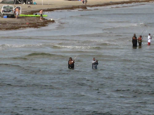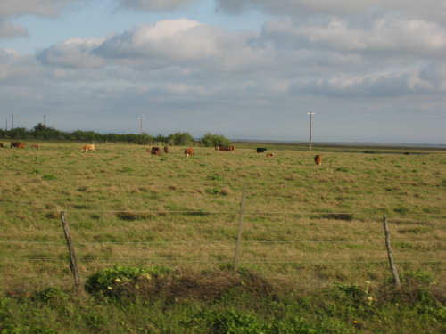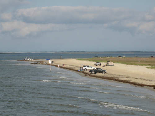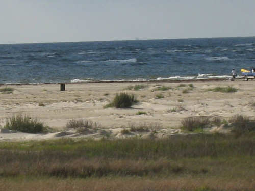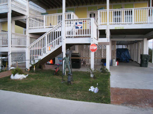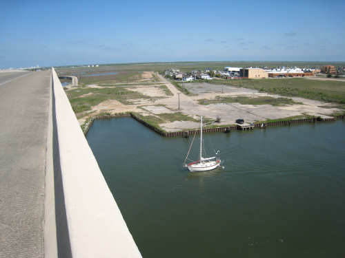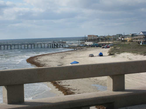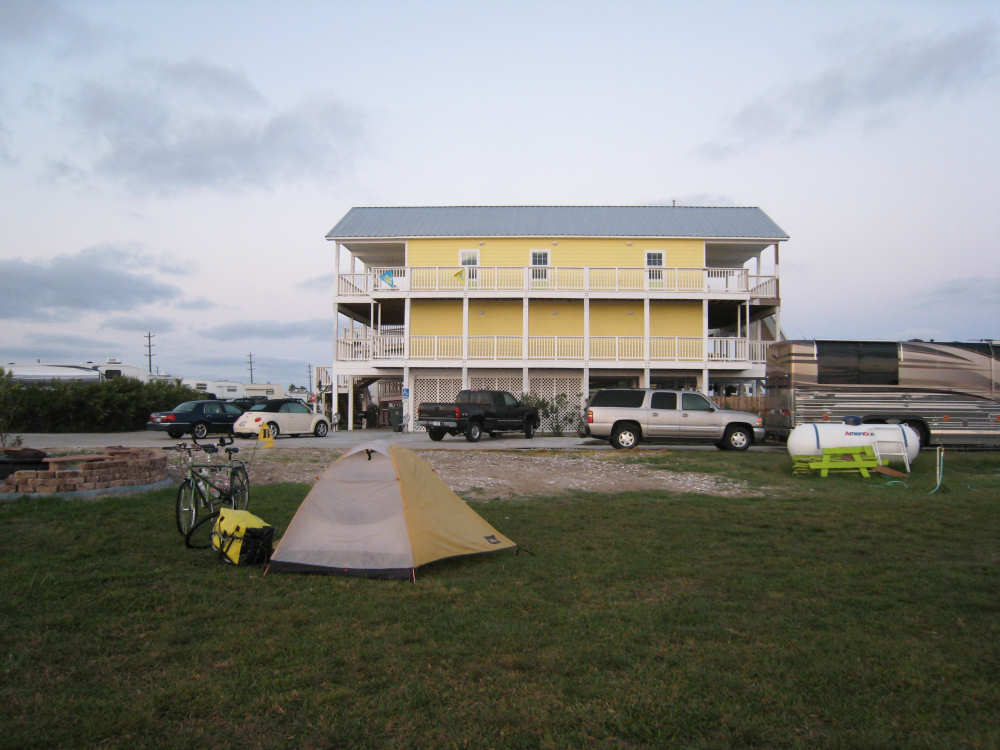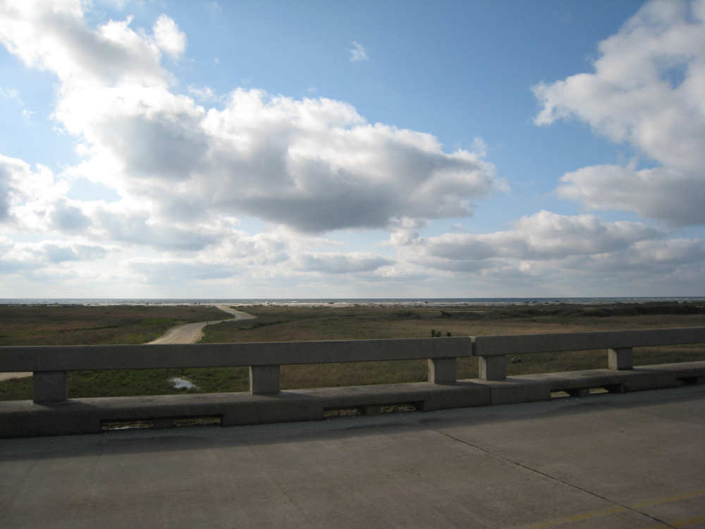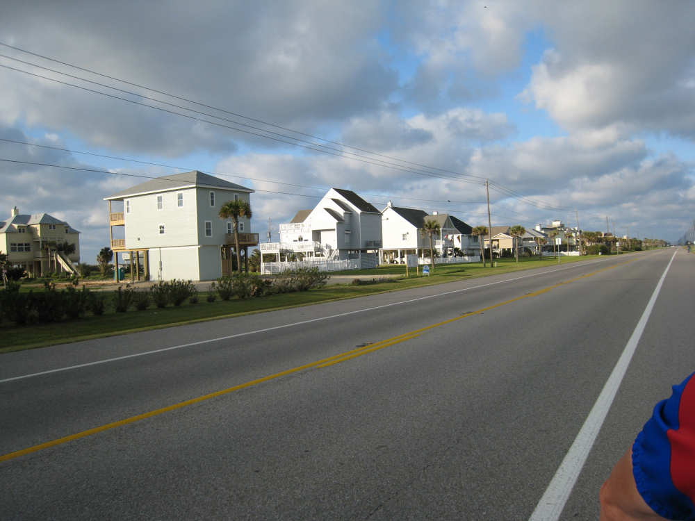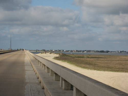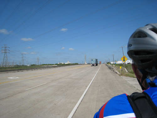 Sunday, April 06, 2008 This morning began refreshingly cool with high, puffy clouds. We packed up the tent and all our stuff and were treated to Belgian waffles, fruit, and other goodies by the cook at the RV park. By 8:15, we set off down the rest of Galveston Island towards the San Luis Pass. The island narrowed as we went and we had lots of views of the West Bay on one side and the Gulf Coast on the other. The houses along the road were grand shore houses and very interesting to look at. There were also some stretches of open land and a few pastures with cattle or horses. It was very pleasant riding along listening to the ocean surf with few cars to worry about. After about 10 miles, we came to the end of the island and went over the mile-and-a-half long San Luis bridge. The bridge was low over the water and we could see several people camping and fishing on the shores on both sides of the bridge. Approaching the bridge, there were large, fancy developments with beautiful landscaping - many flowering hedges and oleander bushes, ponds and fountains. It was very lush and luxurious looking. We were in Brazoria County on the other side of the bridge and went another 13 miles on islands with coast beaches on one side and bay or marshes on the other. There were a few small communities but mostly we rode past surf and scruffy plants. Very scenic. We got to the end of the islands and reached another milestone - this was the southernmost point of our trip! From there, we took a right turn onto Route 332, going over a very high bridge over another Intracoastal Waterway. This road went on for about 20 miles and was mostly lined with industrial buildings and refineries. It was not at all scenic for the most part, although it did have a good shoulder and we had a mild tail wind. From here, we got onto Rt. 288, which we took for the next 40 miles, nearly all the rest of the way to our destination. By this time, the sky was completely cloudless and becoming very warm. We went through a few interesting areas, especially the town of Angleton, the county seat of Brazoria County, which had some interesting buildings, but we were not much in the mood for stopping to sight-see. 288 had a good shoulder most of the time, although one long stretch had an interesting variation on rumble strips - they had these white blobs that looked like giant chiclets spaced evenly across the shoulder that Pat had to try to steer us between. We were glad when that bit was over. The sun was quite scorching, even though the humidity was low so the temperature wasn't unpleasant, but our sunblock didn't seem to be a match for the Texas sun. It was a long day - 72 miles in 6 hours of bike time - and we arrived hot, sweaty and tired at Sarah's house by 4:45. We played with Amanda & Rand and talked with Sarah for a while, barely having the energy to update our website - but we couldn't let all our readers down! Tomorrow we have a much-needed rest day, which will be filled up with a long list of things we need to do. |