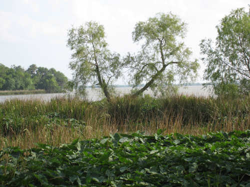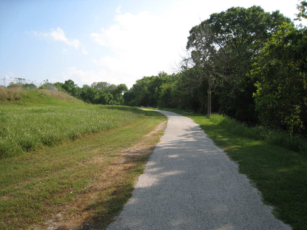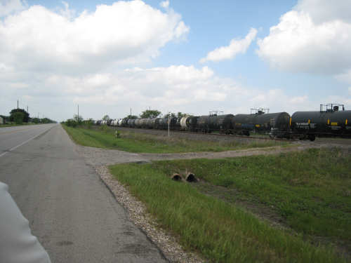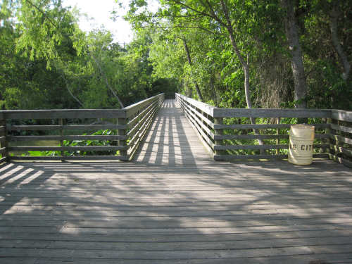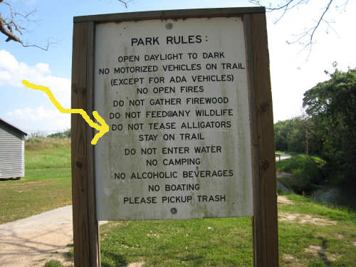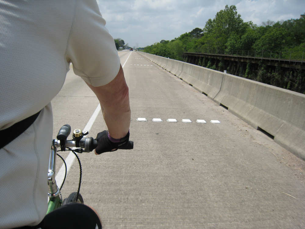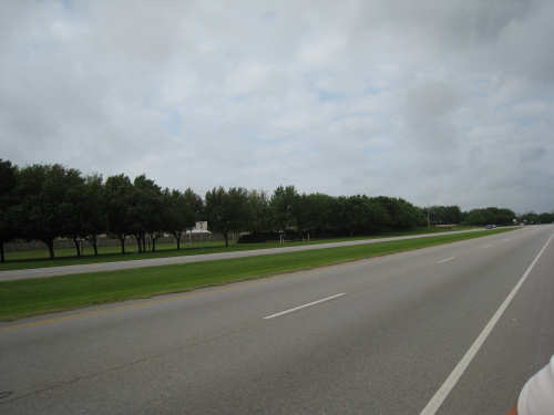 Tuesday, April 08, 2008 This morning started out cloudy and slightly cool, perfect for biking. We were slow to get going, though - it was tough to leave Sarah, Steve, and the kids. Sarah cooked us pancakes for breakfast and took some pictures as we left, which she then emailed to us. They are the first 5 pictures below. We headed out County Road 59 which was a pleasant road most of the way - a little busy at first but quiet later. We then picked up Rt. 6 which was wide and very busy, but had a good shoulder so it wasn't bad. It was lined with shopping center after shopping center - we were sorry we weren't hungry, there were so many places to eat! It was a little hectic though, and we were worried that US 90, the next road we'd be on for 40 miles, would be busy as well. We turned onto US 90 at a huge intersection and found that it, too, was crammed with cars and trucks, but it later calmed down quite a bit. Not much excitement today. The most entertaining thing was the railroad, which we were riding by most of the day. We saw several trains pass us during the day - one was so long it required 4 engines, another was an Amtrak train heading east, one was slowing down to a stop and made us feel like we were moving very fast as we sped by it. The scenery consisted of many large fields of crops for the most part, we saw very few cattle or other farm animals today. Some of the fields were just tilled, some had just sprouted, some had good-sized seedlings already coming along, others were just wild growth, either pasture or lying fallow. Along the train tracks, there were mostly bushes and short trees, the usual wildflowers, including a new, pale yellow flower of which there were large patches in several places, a few streams - mostly dry but a couple very full - and one river, the Brazos. We went past a few towns, mostly at the beginning. Sugar Land was just past Pearland - after about 20 miles, we stopped at a great donut place on the far side of Sugar Land (delicious cinnamon rolls!) and then realized there was no easy way back to the road. We stopped to ask a policeman how to get back and he told us the only safe way was to go east to the next road (about 2 miles back!) and loop back around on it. Needless to say, we took a slightly less safe and less legal way back, hoping the policeman didn't happen to notice. We went through Richmond, the next town, and got worried that we would be out of places to eat lunch after that, but then we came across the town of Rosenberg, and even though it was a little early, we stopped for lunch at a nice diner there. Good thing, because the towns were a lot more sparse after that. US 90 was a very straight road with a mostly good, smooth shoulder, a little boring but other than that, a good ride. The clouds broke up a bit in the afternoon and the sun was blazing hot again. We were always thankful for all the cloud cover we got. The breeze helped some too; it was southerly, so it came at us from the side and didn't hinder us at all, and it did help cool us down some. The trucks passing by were more of a problem; they sometimes went by so fast, they nearly blew us over! But they always gave us plenty of room as they went by. We got to Eagle Lake about 4 pm, after going 64 miles in 5 hours and 40 minutes of bike time. We showered and then walked over to see the lake. There was a little park right next to our motel with a path that led to the lake. There were a few people fishing in the stream going into the lake, but they said they weren't having much luck that day. One of them confirmed that the note on the park sign about the alligators was for real - he had seen alligators, 9-foot-long, at the lake himself. We walked along a boardwalk over some very marshy areas and came to an observation deck where we had a glimpse of the lake, but that was as far as we could go. We saw some birds in the water - too far away to see very clearly, but it looked like they might be ibis. Then we had dinner and went back to update the website. |