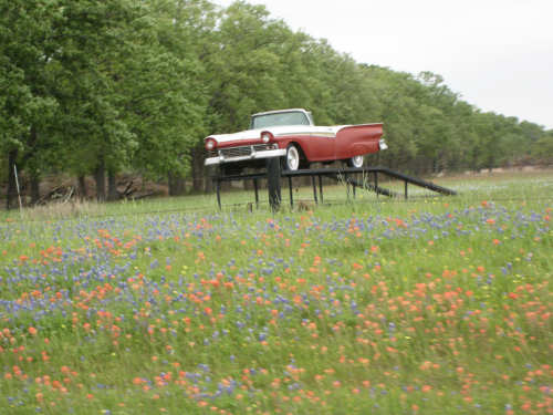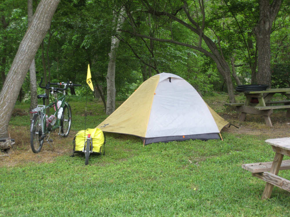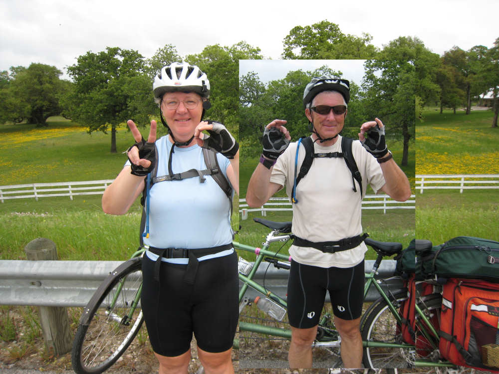 Wednesday, April 09, 2008 We hit 2000 miles today! The momentous occasion happened on the road with no one around so we took each other's picture separately and cut-and-pasted them together. Practically seamless. Pat thought we ought to do one straight, though, so we had someone take our picture where we stopped for lunch, a few miles later. I still like ours better. Today was a short day and pretty easy. We went 45 miles in 10 minutes short of 4 hours. We had left at 7:30 after a good breakfast at a restaurant right next to our motel, and got to our campsite by 4:30. Pat had to fix a flat tire today, though. Our front tire stepped on a short nail that was embedded in a little square of metal; the only reason we noticed was that the metal made a funny noise as the tire rotated with the nail stuck in it. Luckily, the tire was ok, so we only had to change the inner tube. The weather wasn't bad - it was cloudy all day with just a little sprinkle right before we got to the campsite. It was dry enough when we set up our tent at least. The temperature was milder than yesterday although it was more humid. We said good-bye to the flat lands, finally; there weren't many hills and they were very gentle, but I expect we get more and steeper as we go. But we did have a tail wind all day! We started going through the town of Eagle Lake which had some historic buildings, so we took a picture or two. Our first road, Highway 102, was rough and narrow, but almost no traffic. We went by some smaller farms and ranches - saw a couple of Texas Longhorn ranches, one with a great lawn ornament of an old stage coach, the other with a real Longhorn steer (the picture wasn't great, but you should be able to see him). We stopped at a gas station just before turning onto US 90 which we took into Columbus, another town with some interesting buildings. We crossed the Colorado River (this is not the one that runs through the Grand Canyon; Texas has its own version) and shortly therafter got the flat. We got onto State Road 71 after a few more miles and crossed the Colorado again. This time we saw a bunch of cows wading at the river's edge. We also went by a classic cars store with a neat old Thunderbird out on display. We had lunch in the town of Ellinger, the only town we saw along 71. We arrived at our campground/RV Park at 1:30 and took a few pictures here too. The office had a beautiful garden around it and bathrooms and showers inside, as well as a comfortable place to work on our website and a friendly Labrador mix called Lucky. There's a Mexican restaurant nearby we plan to walk to for dinner soon. The other highlight today was all the wildflowers we saw. We finally saw the famous Blue Bonnet, the Texas state flower. There were scads of them along the highway today, along with Indian Paintbrush, Primrose, and several other new wildflowers Sarah will have to help me name. I've put all the wildflower pictures at the end. Enjoy! |