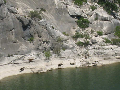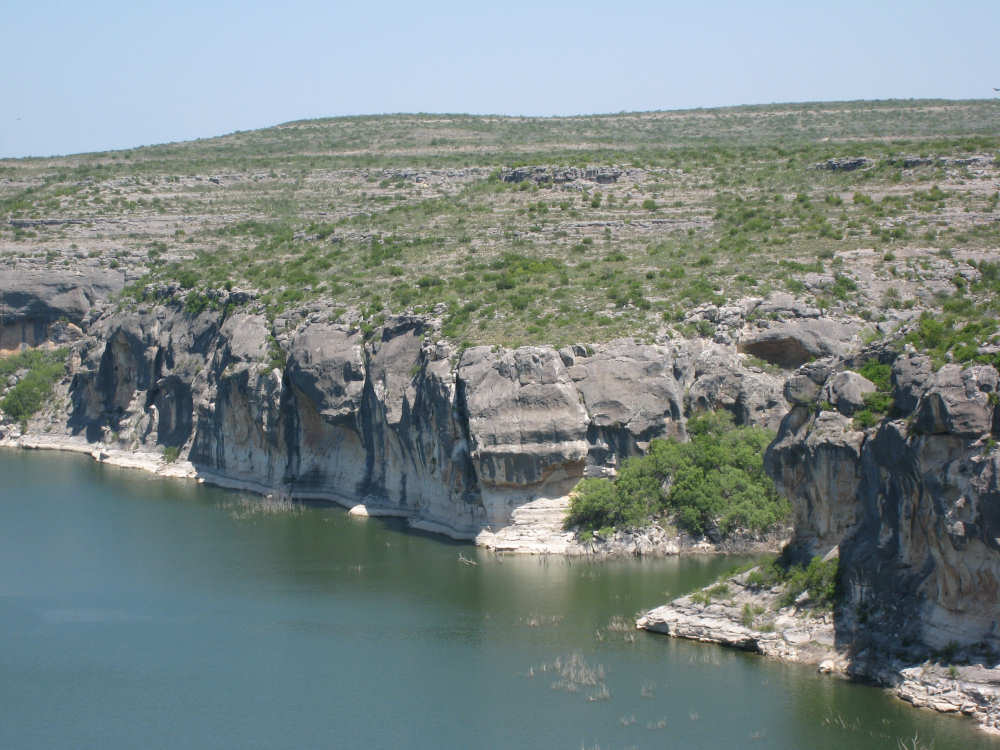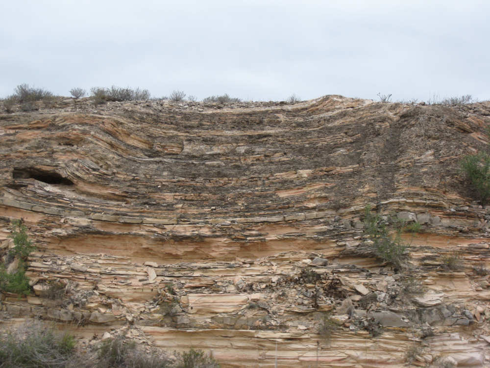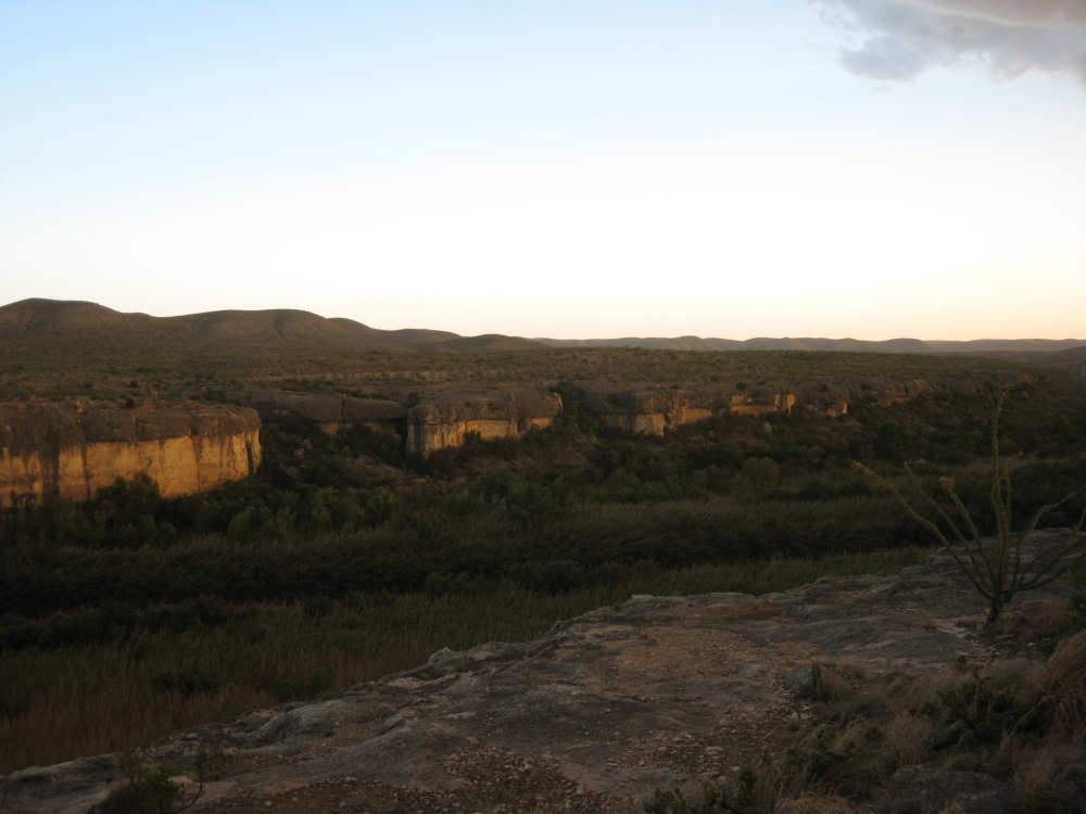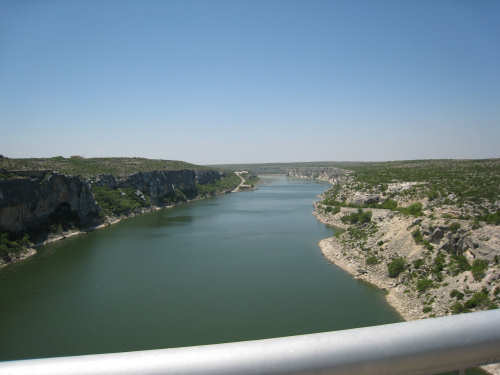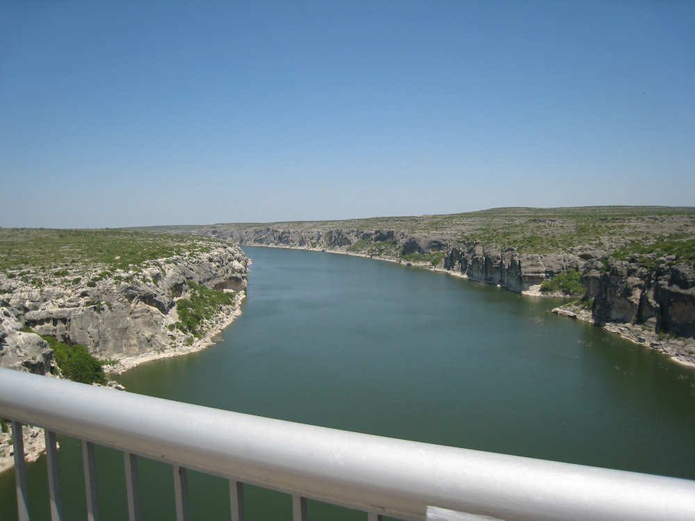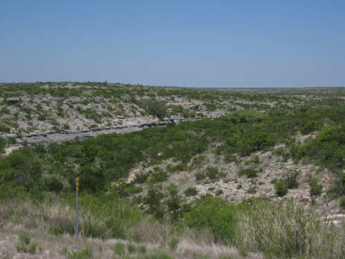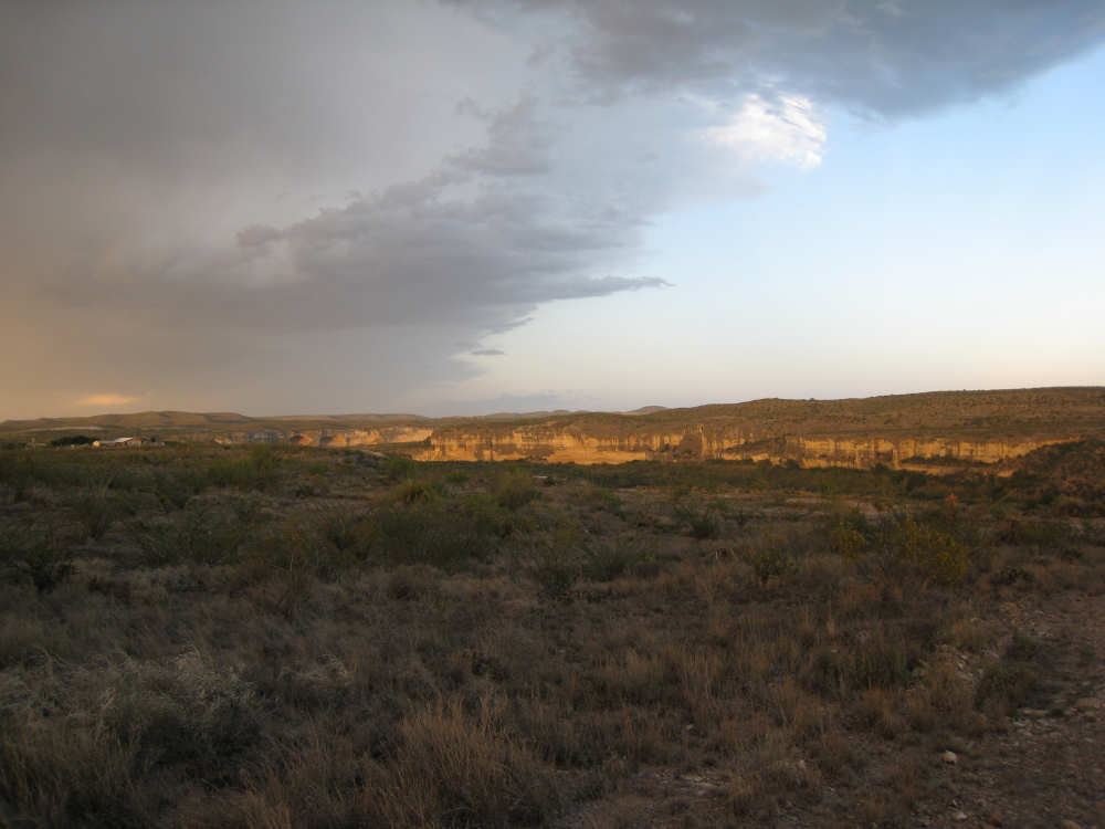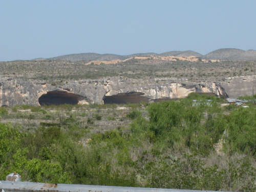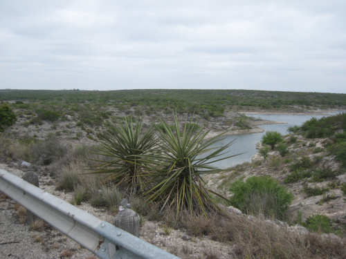 Thursday, April 17, 2008 As expected, our cell phones don't work here in Langtry. They have a wireless internet connection which we're using but it's pretty slow. We thought we'd give you a synopsis of the day first to get something up there quick and we'll move pictures up later. The weather today was almost identical to yesterday's - cloudy and windy in the morning, clear sky and hot in the afternoon - but this time we had a good tail wind all day. The route was mostly uphill today and was on Hwy. 90 all day until our turn-off at Langtry. We started at 8:30 this morning, after going a couple of miles to a breakfast place and to pick up some supplies at the local Wal-Mart - mostly food for the next 2 days. We rode through only one town today and all it had was microwavable cheeseburgers for lunch. Langtry, our destination, was equally restaurant-challenged. It had a dairy bar where we got ice cream and cold drinks. Needless to say, there's no breakfast to be had here, and tomorrow we'll also be going through only one town which has, at most, a gas station mini-mart. So, we had to pack some dinner for tonight, and breakfast & lunch fare for tomorrow. Luckily, tomorrow night we'll be in a large enough town to have both cell phone service and food. So much for logistics. today's ride was through beautiful Texas semi-desert countryside. There were very few trees. Most of what we saw were shrubs and desert plants, flowering cactus, yucca plants that weren't quite in bloom yet (or maybe already past blooming), some other flowering shrubs (same as yesterday's) and a few very tiny flowering plants. There were some ranches, many with attractive gates but no visible house or other buildings. Most of the time, the landscape stretched to the horizon, either flat with scattered shrubs and plants, or rolling hills dotted with the same plants. The road often cut through the tops of hills and the exposed cliffs were fascinating. There were various layers to many of them, some layers very hard stone, others powdery or brittle. The colors were mostly sandy white, but often had mustard yellow or reddish-orange sections. Sometimes the layers were rippled, too, rather than just straight across. It was really beautiful. We had a few highlights today as well. Early in the day, we crossed the Amistad Reservoir - a huge body of water created by the Amistad Dam across the Rio Grande. The reservoir went on for miles, with little fingers of water running off in all directions. There were lots of recreational offerings in the area. We were fairly close to the Rio Grande on a few occasions but didn't actually see it. We may walk down to it tonight - it's about a quarter-mile from our campsite. Another stupendous highlight was crossing the Pecos River. We were way over the river as it was down deep in a canyon. The canyon walls were impressive - a very high, solid rock face. The river was an odd green color. It was all so striking that we actually stopped at the bottom of a long downhill, losing all that momentum we were hoping to use on the uphill ahead, to take pictures of it. It took enormous willpower, but we felt we had to do it. We went through an Immigration Check Point this morning as well. Almost like a toll booth, there was a building at a stop sign right in the middle of the road (there were warning signs ahead of the stop alerting everyone of it). We were only asked if we were US citizens and then waved on. There are Border Patrols trucks everywhere. We saw one of the trucks dragging some truck tires along a dirt frontage road next to Hwy. 90, on two separate occasions. At our lunch stop in Comstock, a Border Patrol man came in for a snack and we took the opportunity to ask him what that was for. As we suspected, it was to clear the road of tracks so that illegal aliens' footprints would show up better. Our destination, Langtry, is the site of the Judge Roy Bean museum. Roy Bean, apparently was a colorful character from the Wild West days - he was the local sheriff and dispensed law according to his own principles. The saloon that served as his court house and billiard parlor is still standing and we took some pictures there. Late breaking news: as we went out of our tent to see if we could get a look at the Rio Grande, we noticed some enormous clouds had appeared out of nowhere. We hurried off to see the river and managed to get a few pictures, when the rain started. We really didn't see the river, just the canyon where the river is, because the river is very low here, due to the various dams along the way. The canyon floor was full of a plant called River Cane which you may be able to see in the picture below. It's very dense, apparently. Anyway, we had brought along our umbrella just in case the rain that seemed to be hitting north of us changed direction and came our way, and it did. We scurried back, noting that there were little bits of hail in the rain. The rain didn't last long, but we were ready for bed, so we turned in. What came next was an even bigger surprise - the winds that had moved the clouds our way got stronger and stronger. Our tent really took a pounding but it held up like a trooper. Unfortunately, it was not a very restful night. It wasn't until about 1 am that the winds finally died down and we managed to get to sleep. Certainly our worst night out of the trip so far. |