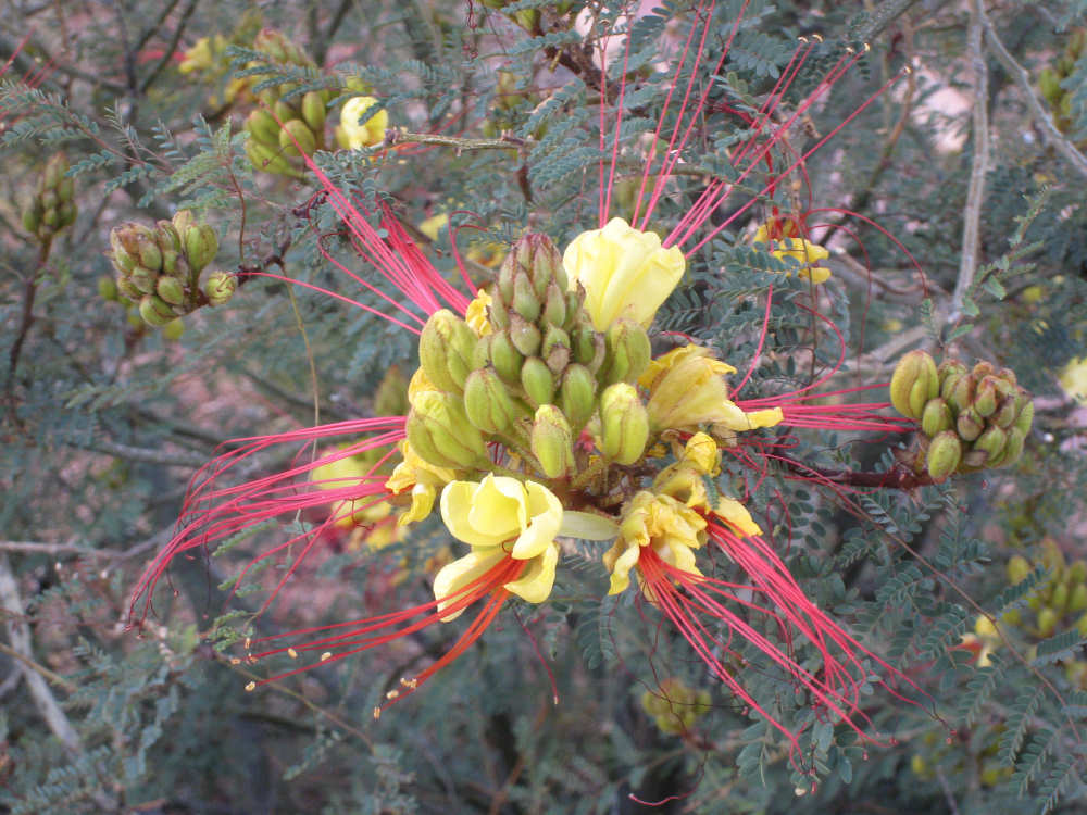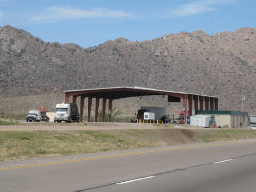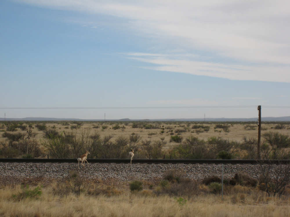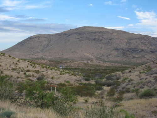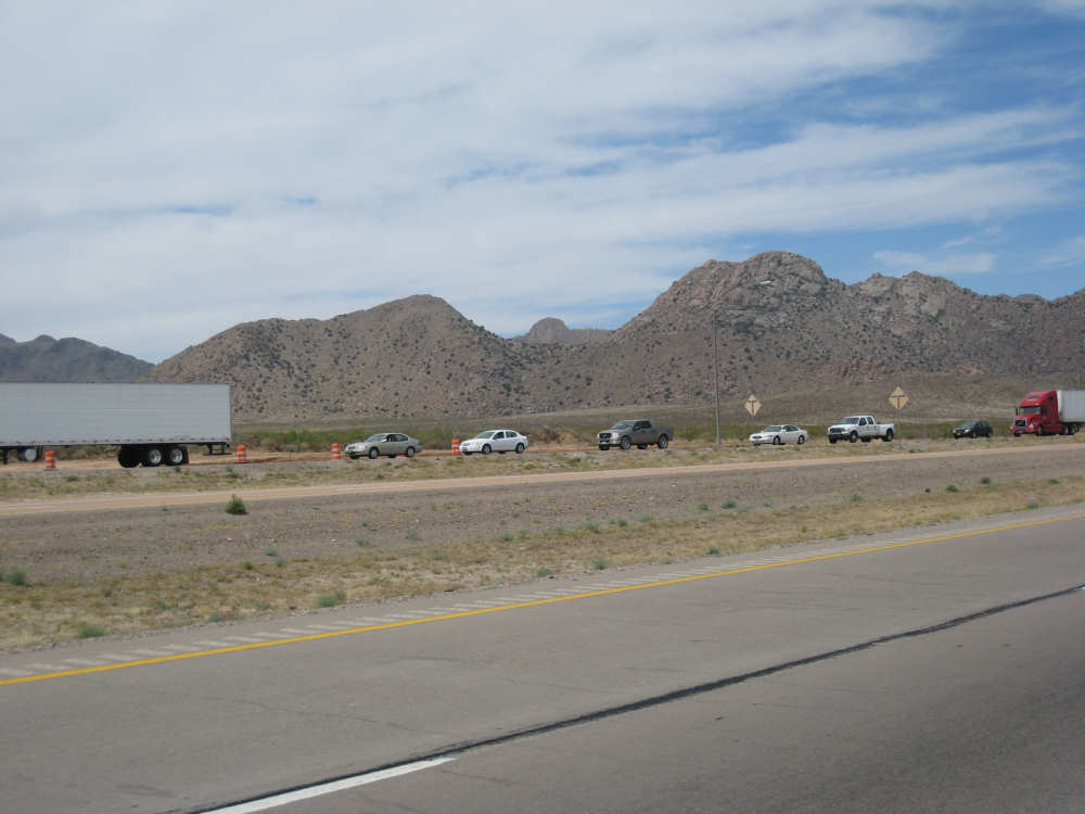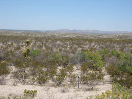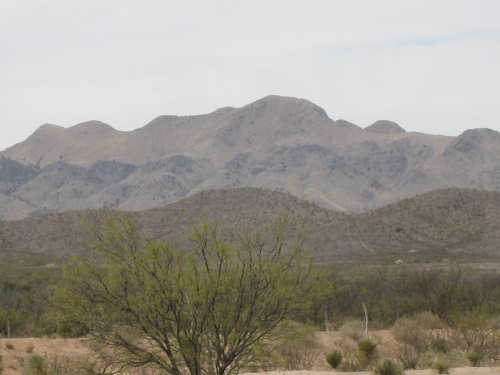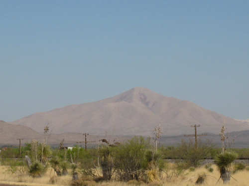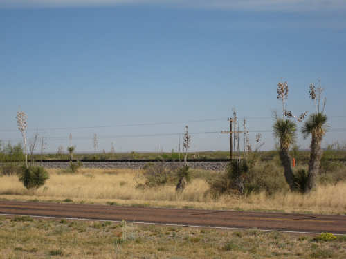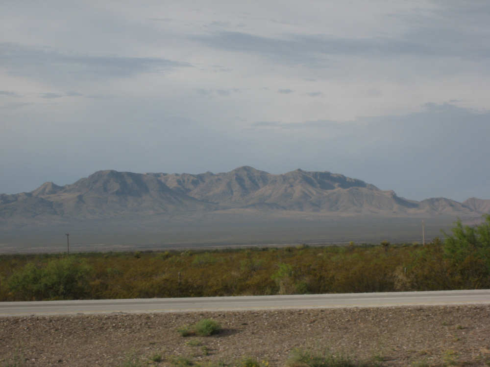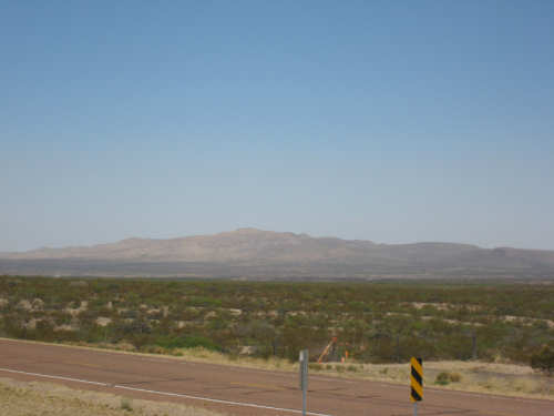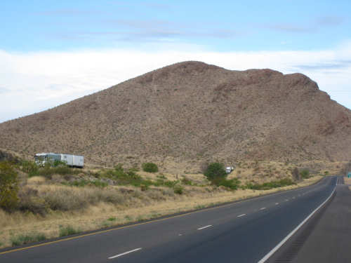 Wednesday, April 23, 2008 Today was an easy day. We started out, after breakfast at a nearby truck stop, at 7:40 and stayed on I-10 all day. We arrived at Fort Hancock at 3 pm, which was actually 2 pm since the time changed soon after we started out. We went 67 miles in 5 hours and 40 minutes of bike time, a nice 12 mph average. It was, of course, mostly downhill or level and I-10 had a nice shoulder surface all the way. We had a calm wind in the morning and our usual head wind after noon, often very gusty, but overall, it was very manageable. Not many highlights today - one of the drawbacks of being on a highway, I guess. We had to dodge some road work signs and cones, but not much actual work was being done on the road and the 2 workers we saw were not put out by our being in their work area. We stopped at a 'scenic overlook' but found out you had to climb a mountain to get the overlook, which we didn't feel like doing. But we did climb up as far as they had steps and got a shot of the mountains across the highway. We saw a phenomenal flowering bush there as well and got some pictures of that. Later in the day, we passed a picnic area that had little tipi-style covers over the picnic tables - it looked very nice. We are close to the Mexican border again (it was further south the last few days), and we saw another immigration checkpoint on the east-bound side of the highway. The traffic was shunted onto the frontage road on that side and went through one by one; it was quite backed up. The traffic wasn't bad today, but we could tell it was getting heavier as we get closer to El Paso. We're only about 60 miles from it now and will get there tomorrow. We saw 2 more rabbits today and saw 2 animals that looked like pronghorn deer to me. They were right by the side of the road but ran off when they saw us approach. I got a pretty good shot of them as they got up to the railroad tracks. Yes, we're next to a railroad track again today and saw a number of freight trains go by. Other than that, we mostly saw mountains, lots of mountains, close up and far away. We had a stopover town, Sierra Blanca, at about midpoint today, where we had a very nice lunch. Near the town is the mountain called Sierra Blanca, which is whitish-looking from some angles, darker from others. It's almost 6,900 feet high. We started today at about 4,600 feet in Van Horn and dropped very gradually to about 3,600. A little past Sierra Blanca on the south side of I-10 was an impressive range called the Quitman Mountains. After that, we had a nice descent to a flatter plain with mountains around the edges. It had several arroyos, which I think is Spanish for 'mostly dry river that fills up very, very fast when it rains'. Or something like that. The soil seemed to be a sandy/rocky mix, but it was astonishing how many bushes and flowers grew in it. We're still trying to decide whether to make another easy day of it tomorrow and stay on I-10 or try the more 'scenic' (you know what that means by now) Hwy. 20. A nice gentleman we were talking with this morning at breakfast, whose name we stupidly forgot to ask (if you're reading this, Mr. Tru-Value, please email us your name), didn't seem to think 20 was a great idea, but I-10 will be awfully busy in El Paso. Maybe at dinner we'll ask around some more. Or we'll just try 20 and pop back over to I-10 if it's too awful. It does run along the Rio Grande, which I think would be interesting to see some more. |