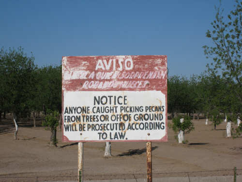 Thursday, April 24, 2008 We decided to go with Hwy. 20 and 76, the Adventure Cycling roads, rather tha I-10 today, and it really wasn't at all bad. They were smooth and had very little traffic (until we got closer to El Paso) and were definitely more interesting than I-10 had been. We went past lots of small farms, many of which had irrigation ditches along the road and various kinds of locks and sluices to move the water around. There was also a large reservoir which apparently feeds the irrigation ditches; how it gets filled, we have no idea. We got an early morning view of the lights from the Mexican towns along the border (first picture below), and were able to see some houses on the Mexican side, nestled under the mountains. We never did see the Rio Grande but apparently there's not much to see in most places. Tomorrow, we'll actually cross the Rio Grande a couple of times, when it's between Texas and New Mexico. We saw acres and acres and acres of pecan trees, some of them in standing water with ibis and egrets walking around in the water. Haven't seen many shore birds since we left the Gulf area, weeks ago. We also passed through a few small towns, which is always interesting. The area between Fort Hancock and El Paso seemed fairly prosperous, not wealthy certainly but doing quite well. A historical marker described the economic ups and downs of one of the towns - Tornillo. It did quite well growing cotton, and judging from the tufts of cotton we saw along the road for many miles, they still grow cotton here, but the only crops we saw growing and/or advertised for sale were pecans, hay and alfalfa. Tornillo seemed to be the most interesting town along this stretch, but we ate a mid-morning snack in the town of Fabens and met another couple of bikers, Bill and Fred, from Washington State. They came in for some coffee and we chatted about the routes and different variations we'd made. They were going eastward, of course, and told us of a way around the huge mountain we'll be climbing this week, but Pat seems to have his heart set on seeing the Emory Pass. So I guess I'm doomed. Our last town before El Paso, Socorro, was much larger than we expected. It had a number of big shopping malls, which looked much like shopping malls everywhere in the States, except that these had a distinctly Spanish/Mexican flavor. Traffic got heavier starting in Socorro and the edge of town coincided with the start of El Paso. It was another 15 miles, though, before we got to the center of El Paso, our night's destination. El Paso was interesting in that it had a major point of entry with Mexico. There was a big bridge connecting the two countries; traffic coming into the US was backed up waiting to go through Immigration. There was a walking lane over the bridge and we saw several people using it. The mountain we'd been seeing in the distance a lot of the day turned out to be right in El Paso, splitting the town in two, with cell phone towers along the top of it. We rode through several suburban subdivisions getting into town, and then got into a lively town center, with lots of people walking around. The town seems to close up after 5, though; we had a hard time finding a restaurant open when we went out after 6 for dinner, and there were substantially fewer people around. Another interesting part of El Paso we rode by was the Chamizal National Memorial. Chamizal was an area that was under contention between the two countries for many years, as a result of the Rio Grande changing course and carving out a large chunk of land that was in Mexico but ended up on the US side of the river. The National Park Service established a park on the land that ended up American after the final negotiations. Tomorrow, we'll follow the Rio Grande up into New Mexico, and finally leave Texas behind. |