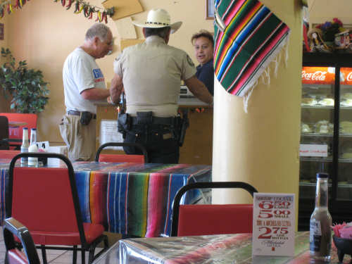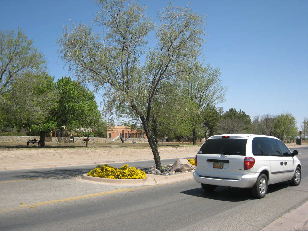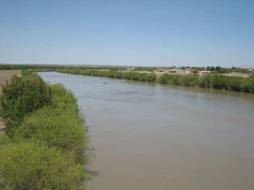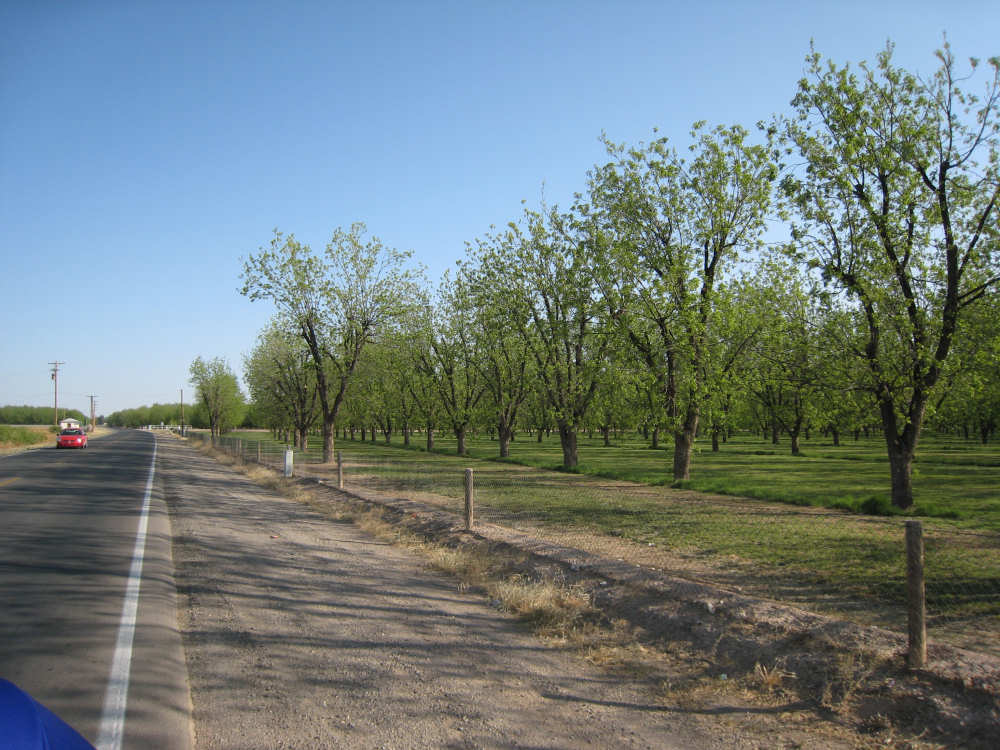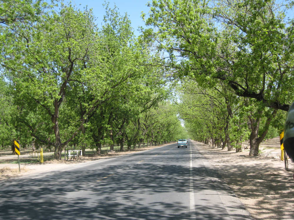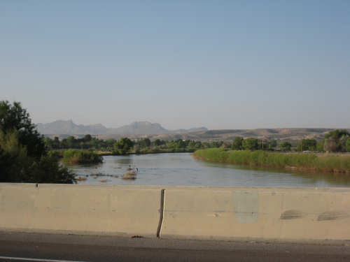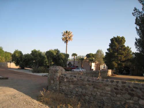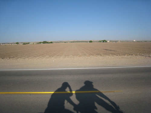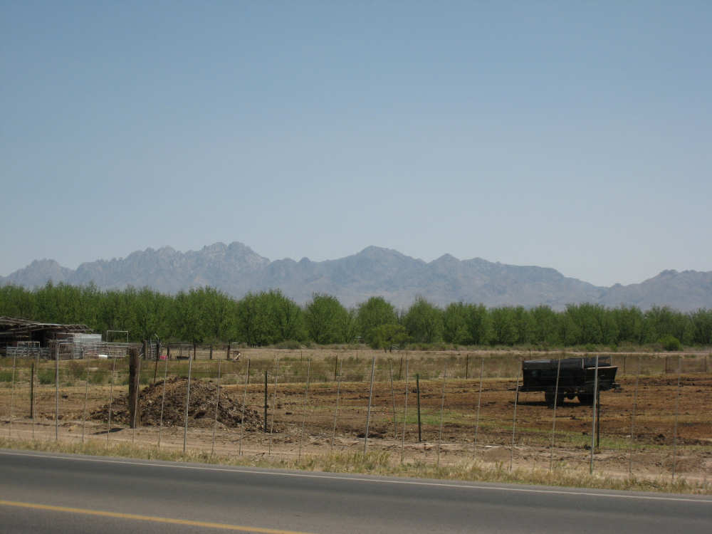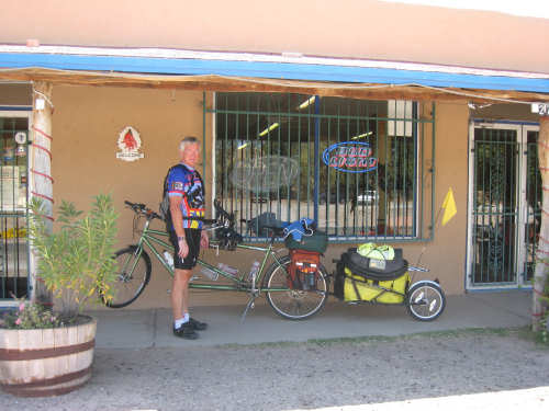 Friday, April 25, 2008 We slipped into New Mexico today. We didn't get a Welcome to New Mexico sign, unfortunately; we saw a New Mexico State Line sign but we didn't go into New Mexico at that point. We skirted the edge of the state for a while and turned into it further north, but there was no clear indication of exactly when that happened. We hate when that happens - takes all the excitement out of entering a new state. But in any case, we're here in our 13th state, and so far it's been beautiful. We started early this morning and had breakfast at a McDonald's a mile up the road since nothing else was open at that time. We headed out from breakfast at 6:40, proceeding north through El Paso. It quickly became apparent that the north end was the ritzier side of town - large homes (some nestled on the mountain side), walled-in subdivisions, high-end shopping centers. Our road was called Country Club Drive for one stretch, then it veered to the right following the New Mexico border and the grand houses slowly changed to more modest homes and finally farm fields. Many of the modest homes were lovely as well, though, most of them having a Southwest look of stuccoed walls and protruding beams. As we continued on into New Mexico, the Southwestern look intensified; several houses had lush gardens in front, an unusual number had several varieties of roses as well as other more native flowering plants. The farm fields were usually large, but not nearly on the scale of the Texas farms. There were still many pecan tree groves but they went on for acres instead of miles. We saw another group of glossy ibis in one of the more heavily flooded groves of pecan trees; a drier grove had flocks of doves pecking around in it. Another major crop seemed to be onions; we saw several large fields of them at various stages of growth. Other than that, all we saw growing was hay and alfalfa, with a couple of solitary cotton plants, seemingly left over from some earlier planting. We crossed over the Rio Grande twice - it meanders along the border between Texas and New Mexico. We also passed by several irrigation ditches. They all seem to be bounded by much wider berms here than they were in Texas. The berms were tamped down on top and are obviously driven over regularly. We also saw a couple of cases where the pumps by the ditches were spewing water into them - the water looked refreshingly clear and cold. We passed through a few small towns today - Chamberino, La Mesa, San Miguel, and La Mesilla, which was right outside of Las Cruces. Chamberino and La Mesa didn't have much to offer, except for the ice cream we got at a grocery store in La Mesa. San Miguel was very pretty and had a historic Catholic Church in it. La Mesilla was even prettier, with several pretty stuccoed buildings in it, a median strip through town that had lovely plants and stones in it, and a lively air to it. We had lunch in a restaurant called Los Mariachis that had great Mexican food and beautiful Mexican serapes, musical instruments, and cute ornaments decorating it inside. The waitress also gave us a tip of a cheap but very nice motel nearby where we ended up spending the night. The real excitement today was that we got another flat, but in the trailer tire this time - first time we've ever had to change that tire. It got a big nail stuck in it which made a very discernible hole, so we decided to patch it instead of replacing it. When we pumped the tire back up, it was still leaking though. Grumbling about the patch not doing its job, we took the tube out again and noticed that the nail had gone clear through the tube and punctured the other side! So we stuck a patch on that hole, too, and this time the tire pumped up just fine. We had a short, easy day today - 45.4 miles in about 4.5 hours of bike time. It was a very slow ascent most of the day and our usual gusty head wind ( although we noticed the pecan trees did a great job of blocking the wind, which we really appreciated). We arrived at our motel at 2:20, shortly after our scrumptious lunch in La Mesilla. Tomorrow will be another short day, with more climb, though. We're trying to take it a little easy, working up to our big climb up to Emory Pass in a couple more days. |