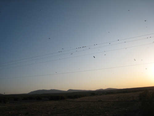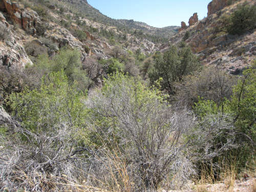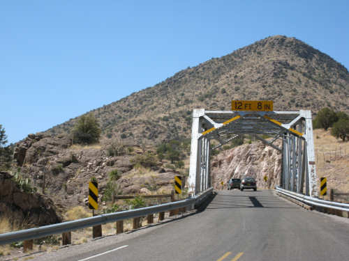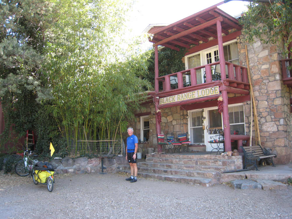 Sunday, April 27, 2008 I am madly in love with New Mexico. I hope today's pictures do it justice - it is incredibly beautiful. We left Hatch this morning at 6:40 after a so-so breakfast at a food mart (it's Sunday and nothing else opened until 8 am). We were dismayed by the wind which was blowing fiercely from the direction we would be heading. Maybe it'll die down when the sun comes up, we thought, but no, it was a good, stiff head wind all morning. It was chilly, too - 48 degrees by the first thermometer we saw, but the wind made it feel colder. We had 25 miles of relatively flat ground to cover before we hit the hills. We thought it would be the easy part of the day, but it turned out to be the hardest. We were amazed at all the birds that were out this morning, despite the wind. We saw several large flocks of them, and heard several more chattering in the trees and bushes we passed. It was one of the nicer things about the morning. We went through a few small towns, about 5-10 miles apart - Salem, Garfield, Derry, and Arrey. They were all quite small and had nothing open and not much to see, except for Arrey. As we went through Arrey, we noticed one building with a lot of cars in front which turned out to be a cafe. We went inside to warm up and have a little snack - it was about 10 am and the place was packed! We just had coffee (me), orange juice (Pat) and a couple of sweet rolls, but it was just what we needed to keep going after 17 discouraging miles. A number of folks in the restaurant sympathized with our having to deal with the gale that morning. After 25 miles, we turned west onto Hwy. 152 and the going was a bit easier. We had a side or tail wind for a while, and the wind eventually died down to almost nothing. We certainly couldn't have coped with the hills we had to climb today if we had to deal with that wind in our face all day. We did see several interesting things along the way to our turn onto 152. First of all, we saw where all the chile peppers Hatch was selling came from. We passed several chile farms, none of them had any visible plants in the ground, but it must have been early in the season. Many fields were neatly furrowed and probably planted. We also saw a field with hundreds of strange little igloos. It turned out that they were little calf sheds, many of them with calves standing outside eating from buckets. Just before our turn, we came to the Caballo Lake State Park, with a huge reservoir and just crammed with RV parks, boat storage units, and vacation homes. Our first sight of the reservoir was at the end of a very dry Percha Creek, which we would see later in the day. Our next stretch, on Rt. 152 between Caballo Lake and Hillsboro, was less hilly than we expected, with a few notable exceptions. The landscape was mostly dry scrub brush, similar to what we'd seen in Texas, with some rounded hills, and steeper hills on the horizon. We made better progress now that the wind wasn't blowing straight at us. It was very pretty and was a nice, peaceful ride. We saw our first jack-rabbit, hopping off in the brush; they're supposed to be plentiful in these parts. As we approached Hillsboro, we had a long climb that was fairly steep and curvy - very pretty - and then a nice descent into town. Hillsboro was a very interesting town with some very old houses and some very pretty houses. There were a number of little shops and cafes in the center and we had a delicious lunch at a place called the Barbershop Cafe (maybe the building used to be a barbershop?). They also sold many beautiful artifacts from local artists and craftspeople. We headed out of Hillsboro about 2:30, happily stuffed, with just 9 miles to go to our final destination in Kingston. This is when the scenery went from beautiful to absolutely gorgeous. It was quite hilly and the road wound up, down, and around stunning canyons, valleys, and gorges. The views were spectacular. We passed the Percha Creek again, this time a nice little stream, soon after Hillsboro at the bottom of a canyon. It turned up several more times as it wound around the hills. Every turn we made opened up another gorgeous scene. The climb was very slow but not so steep as to be exhausting., and it gave all the more time to enjoy all the awesome sights around us. It was definitely heaven on earth. We got to our turn off of 152 and went down a tiny road lined with rustic houses. We soon came to the Black Range Lodge (named after the mountain range it was in), a lovely old lodge from the 1800's when there was a gold rush in the area. The owners of the lodge, Kathryn and Peter, are a wonderful couple who made us feel right at home. They were hosting a couple of singer/songwriters who had just put on a concert in Hillsboro (they had seen us on the road earlier), and had a few other interesting guests in the lodge as well, including a couple of other bike riders, a father and son who had biked down the California coast from Vancouver and over from San Diego. We finished the day at 51.5 miles in almost 6-1/2 hours of bike time - our slowest average to date, but one of our most enjoyable. |