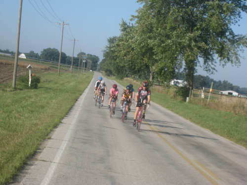 Sunday, August 31, 2008 Back on the road again! David took some pictures of us, on our rest day and as we were taking off in the morning. He told us there was a 'little hill' as we left their driveway and he slipped ahead of us to get a picture of us going up it. You can tell Pat was working hard whereas I was just enjoying the ride, as usual. Poor Pat. It was a lot less hilly after that, but we did have a series of dips and rises. We also had about 3 miles of gravel road at one point and just at the end of the day we had a few hills. Other than that, it was fairly flat and reasonably well paved. The day started out quite chilly (fall is coming!) but it warmed up quickly and got into the high 80's. It was fairly humid, too, probably because of Hurricane Gustav blowing warm Gulf Coast air up this way. The wind was mostly calm, with a stronger headwind later in the afternoon. We left David & Janet's very reluctantly at 7:30 this morning, after another huge meal, and arrived at our motel in Peru, IN at 3:15, having gone almost 59-1/2 miles in 5 hours and 50 minutes of bike time. We were mostly on county roads all day, with a short stretch on a newly-paved divided highway, US 31. Janet had told us this was the north-south highway up through the center of Indiana. We went through a few small towns today and one larger one, Delphi, where we ate lunch. The first town was near the Tippecanoe battleground (where William Henry Harrison's battle with the Tippecanoe Indians was fought) and had the unfortunate name of Battle Ground. It was a picturesque little town, though, with historic buildings and quaint houses. We crossed the Tippecanoe River partway between Battle Ground and Delphi. The Wabash River and the Wabash-Erie Canal crossed our road right before we entered Delphi. The canal was once a major transportation conduit between New York and Chicago. We stopped in Delphi for lunch, 25 miles out, even though it was early, since we didn't think we'd find much on the road later and we were right. We went through 3 more small towns - Rockfield, Burrows, and Onward - but didn't see any gas stations or stores. We had topped up our camelbaks in Delphi but were running out by the end of the day. We saw a number of bikes today - it being a warm, sunny Sunday - including a group of cyclists out for a ride. They all greeted us as they passed (easily) and one of them hung back to chat with us about our trip. We also saw one touring bike as we were eating lunch in Delphi, but we had stopped in the Arby's and he went across the street to the McDonald's. Even though we kept an eye out for him, we didn't see him after that. We have one more night in Indiana tomorrow, and then it's on to Ohio. It will be interesting traveling on Labor Day - we're not sure what we'll run into (parades, other festivities?), but we hope there will be some food places open. We may have to crash a picnic or two! |