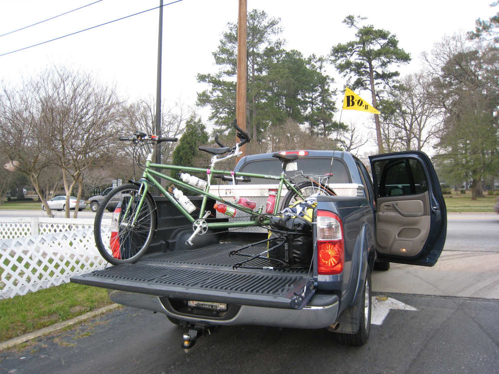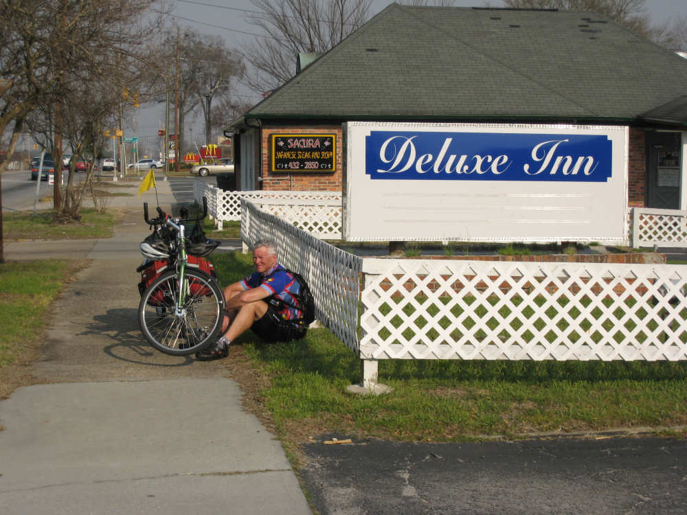 Friday, March 14, 2008 I'll confess right up front - we cheated a little. Our planned route was to end in Camden, SC today and we were to have a short 40-mile ride from there to Columbia the next day. Because we lost a couple of days in South Hill, VA and the friends we were staying with in Columbia had plans for Sunday, we decided to skip the Camden-Columbia leg and got a lift from Camden. So we got to relax and visit with our friends the way we'd hoped to. It looks like the weather will cooperate with this change in schedule, too; a big storm is due in Saturday, the 15th, and it's supposed to be nice again on Sunday when we head back out. We started Day 11 at 7:45 with a thin layer of clouds and temperature in the mid 50s. We hit a 9% hill within 4 miles. It was a lot easier than the one last night, which was encouraging. After that, the road was more level for the rest of NC. We crossed into SC about 12 miles out and the soil almost immediately got sandier. We came into Chesterfield, a quaint little town, in another 5 miles and had a great breakfast at the Olde Towne Restaurant. Everyone noticed our bike and it got to be the topic of conversation during our meal - someone would ask us a question, someone from another table would ask another, and soon everyone was listening and chiming in. We heard from an Asheboro tandem biker that it would be hilly between Chesterfield and McBee, and that was true in spades. We had one long, steep hill after another for the next 20 miles and were really looking forward to getting to McBee. We limped into another great restaurant, The Company Store, in McBee and got into conversation with another roomful of people there. The area around McBee was dominated by a few large areas of grass and many acres of peach orchards. A big farm company owned thousands of acres there. A lot of the road between Chesterfield and McBee was lined with the Carolina Sandhills National Wildlife Refuge, filled with Longleaf Pine trees. The woods were clearly managed forest - the trees were all more uniform in size, lined up neatly, with little brush or other types of trees mixed in. Large tracts had been fairly recently burned - part of the management program. The roads were still 2-lane, no-shoulder, light traffic, and the South Carolina drivers proved to be just as patient and courteous to us as their northern neighbors. There were several churches, as there had been in VA and NC, many with a small graveyard attached. We are clearly in the Bible Belt - there seemed to be a church for every 5 houses or so. After McBee. the hills were much tamer but the head winds kicked in on schedule. Still, we made much better time in the last 30 miles to Camden. We arrived at the hotel where we had planned to stay at 4:50, a little more than 9 hours total, going 66 miles in 6 and 1/2 hours of bike time. Not a great average, but not bad considering all the hills. We were picked up at the hotel and got to Columbia around 6:30, soon afterwards sitting down to a delicious dinner served by our gracious hosts. More about them tomorrow. |
