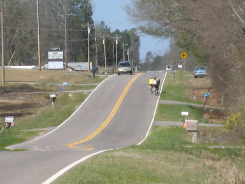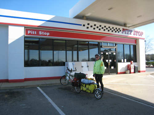 Sunday, March 16, 2008 We started off Day 12 at our usual time of 7:50 after a quick breakfast of cereal, juice, and coffee. It was hard to get going again after such a relaxing stay with Alan and Sylvia. The weather was gorgeous, sunny and a little cool to start. It warmed up soon, though. It wasn't all that hilly but we seemed to have a hard time of it at the beginning - guess we got out of the hang of it with just one day off. Within the first 5 miles we came to the bridge over the huge man-made Lake Murray. The lake has about 600 miles of shoreline and is created from a dam across the Saluda River - the largest earthen dam in the country, according to Alan. Midway across the bridge, we saw 5 circular structures out in the lake near the bridge. While we were wondering what they were and how one got over to them, we saw that there was a little cable car set up for that purpose. Our route had us skirting the edge of the lake for another 20 miles or so, so we'd catch glimpses of it now and then. From the many real estate signs we saw along the way, it was clearly a desirable place to own or rent property. We passed by many nice houses, and saw more red bud trees, pear trees, azalea, and one polonia tree. We often see hawks floating around overhead (sometimes wonder if we look tempting to them!); it's fun to watch them work the breezes. As we moved away from the lake, we got back to the scraggly pine woods we've seen since southern Virginia. The soil got less sandy and redder again, and was swampy in places. We saw some trees dripping with spanish moss. As we were stopped to take pictures and put on sunblock, we were amazed to see 6 bicyclists coming up on our side of the road. They called out to see if we were in need of anything, but we said we were fine and they proceeded to chug up the hill just ahead of them. We actually caught up with them later as they were pulling out of a gas station and heading around a traffic circle on their way back home, but they were a little too far ahead for us to get their attention. They were the first bikers we'd seen since Mt. Vernon, VA, so it was a shame we didn't get a chance to talk. We arrived in Saluda, SC around 2:10 and stopped at a cafe we saw just as we pulled into the center of town. We had a delicious buffet lunch and then rode around the corner and saw our hotel a little way down the street. We were checked in by 3:10. We went a mere 44.3 miles today, in 4 hours and 20 minutes bike time. Tomorrow, we have a longer day of about 65 miles which will take us into Georgia - state #8. We've neglected to mention a milestone we hit in the past week. On March 12th (Day 9), we went past the most miles we've done in a single trip; our total for the Iowa trip (RAGBRAI) had been 513 and we ended Day 9 at 571. We're currently at 740, so our next big milestone will be hitting our first 1000, which should happen somewhere in Alabama on Day 17. |