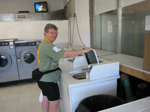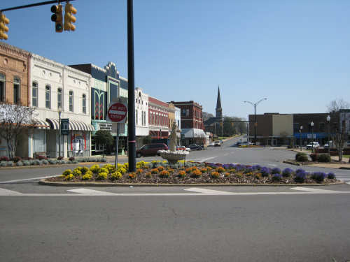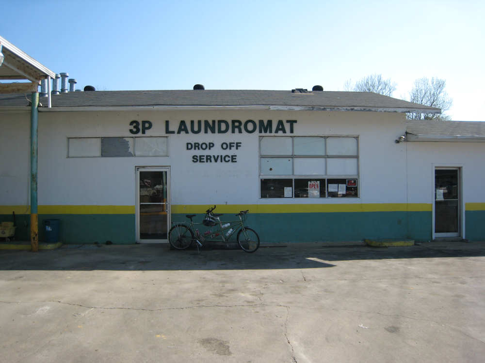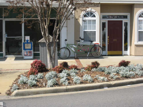 Saturday, March 22, 2008 - Rest Day Today was a much-needed rest day. We stayed over in Talladega, AL and caught up on emails and finances, did our laundry, and roamed around the little town. The laundromat was 2 or 3 miles away, so we went on bike. With everything off except for one pannier of laundry, the bike felt so nice and light! After that, we cruised over to the downtown area and took some pictures of the lovely square. We tried to find some postcards, but a friendly shop lady told us there were none of the town (she had been trying to get the Chamber of Commerce to fix that problem for years). We ended up putting almost 7 miles on the bike today, but we're not going to count them. We were lucky to have a very good restaurant right next door to the motel, Diamond Lil's, and have eaten there for every single meal since we got here. Another correction: Mr. Routh tells us that the emblem I assumed (got to stop doing that!) was the University of Alabama was really Auburn University in Auburn, AL. Thank you, sir. No one's complained about the hawk picture so I guess I'm in the clear on that one. We took a look at next week's route and it looks like we will be going through more of the Talladega National Forest for a good while. If you remember, we started seeing that forest when we got into Alabama yesterday. Next week will also be our first time camping, so we may miss a day or two of website posting due to lack of electricity. We'll see how it goes. Happy Easter, everyone! |