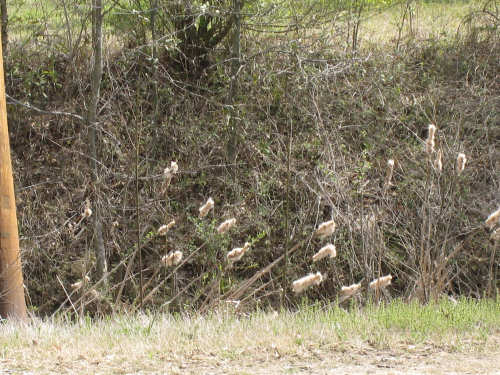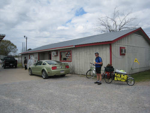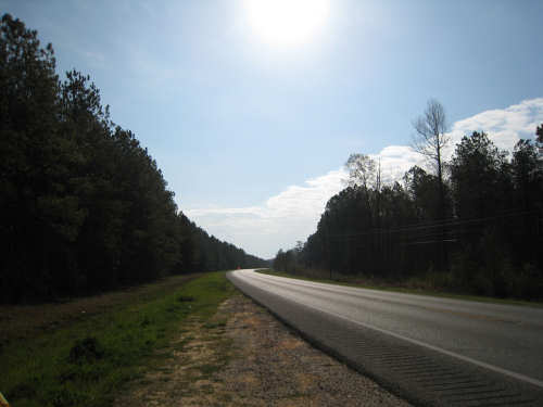 Wednesday, March 26, 2008 We had a great breakfast at the EconoLodge we stayed at last night and were underway at 7:30. Back on Route 80, where we would be much of the day, it seemed like we'd have a real easy day of it. The road was a divided highway with light traffic and a wide shoulder. The shoulder did have some gentle rumble strips running across the width but with a flat strip down the middle. So Pat still had to navigate a fine line, but at least he didn't have to worry about traffic. And even if he went over the rumble strips, it was gentle enough that it just like getting a Swedish massage on our tushes! About 10 miles out, though, the road narrowed to 2 lanes, still with a wide shoulder but the rumble strips covered the whole shoulder with just a small flat strip right at the edge of the traffic lane. Right about this same time, we saw signs for a road work zone that would go on for 10 miles. It seemed that they were working on building another 2 lanes to extend Rt. 80 as a divided highway. Part of this effort was building a second bridge, already completed but not open, over the Tombigbee River, one of 2 rivers that come into Demopolis. The other river is the Alabama, but we didn't see it. The construction wasn't a problem, since it was off to the side of the road, and it did provide a very conveniently-placed Port-a-Potty about 15 miles out. The scenery in the morning wasn't particularly stunning - some industrial places, a used car parts lot, very few houses, some trees with an occasional stretch of forest. We occasionally got a dogwood or redbud tree to add a little color. We'd seen a little wisteria in the last day or so, but at one point today, we saw a huge display, so much so that we could smell them from across the road. We also saw some deciduous trees finally beginning to leaf out today. We also saw some wildlife - a bunny hopped out from the brush by the side of the road and quickly hopped back in. We think we might have seen a flash of a deer's tail at one point. Other than that, the only wildlife we've seen to date are squirrels and lots of birds (I wish we could identify more of them). We've seen a variety of dead animals, however - possums, raccoons, skunk, a few small deer, some large birds (couldn't tell if they were turkeys or vultures or something else), and even some armadillo! We've seen a dead armadillo on each of the last 3 days, much to my surprise. I thought we wouldn't see them until Texas. There were almost no places to stop for a bathroom or something to eat along Rt. 80. We finally came to one about 30 miles out in a little town called Cuba. We bought some bananas there that looked (and tasted) very good. We asked about places to eat since it was getting close to noon, and the woman there said there was a truck stop 4 miles ahead, but nothing else until we hit Meridian, which was our destination for the evening, and it turned out she was right. Cuba was the last Alabama town on Rt. 80, and we waited excitedly to see the Mississippi border we knew would be coming soon. It was a big disappointment, however. We saw a sign for Lauderdale County, about where we thought the border should be, but no sign announcing the new state. We looked back at the sign going the other way and it clearly stated that Alabama started at that line, so we knew we were in Mississippi. We went on thinking there would be a welcome sign soon, but none ever appeared. So we entered our 10th state with not much to show for it. We found the truck stop in Toomsuba, MS and had a good lunch there. Toomsuba was a nice, little town, with the usual mix of houses in it, some very poor, some very nice-looking. We had turned onto Rt. 11 in Mississippi - another narrow, 2-lane road, but this time with deeper rumble strips right along the traffic edge with very little shoulder to the right of it. You can see the rumble strips in the first picture of the houses in Toomsuba - there happened to be a wide spot there, though, so it looks like a lot more shoulder than there usually was. So we were back to riding in the road; luckily, there was still not much traffic. The day was pretty uneventful from there until the outskirts of Meridian, about 15 miles later. There, the traffic picked up but we arrived at a motel and got off the road for the night. The owner of the small Economy Inn we ended up at was intrigued by our bike trip and gave us a large Snickers bar and bag of chips each for free! The day had started out warm with a cool breeze and some clouds. The breeze got fairly gusty at times, and it ended up quite warm (about 74 degrees) and a little humid. It felt like a longish day, but it was only 5 hours of riding time and a total of 53 miles. We arrived at our hotel around 3 pm. |