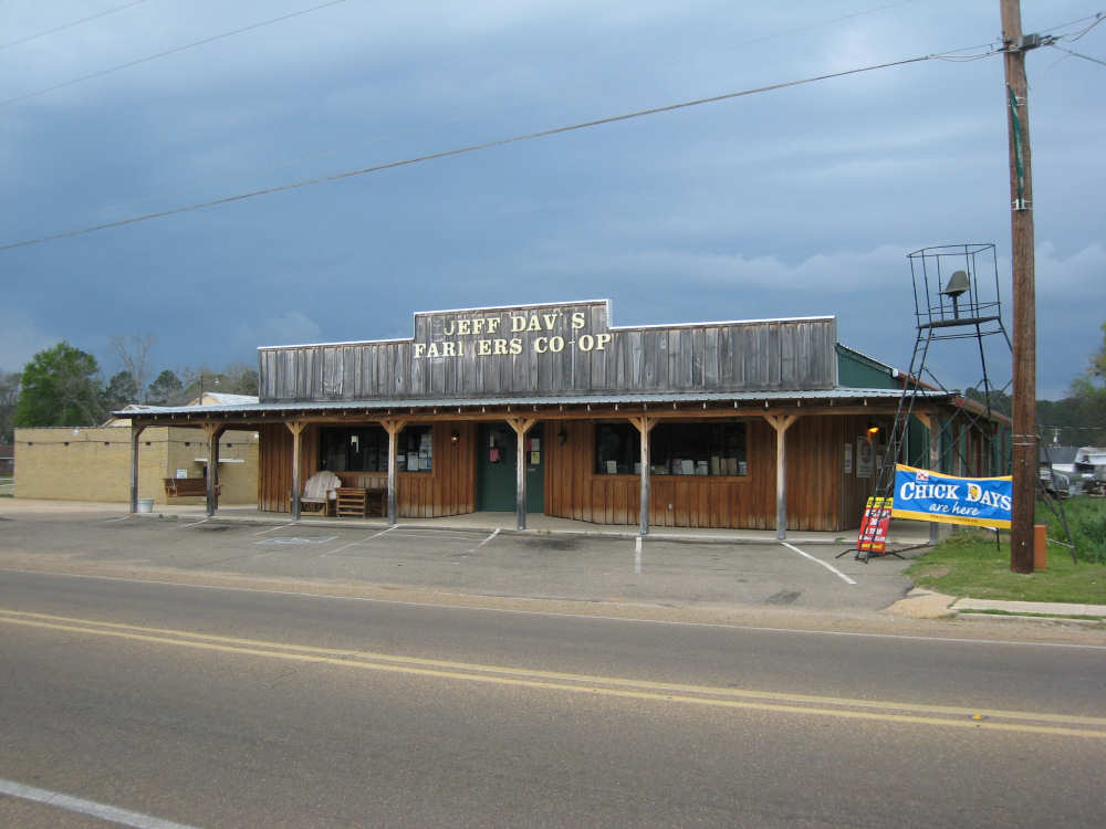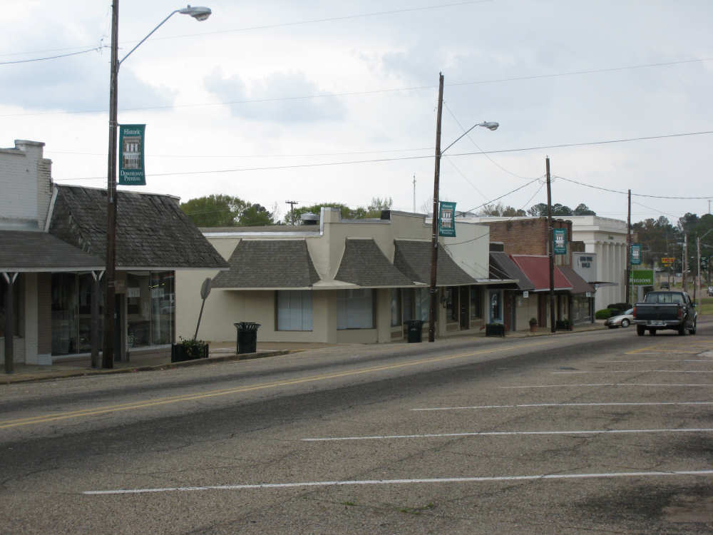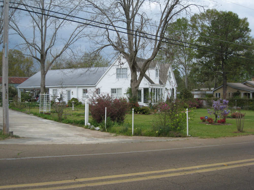 Saturday, March 29, 2008 - Rest Day We spent the day in Prentiss, MS, mostly trying to sort out what the next week's routes would be - they had a lot more complications than the trip so far has had. It will actually be an 8-day week, with our next rest day at Pat's daughter's house in Houston. There are several longer-mileage days in the coming week, so we're counting on the flat terrain making that work out ok. Prentiss is a pretty small town, and our motel was at one end of what appeared to be the main drag. I took a walk down the street to take the pictures below; from our motel, there were some houses, followed by a few stores, a lovely park, and then another strip of stores in what they call the historic section. Many of the stores seemed very nice, but many were empty, too. It did not look like a thriving business center, but today was Saturday, so it may not have been at its best. We were lucky to have 3 pretty decent restaurants right around our motel, so we didn't have far to go for food. Tonight, we took the bike out to a fancier restaurant at the other end of town, The Country Fisherman. We actually took the bike down there for lunch today but found out it was only open for dinner on Saturdays. As you can guess from the name, it specialized in fish, not a favorite of either one of us. But, realizing we would have to deal with this issue more and more as we go through Louisiana (our next state), we thought we'd give it a try. We tried the fried catfish. Can't say it made converts of either one of us, but it wasn't bad, if you have nothing else to eat, I guess. The skies were threatening all morning, when we were holed up working on our route. The rain waited, of course, until I went out to take pictures. I did bring my rain jacket with me so I didn't get completely soaked, and Pat came after me with the umbrella when he realized it was raining (he had stayed behind to work on the bike). So we got to use our umbrella for the first time, too. Talk about an exciting day! Tomorrow will be our last day in Mississippi, and even though they're still saying there's a chance of rain through Tuesday, we should be camping the next two nights. We're not going to be out in the woods, though, so there shouldn't be any trouble with our connection. |