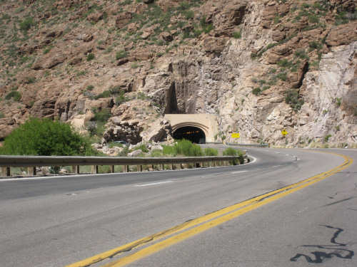 Saturday, May 03, 2008 We had a shorter day today with only one major hill. The winds were merciful to us again and were very calm all day. The day started out quite cool - 48 degrees - but went up to 90 by mid-day when we had gotten to the other side of the mountain. We had breakfast near the motel and found another biker about our age who was also trying to get an early start. He was going to be riding to Cholla (someplace we'll be passing through tomorrow) on an 85-mile ride with members of the local bike club. Sounded like a tough day's ride. We got underway at 6:45 and had an easy 6 miles or so before the big climb. We passed through the town of Globe, which had several houses built up on the hillsides and a copper and gold mining operation on some other hills. Mining seems to be the major focus around here. We went through 2 other towns in rapid succession, Claypool and Miami, both of which had mining operations. They were all operated by the same company that runs the Santa Rita Copper Mine that we saw in New Mexico (see April 28th). Soon after we left Miami, we began to climb slowly but surely. The grade was quite gentle at first, so we got a chance to warm up to it. It gradually increased to the 4-6% range. The scenery was quite stunning, particularly as we got up to the higher elevations. The mountains were made up of enormous rocks, some quite jagged and craggy, others round and smooth like stream pebbles. They must have been worn smooth by the wind; it would be very hard to believe these rocks had ever been under water. There was a fair bit of traffic, though, which detracted some from what was otherwise a pleasant ride. Just before the high point, we crossed the Pinto Creek on one of the highest bridges I had ever seen. We couldn't see any water in the creek but the gorge it formed was incredibly deep and had some great views. When we reached the high point (about 4600 feet), we found there was a little community up there. We were amused to see a sign that said Business District. There were 2 buildings that looked like they had been stores, long closed though. But there was one thriving business still going, and we got a picture of it. There were also some houses, mostly trailers, some of which seemed to be wedged into the huge boulders that were up there. It was quite a strange sight. We then began another nerve-wracking constantly-braking descent. Luckily, we had replaced the pads on the disk brake yesterday; they were already quite worn and I don't think they would have lasted through today. Part way down, the boulders became even more impressive in the area called Devil's Canyon. We stopped to take a number of pictures there. Shortly after that canyon, we went through a short tunnel, the Queen Creek Tunnel, through another mountain, and a mile or so later, we arrived in the town of Superior. Since it was nearly half-way to our destination, and the only other town before our destination, we decided to have lunch there even though it was fairly early. We ate at a small Mexican restaurant, of which there were at least 3 fairly close together. There were a couple of nice shops, selling antiques and Native American jewelry and crafts. Superior claimed to be at 2,888 feet, but it seemed much lower because we later climbed a bunch more to reach the Gonzales Pass, elevation 2,895. Just outside of Superior, we passed the Boyce Thompson Arboretum State Park, which looked beautiful with many varieties of yucca, cactus, and other flowering desert plants. Shortly after that, we came up to a jeep that was parked by the side of the road whose driver leaned out and called to us as we rode by. He had just passed us and pulled over to ask us about our journey. His name was Terry, he lived in Tempe, and he was an avid bicyclist himself, having done the Adventure Cycling Northern Tier a few years back, as well as several other major excursions. We chatted for quite a while about biking in the area. He invited us to stay at his place in Tempe for the night, but it was too far for today's stop and too short for tomorrow's. It turned out that the father and son bikers, Ian and Taran, that we met at the Kingston Lodge had stayed with Terry when they went through Tempe! He said he had heard that Ian & Taran had stayed at the lodge for several days to learn more about strawbale house construction from Catherine and Pete. Finally, Terry suggested that he ride with us a while tomorrow and show us a better way through Phoenix than the A.C. maps suggested. So we're looking forward to doing that. The rest of the ride was fairly uneventful. We went up the Gonzales Pass and down again (another steep descent, but not as long). Then, things leveled out and the road was either slightly downhill or level the rest of the way to Apache Junction, about 22.5 miles short of Tempe. The scenery along this stretch was beautiful too, with lots of desert plants and mountains in the background. The traffic was still fairly heavy and the shoulder here was very rough, so we tried riding in the road as much as possible - it made for a less than relaxing end to a not very relaxing day. As we approached Apache Junction, we went by several housing developments and small shopping plazas, all of them in a bright Southwestern style and all looking extremely new. Apache Junction itself had a very new look to it. We found our motel and got settled in at 2:30 (3 hours earlier than yesterday), having come 57.4 miles (20 short of yesterday) in 5 hours and 20 minutes of bike time. We realized that there was a bike shop in town and found out they closed at 5 pm on Saturdays, so we rushed over and got new chains put on the bike and picked up some replacement pads for the disk brake. It was a great bike shop and we had a pleasant chat with the owner and his helper while they worked on our bike. Then we went off to dinner and came back to work on the website. |
