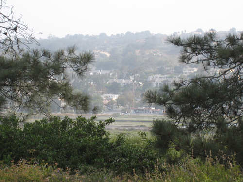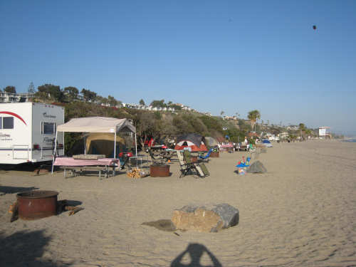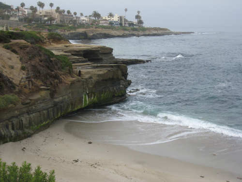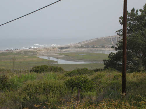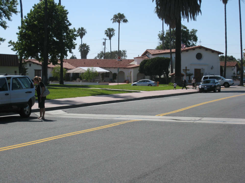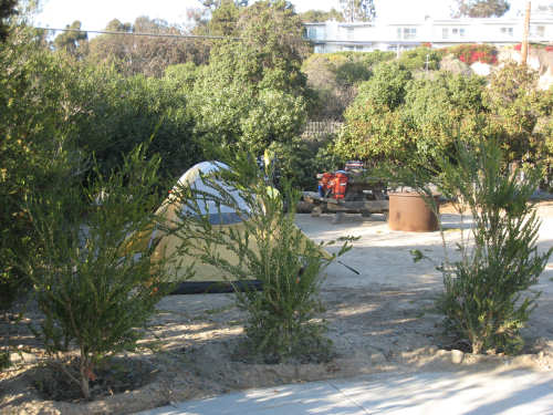 Thursday, May 15, 2008 We regretfully left Stu & Colleen's comfortable home this morning at 7:30 and headed north along the coast. Pat quickly discovered that the speedometer wasn't working. It turned out not to be working at all - the odometer, the mileage, the whole thing was unresponsive. We thought we'd have to get a new one and knew there was a bike shop about 20 miles away in Leucadia (thanks to Hank and Carolyn who tipped us off to it the other day when we said we'd need to buy some tubes). So we pedalled away without all that useful information. It turned out that the thing was stuck in reset mode and just needed to have all its numbers put in again. But we still lost the information on the first 20 miles or so of the day. We passed a lot of points of interest today. The first one was nearby, still in La Jolla - the seal beach. There was a nice little cove that Elizabeth Scripps had donated money to make into a children's beach, but the seals decided it would be a great place for them to hang out. And so they do. They were mostly all snoozing on the beach when we saw them. A couple of them went in the water for a swim and others flapped around a little now and then, but mostly they just lay there looking perfectly content! The waves were pretty calm in La Jolla today, but there were plenty of people out enjoying the beaches all along the coast - walking, jogging, biking, and just sitting and watching the ocean or playing on the beach. After a bit, we turned inland a little and climbed a very big hill up past the Scripps Institute and the University of California at San Diego. The Scripps Institute had several very scientific buildings (i.e. not very interesting architecture) but one very nice one which seemed to be the Geophysics building. The University had a lot of large buildings, and were constructing new ones (as universities are always doing). We were impressed by the number of students who biked around campus, especially given the hilliness there. We finally came down the hill, back to the coast and passed a number of very picturesque shore towns - Del Mar, Solana Beach, Cardiff-by-the-Sea, Encinitas, Leucadia, Carlsbad, and Oceanside. They all had great coastlines, lots of big, probably very expensive houses and lots of cute shops and restaurants. Solana Beach had a beautifully landscaped Rail-to-Trail path along the coast road as well. One beach had some decent waves and a number of surfers were in the water. After the shore towns, we entered Camp Pendleton, the Marine base. It wasn't at all what I expected. There were a lot of cars going through it - it started out as a 4-lane road and only later petered out to 2 lanes. It was a somewhat stark but beautiful landscape, hilly and covered with grasses and desert plants. There was also a shopping mall in it, though, a McDonalds, a large school, and housing that didn't look at all like barracks. We did see some troop movements and some training areas, but most of the area was deserted. After Camp Pendleton, we went along the coast again on a series of bike paths, through the San Onofre State Beach Park, past the San Onofre Nuclear Power Plant, and through the lovely town of San Clemente, following a very circuitous route through the neighborhood streets. We finally came to the town of San Juan Capistrano and the Doheny State Beach Park where we were going to camp for the night. The camping area was quite large, with some campsites right on the beach. There were a lot of families and other folks set up here. We arrived around 5, having had dinner at a restaurant in Capistrano. We went somewhere between 61-63 miles in probably about 6-1/2 hours or so of bike time. |