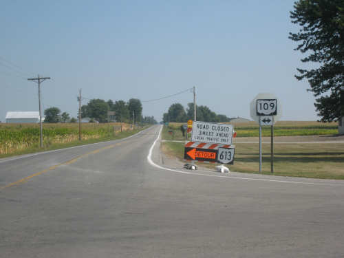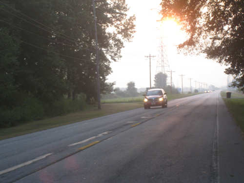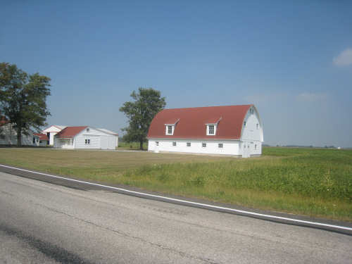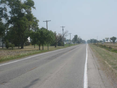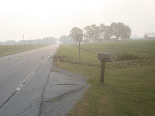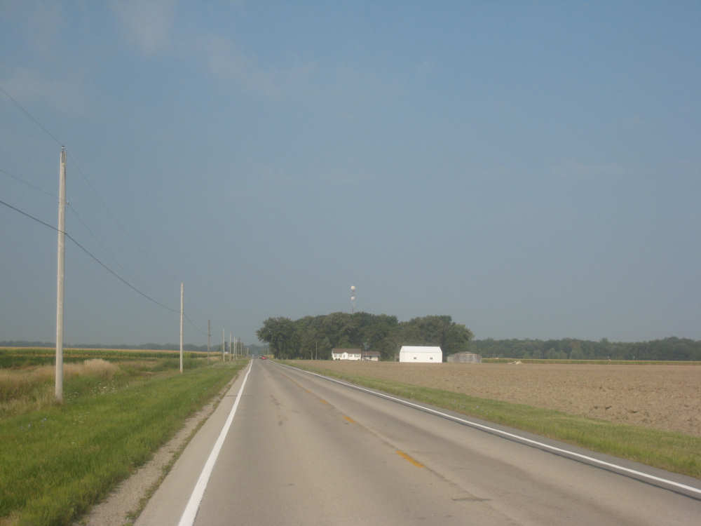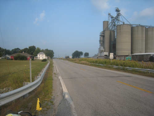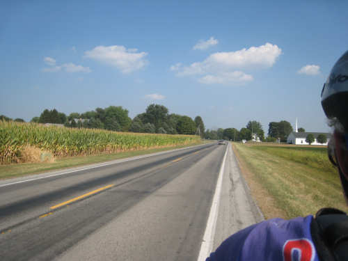Tuesday, September 02, 2008 Second day in a row that I'm starting off with something I forgot to mention yesterday. This time, I needed Janet to remind me. When we went through Huntington, IN, yesterday, we saw a sign mentioning that it was Vice-President Dan Quayle's birthplace. I didn't catch the sign until it was too late to get a picture, so naturally I forgot all about it. There is a museum dedicated to him in town as well, but we didn't go past it. I saw another sign in town with something mis-spelled on it, so maybe it's a town thing. Today started out chilly again, but got into the low 90's and was more humid than yesterday. We also had a headwind again today. So, despite the terrain being quite flat, it wasn't nearly as pleasant or as easy as it could have been. Still, we did a little better than yesterday, going slightly farther (73-3/4 miles) in about the same bike time (6-3/4 hours) but getting to our motel a half-hour earlier, at 4:45 after leaving at about the same time (7:30). We got onto SR 613 pretty quickly and stayed on it for about two-thirds of the day. 613 was long and straight and flat, passing through the usual corn and soybean fields. We then went off on some rougher county roads, going through some small farms, finally connecting with US 224, another relatively smooth road with a shoulder. The big excitement today, of course, was going into Ohio, our 28th state. We reached the state line sooner than we expected; we were pleased to see a welcome sign, although it wasn't a particularly thrilling one (it looked like the locals didn't think much of it either). Another lucky thing was coming across a big crowd of birds eating by the roadside. We stopped the bike and took some pictures. Just before we left, a car came up behind us and I waited to see if the birds would all fly away at once, which they did! This was the first time I've gotten a good picture of what we see nearly every day - a profusion of small birds swooping around in a big cloud. It's quite a sight. We went through a few small towns again today, the first one being Payne, OH. Even though it was early, we decided to stop in a bar in town for a little snack. Everyone in the bar was very nice and we chatted with a number of the folks there. Two of them ended up paying for our little meal - the third time that's happened to us! Like Peru yesterday, Payne had some surprisingly grand houses in it, as well as some that were less grand, but still quite nice. Many of them had very nice gardens in front, too. The town also had a large elementary school and nearby baseball field. Many of the farm fields we saw had been recently harvested and plowed, a few had been disked as well, leaving a finer soil ready for planting. We also saw one corn field in the process of being harvested, with corn being shot into a dump truck next to the harvesting machine. It being September now, I guess we'll be seeing more of this. Many crops seemed very dry, though; I think Ohio, as well as Indiana, have had a drought lately. We had two towns to choose from for lunch, Melrose and Oakwood, about 2 miles apart. We didn't know if either one would have a place to eat, but we figured that a place called Melrose would have to have a diner. And sure enough, it did - Uncle Fudd's Diner (whose logo was a picture of Elmer Fudd). It turned out to be a great place to eat, and we didn't see anything in Oakwood, so we were very glad we stopped. Still tooling along on 613, we came to one of our favorite signs - Road Closed Ahead. We puzzled for a while as to whether to chance it or not when a car came down the road that was supposedly closed. We flagged him down and asked him about it and he said it was no big deal, that we could easily get around it. And in fact, he was right, they only had one intersection in town blocked off and we easily bypassed it by going through a gas station. The town was Leipsic, and by now we were pretty hot and thirsty so we stopped in town for some sodas and to fill up our camelbaks with ice. It was also a nice town and the folks were very nice to us. After Leipsic, we bumped around the county roads for a while, and finally got onto US 224 about 5 miles from Findlay and our motel for the night. We're pretty glad tomorrow is going to be shorter - we've had enough 70+ mile days for a while! |