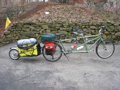 March 1 to September 14, 2008Sari and I took a bike ride around the country on the tandem pictured above. We left on March 1, 2008. We arrived home on Sunday, September 14, at 6:05pm. Click the dates on the left to see pictures and commentary of that day's travel. Look at the route page to see where we are. |
