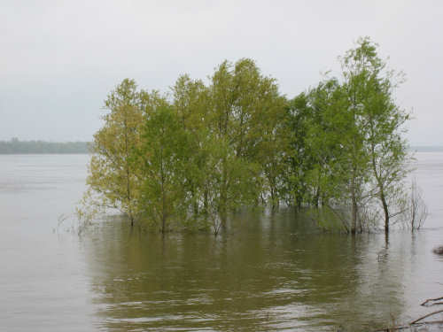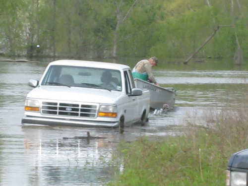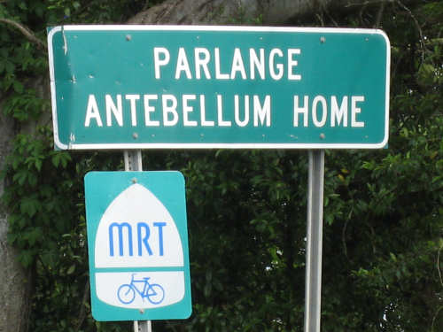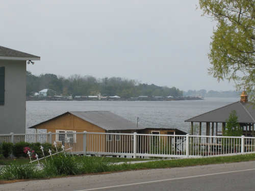 Tuesday, April 01, 2008 A very big photo day - we took 3-4 times more pictures today than normal (168) and managed to whittle them down to 50. A lot of them were taken from the bike (or we would never have gotten to our motel tonight!) so the quality may not be as good, but we hope you like them enough to get through all 50. The travelers' angels continued being good to us - our tent didn't get rained on during the night (in fact, we saw a mass of stars before we went to bed) so everything was dry when we packed up. As we were heading out, we ran into the nice couple, Suzanne and Norman, from Quebec whom we had met last night, so we took the opportunity to take their picture. We had only about 5 miles to go to get to the ferry in St. Francisville where we would cross the Mississippi River, and we hoped to find some breakfast there. As luck would have it, we saw a policeman by the road and he directed us to a wonderful place we never would have found, as it was tucked away in a little row of cabins. The Birdman Cafe and Books was a quaint little cafe, with paintings and hand-carved birds by local artists on display, a local musician playing guitar (he also baked their organic whole-grain bread), and delicious food. We talked with a woman there who had seen us on the road near our campground the night before! Fully charged by the great food and coffee, we set out for the ferry, passing through the beautiful town of St. Francisville in the process (lots of pictures there). As we went through town, we were passed by our Quebec friends who seemed to be headed that way, too. We got to the ferry just as it pulled out (our friends must have gotten on that one), but knowing it would only be about 20 minutes until it got back, we passed the time taking pictures. We had been told the river was very high, apparently due to snowmelt up in its more northern reaches like Kansas. It was quite odd to see trees along the banks with most of their trunks submerged. We also watched a truck backing down a boat ramp to launch a fishing boat, getting in way up to his bumper. He pulled out again when the boat was afloat, parked and then walked back on a little strip of land to get into the boat with the man who was already in it. When I commented to him that I didn't think he'd be able to drive out, he laughed and said he did it every day. The ferry finally arrived and unloaded. Besides about 6 regular passenger cars, its other cargo were 2 large trucks, a front-end loader, and an antique car! As we waited for the ferry, a large tug boat went by pushing a huge barge carrying coal. When we were on the ferry ourselves, another identical barge and tug went by us and I got some good pictures of that. We arrived at the other side, docking with pin-point accuracy, and got on the road into the town of New Roads. The landscape was now very different - there were lots of swamps and bayous, very large fields - mostly pasture, but some crops, lots of wildflowers along the road, fewer trees and very few of the pines we've seen since Virginia. In fact, we saw very few logging trucks today and they weren't carrying pine. The parish (which is what all the counties in LA are called) we were in was called Pointe Coupee, because it was a little point of land cut off and given to the French a few hundred years ago. The first houses we saw were very modest, but they became grander as we went farther into town. There were houses all along an arm of the Mississippi River that they call False River which curves around in an oxbow. Our road ran along that curve for several miles. When we stopped for a rest, a woman working in her yard across the street from us ran across the fairly busy street to ask us where we were headed and after chatting for a bit, invited us to see her deck along the river. We got some great pictures of the river, her landing dock, the purple martins in her bird feeder, her irises, and a little lizard that was climbing up her wall. After New Roads, we got onto a larger road (Rt. 78) and hit some head winds that slowed us down a bit. The road had a wide shoulder but it was pretty rough. We went across the Atchafalaya River, a wide river as well, on a beautiful bridge. We turned onto Rt. 190 for the last 30 miles of our 59-mile day. The winds were better, and the shoulder was better most of the time, but the traffic was worse. 190 is apparently a major alternate route for the Interstate Route 10 which is still being reconstructed in places from Hurricane Katrina damage. One of the amazing things on this road, though were the bridges over what they call spillways - I guess that's where the water goes when the rivers overflow. Our first one was the Morganza Spillway, which went on for about 5 miles! It was 4 lanes divided by a barrier but very little shoulder, so there was no chance to stop for those 5 miles. Below us were trees and swampy areas. The second spillway was, thankfully, much shorter. We made better time on Rt. 190, but it wasn't as scenic. The storm clouds that had come and gone all day finally started to dump some of their rain, as well. Mostly, it was just a few sprinkles, but it rained hard for one short period. We were thankful for the clouds, and even the rain, though, because the sun was scorching when it came out and the humidity was very high. The rain cooled things off nicely. We did get some wildflower close-ups in between the rain spells. Oh, and we got 2 answers to yesterday's mystery flower question - one guess was purple vetch and the other was a variety of pentstemons. We have 2 other flowers to identify today, see below. We ended up at our motel in Opelousas at 4:30, pretty tired after a long, exciting day. We had gone 59 miles, in 5 hours and 10 minutes of bike time, averaging almost 11.6 mph, nearly as fast as yesterday. |