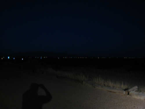 Thursday, April 24, 2008 We decided to go with Hwy. 20 and 76, the Adventure Cycling roads, rather tha I-10 today, and it really wasn't at all bad. They were smooth and had very little traffic (until we got closer to El Paso) and were definitely more interesting than I-10 had been. We went past lots of small farms, many of which had irrigation ditches along the road and various kinds of locks and sluices to move the water around. There was also a large reservoir which apparently feeds the irrigation ditches; how it gets filled, we have no idea. We got an early morning view of the lights from the Mexican towns along the border (first picture below), and were able to see some houses on the Mexican side, nestled under the mountains. We never did see the Rio Grande but apparently there's not much to see in most places. Tomorrow, we'll actually cross the Rio Grande a couple of times, when it's between Texas and New Mexico. We saw acres and acres and acres of pecan trees, some of them in standing water with ibis and egrets walking around in the water. Haven't seen many shore birds since we left the Gulf area, weeks ago. We also passed through a few small towns, which is always interesting. The area between Fort Hancock and El Paso seemed fairly prosperous, not wealthy certainly but doing quite well. A historical marker described the economic ups and downs of one of the towns - Tornillo. It did quite well growing cotton, and judging from the tufts of cotton we saw along the road for many miles, they still grow cotton here, but the only crops we saw growing and/or advertised for sale were pecans, hay and alfalfa. Tornillo seemed to be the most interesting town along this stretch, but we ate a mid-morning snack in the town of Fabens and met another couple of bikers, Bill and Fred, from Washington State. They came in for some coffee and we chatted about the routes and different variations we'd made. They were going eastward, of course, and told us of a way around the huge mountain we'll be climbing this week, but Pat seems to have his heart set on seeing the Emory Pass. So I guess I'm doomed. Our last town before El Paso, Socorro, was much larger than we expected. It had a number of big shopping malls, which looked much like shopping malls everywhere in the States, except that these had a distinctly Spanish/Mexican flavor. Traffic got heavier starting in Socorro and the edge of town coincided with the start of El Paso. It was another 15 miles, though, before we got to the center of El Paso, our night's destination. El Paso was interesting in that it had a major point of entry with Mexico. There was a big bridge connecting the two countries; traffic coming into the US was backed up waiting to go through Immigration. There was a walking lane over the bridge and we saw several people using it. The mountain we'd been seeing in the distance a lot of the day turned out to be right in El Paso, splitting the town in two, with cell phone towers along the top of it. We rode through several suburban subdivisions getting into town, and then got into a lively town center, with lots of people walking around. The town seems to close up after 5, though; we had a hard time finding a restaurant open when we went out after 6 for dinner, and there were substantially fewer people around. Another interesting part of El Paso we rode by was the Chamizal National Memorial. Chamizal was an area that was under contention between the two countries for many years, as a result of the Rio Grande changing course and carving out a large chunk of land that was in Mexico but ended up on the US side of the river. The National Park Service established a park on the land that ended up American after the final negotiations. Tomorrow, we'll follow the Rio Grande up into New Mexico, and finally leave Texas behind. |