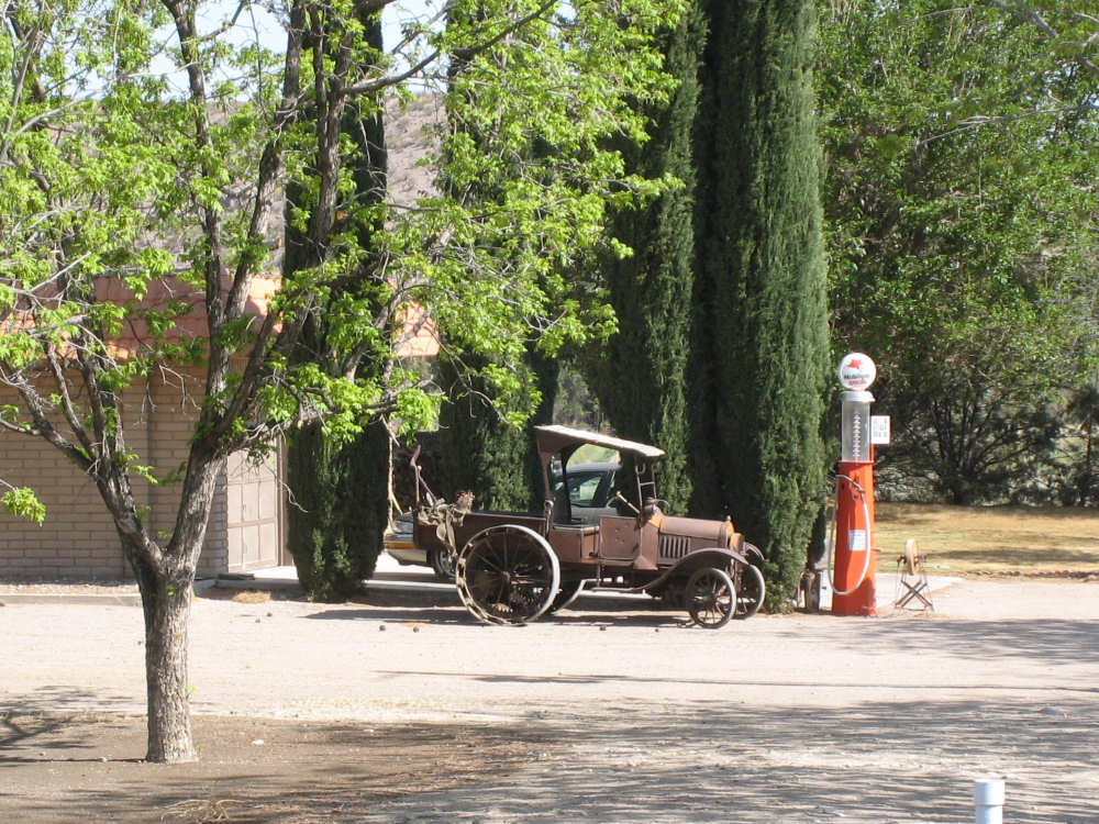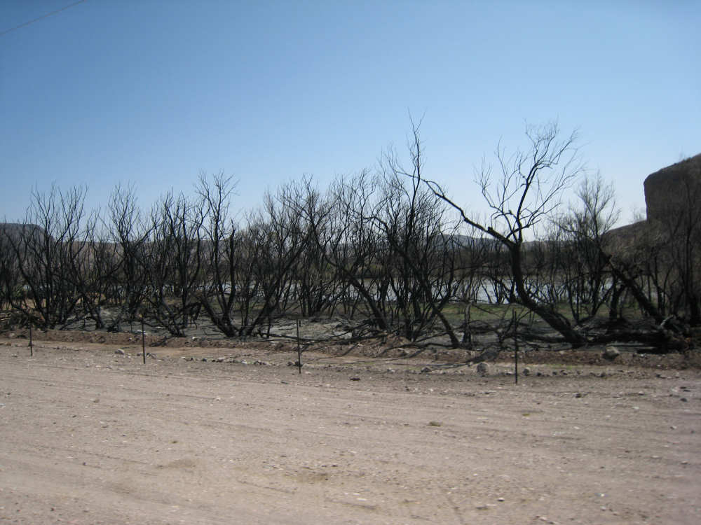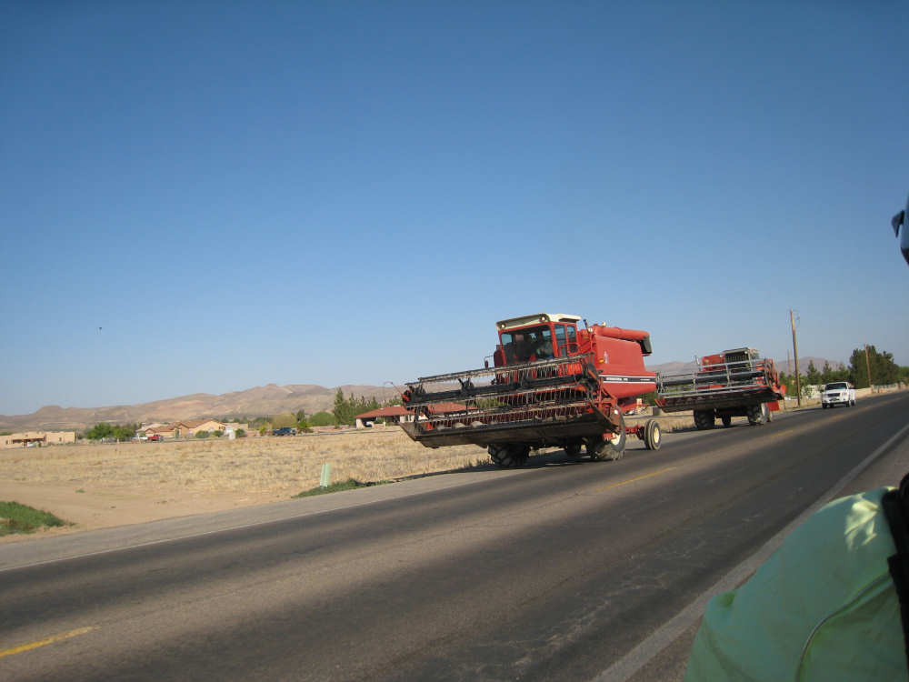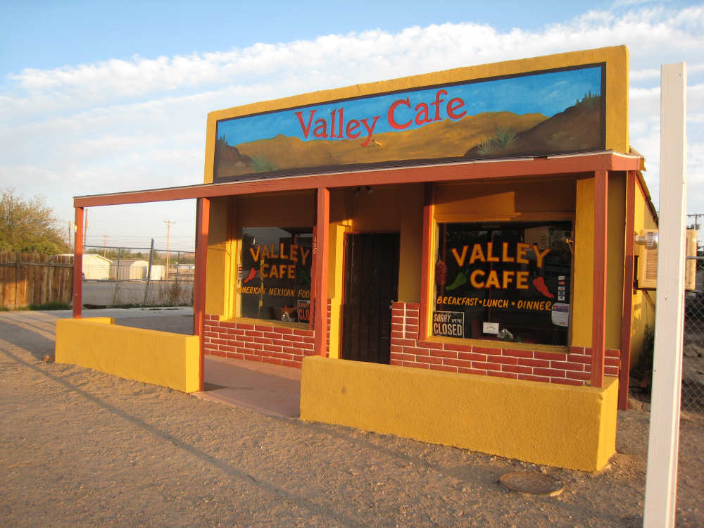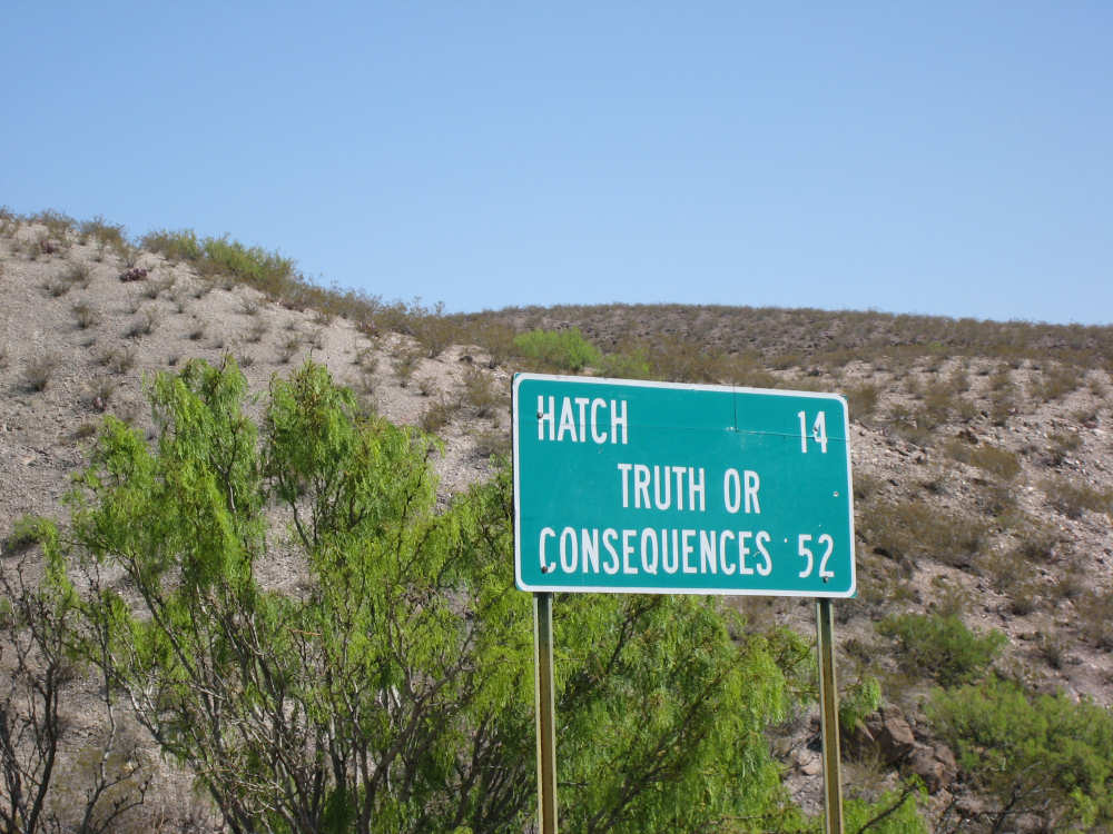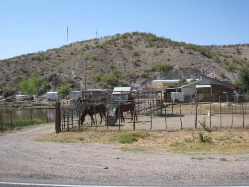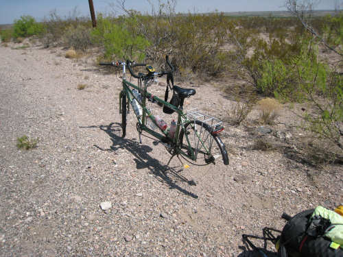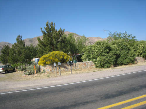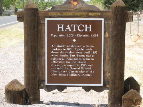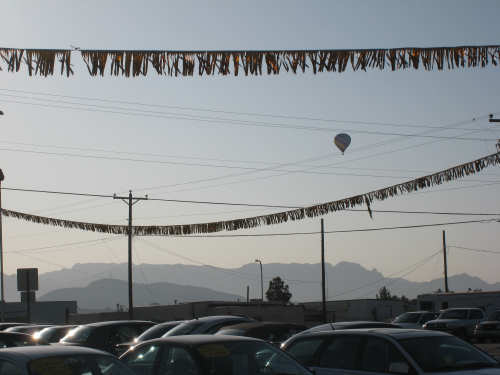 Saturday, April 26, 2008 We started out this morning at 7:40, an hour later than usual since we had a short day and the breakfast place next door to our motel didn't open until 7. It was unusually chilly this morning - we saw one sign saying it was 34 degrees, but it didn't seem THAT cold. It warmed up to its usual high-70's, low 80's in a couple of hours, though. We were delighted by the sight of a hot air balloon drifting by above the road in front of us. The road out of Las Cruces was just as lovely as the road coming in - pretty Southwestern-style houses, nice neighborhoods, beautiful plants and flowers around all the houses. We crossed the Rio Grande again on the outskirts of town and the scenery changed rather suddenly. It seemed like we were back in Texas. The lush crops and full irrigation ditches were replaced with dry, rocky soil, tumbleweeds, rounded hills with scrub brush. The one town we went through, Radium Springs, seemed parched and nearly empty. As we went on, our road began to run alongside the Rio Grande, and we saw more crops, including the ever-present pecan trees, near the river. Closer to the town of Hatch, today's destination, a wide valley opened up next to the river, with several large farms in it. There were also a few housing developments, as well as individual houses dotting the landscape. Most of the houses were of regular, not Southwestern. construction. It was very peaceful riding, good road, little traffic, warm and sunny with little wind; the barrenness we saw most of the day, though, was somehow disappointing after the prettiness of yesterday's ride. There were a few highlights to report today. One was that we had another flat, this time on the rear tire. Pat's working on perfecting his technique of fixing flats - he should be quite the pro by the time this trip is over. Another high point was a Border Patrol checkpoint. This one seemed to stress drugs rather than illegal immigrants; we must have looked pretty clean, because they just waved us through. My personal favorite of the day was the impressive mountain we went by with the massive, sculpted rock faces. We pulled into the town of Hatch, which turned out to be a bit larger than we expected. There was a trailer park just at the fringes of town, possibly housing people who work the local farms. The downtown area had a number of stores and restaurants and looked quite lively. Chile peppers seem to be the prominent crop here - we must have seen some growing along the way but didn't recognize them. Hatch has a Chile Festival around Labor Day weekend and there were a number of places with clumps of red chile peppers hanging up for sale and/or decoration (including at our motel). We arrived at our motel at 1:15, going only 39 miles today in a little under 4 hours of bike time, about the same average as yesterday. Tomorrow we start up the mountain. We plan to stop at Kingston, about halfway up, and tackle the rest the day after, arriving at Silver City. We have split what was going to be 3 days of full, hard riding into 4 easier ones, and expect to skip our rest day this week as a result. |