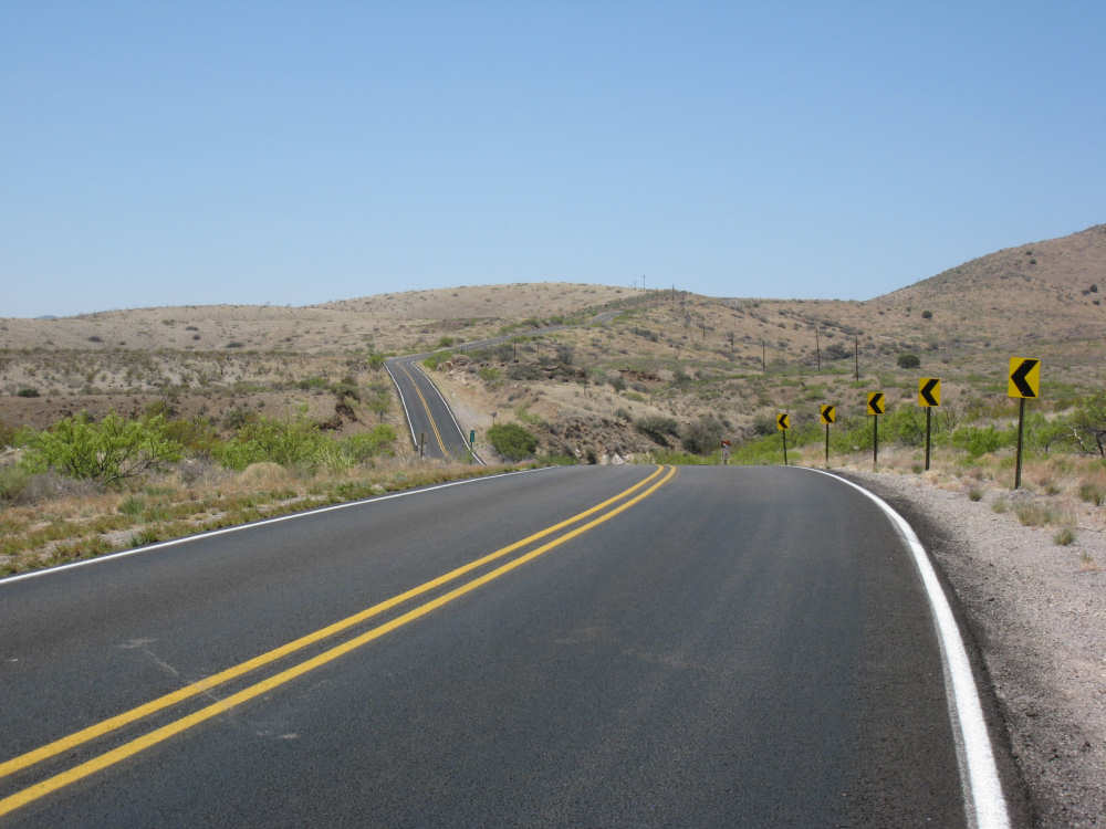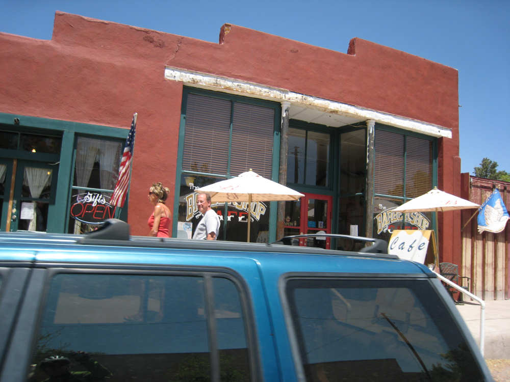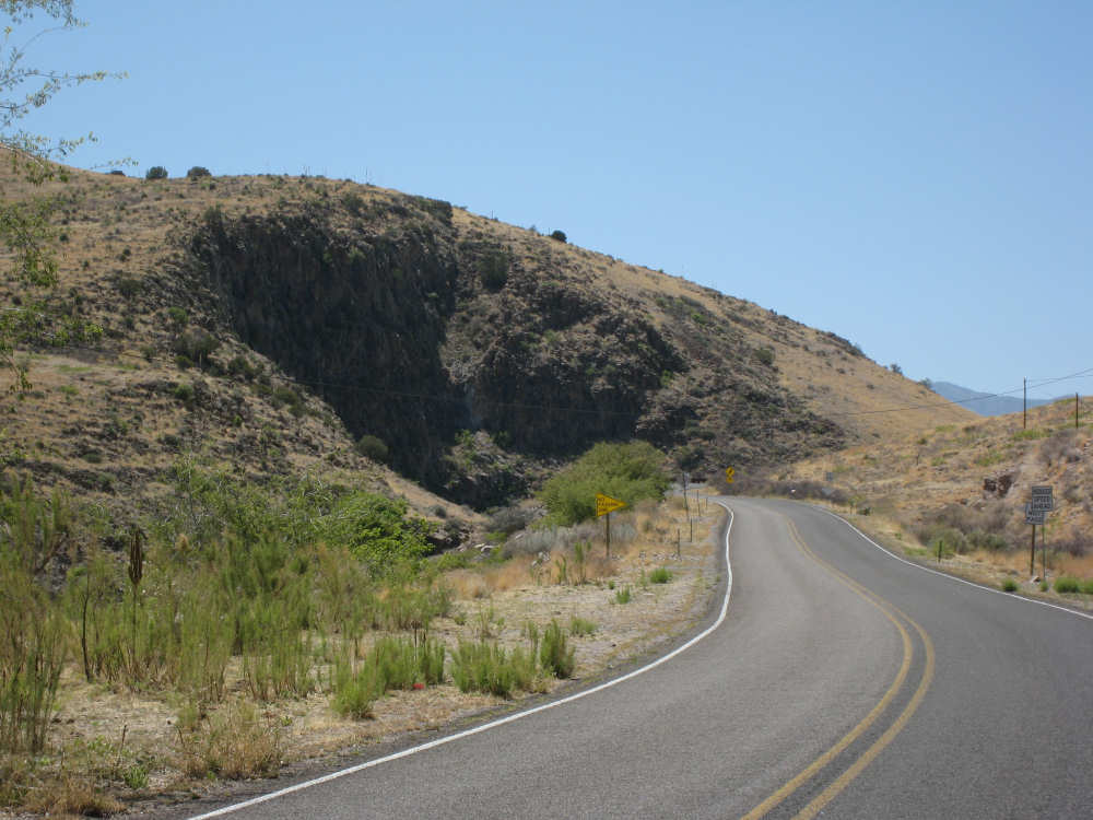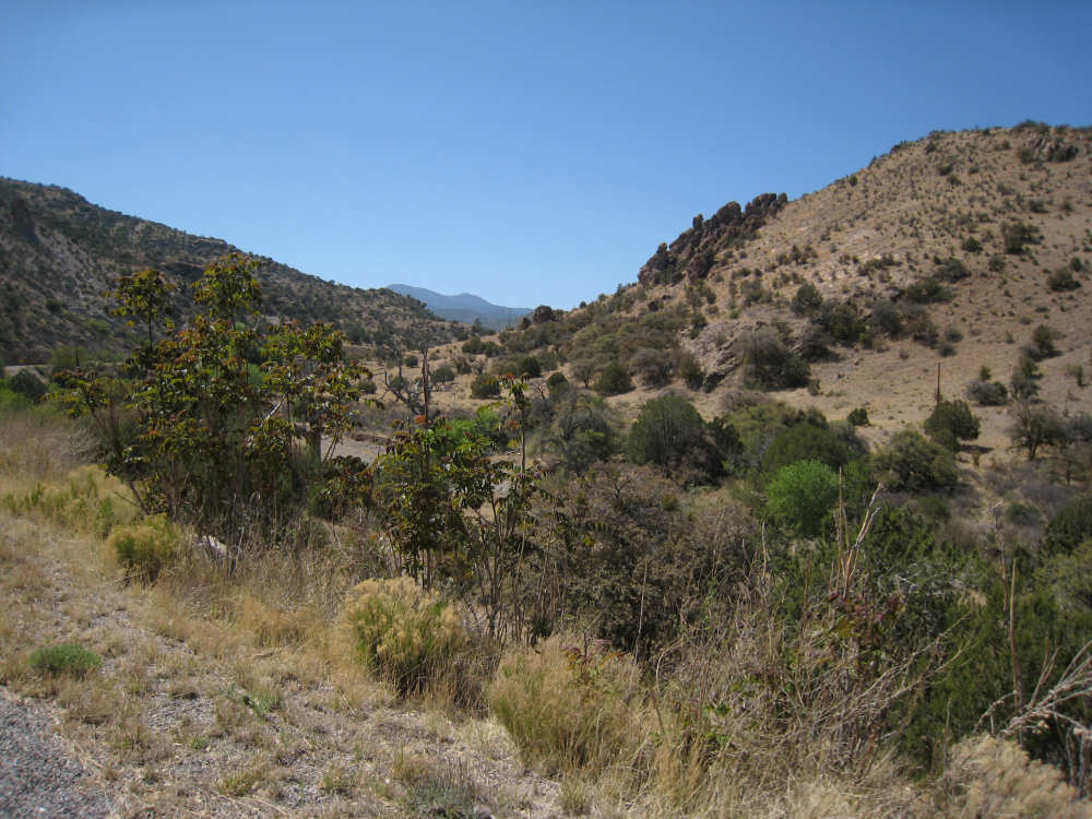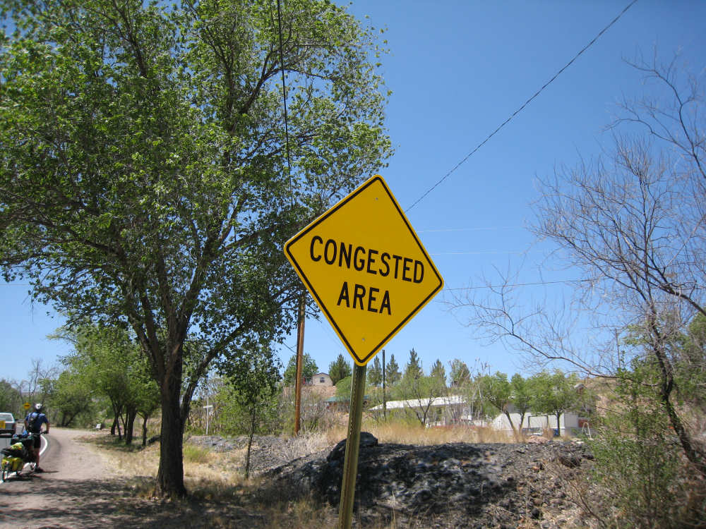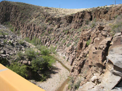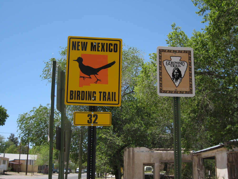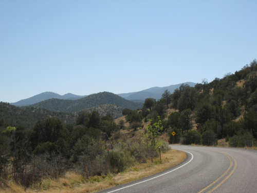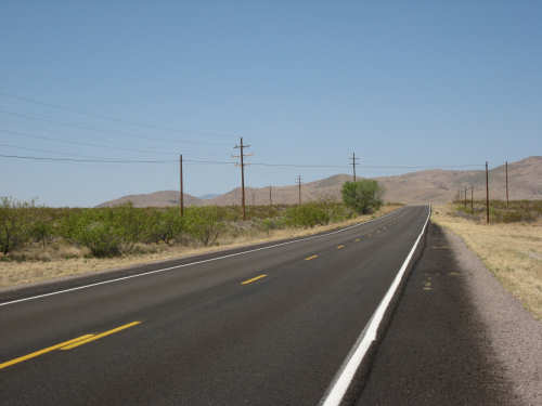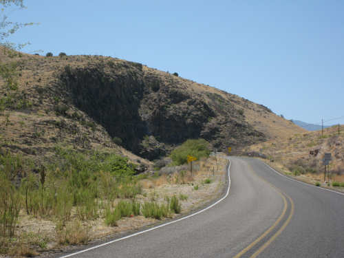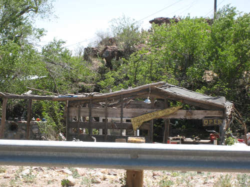 Sunday, April 27, 2008 I am madly in love with New Mexico. I hope today's pictures do it justice - it is incredibly beautiful. We left Hatch this morning at 6:40 after a so-so breakfast at a food mart (it's Sunday and nothing else opened until 8 am). We were dismayed by the wind which was blowing fiercely from the direction we would be heading. Maybe it'll die down when the sun comes up, we thought, but no, it was a good, stiff head wind all morning. It was chilly, too - 48 degrees by the first thermometer we saw, but the wind made it feel colder. We had 25 miles of relatively flat ground to cover before we hit the hills. We thought it would be the easy part of the day, but it turned out to be the hardest. We were amazed at all the birds that were out this morning, despite the wind. We saw several large flocks of them, and heard several more chattering in the trees and bushes we passed. It was one of the nicer things about the morning. We went through a few small towns, about 5-10 miles apart - Salem, Garfield, Derry, and Arrey. They were all quite small and had nothing open and not much to see, except for Arrey. As we went through Arrey, we noticed one building with a lot of cars in front which turned out to be a cafe. We went inside to warm up and have a little snack - it was about 10 am and the place was packed! We just had coffee (me), orange juice (Pat) and a couple of sweet rolls, but it was just what we needed to keep going after 17 discouraging miles. A number of folks in the restaurant sympathized with our having to deal with the gale that morning. After 25 miles, we turned west onto Hwy. 152 and the going was a bit easier. We had a side or tail wind for a while, and the wind eventually died down to almost nothing. We certainly couldn't have coped with the hills we had to climb today if we had to deal with that wind in our face all day. We did see several interesting things along the way to our turn onto 152. First of all, we saw where all the chile peppers Hatch was selling came from. We passed several chile farms, none of them had any visible plants in the ground, but it must have been early in the season. Many fields were neatly furrowed and probably planted. We also saw a field with hundreds of strange little igloos. It turned out that they were little calf sheds, many of them with calves standing outside eating from buckets. Just before our turn, we came to the Caballo Lake State Park, with a huge reservoir and just crammed with RV parks, boat storage units, and vacation homes. Our first sight of the reservoir was at the end of a very dry Percha Creek, which we would see later in the day. Our next stretch, on Rt. 152 between Caballo Lake and Hillsboro, was less hilly than we expected, with a few notable exceptions. The landscape was mostly dry scrub brush, similar to what we'd seen in Texas, with some rounded hills, and steeper hills on the horizon. We made better progress now that the wind wasn't blowing straight at us. It was very pretty and was a nice, peaceful ride. We saw our first jack-rabbit, hopping off in the brush; they're supposed to be plentiful in these parts. As we approached Hillsboro, we had a long climb that was fairly steep and curvy - very pretty - and then a nice descent into town. Hillsboro was a very interesting town with some very old houses and some very pretty houses. There were a number of little shops and cafes in the center and we had a delicious lunch at a place called the Barbershop Cafe (maybe the building used to be a barbershop?). They also sold many beautiful artifacts from local artists and craftspeople. We headed out of Hillsboro about 2:30, happily stuffed, with just 9 miles to go to our final destination in Kingston. This is when the scenery went from beautiful to absolutely gorgeous. It was quite hilly and the road wound up, down, and around stunning canyons, valleys, and gorges. The views were spectacular. We passed the Percha Creek again, this time a nice little stream, soon after Hillsboro at the bottom of a canyon. It turned up several more times as it wound around the hills. Every turn we made opened up another gorgeous scene. The climb was very slow but not so steep as to be exhausting., and it gave all the more time to enjoy all the awesome sights around us. It was definitely heaven on earth. We got to our turn off of 152 and went down a tiny road lined with rustic houses. We soon came to the Black Range Lodge (named after the mountain range it was in), a lovely old lodge from the 1800's when there was a gold rush in the area. The owners of the lodge, Kathryn and Peter, are a wonderful couple who made us feel right at home. They were hosting a couple of singer/songwriters who had just put on a concert in Hillsboro (they had seen us on the road earlier), and had a few other interesting guests in the lodge as well, including a couple of other bike riders, a father and son who had biked down the California coast from Vancouver and over from San Diego. We finished the day at 51.5 miles in almost 6-1/2 hours of bike time - our slowest average to date, but one of our most enjoyable. |