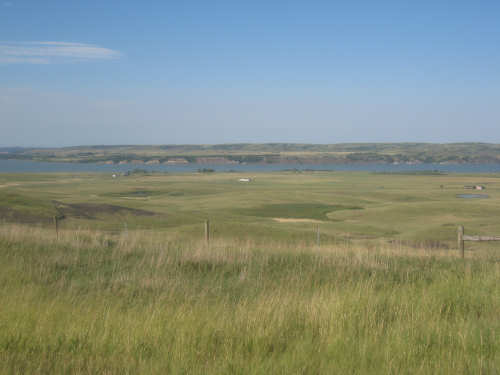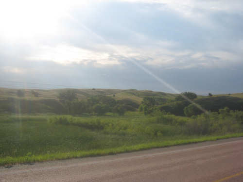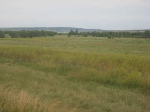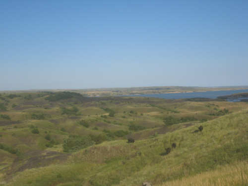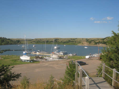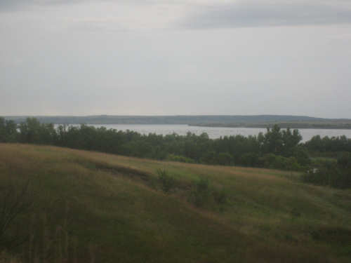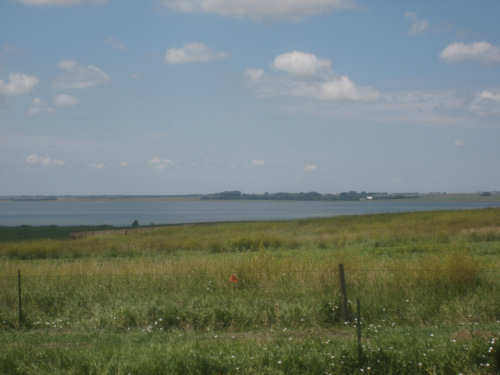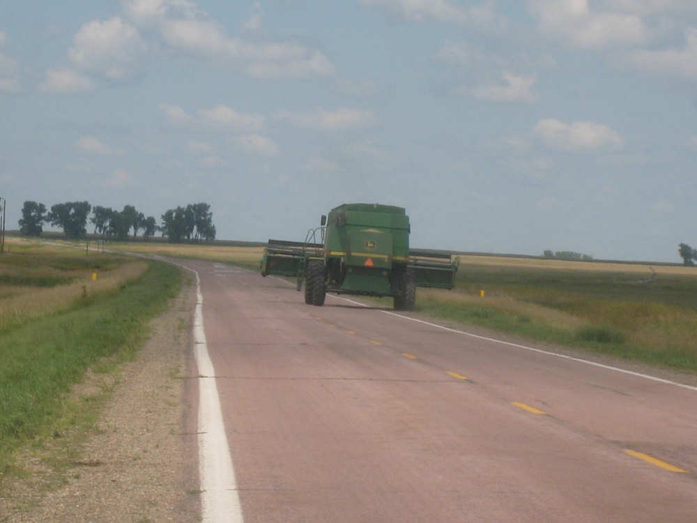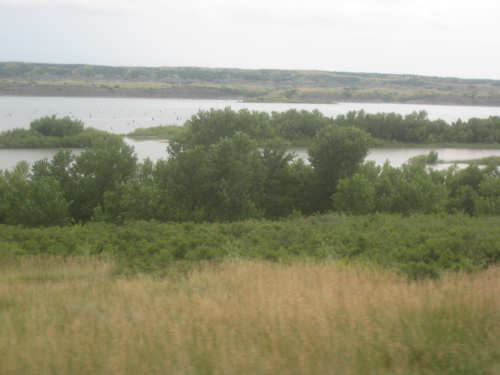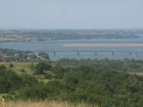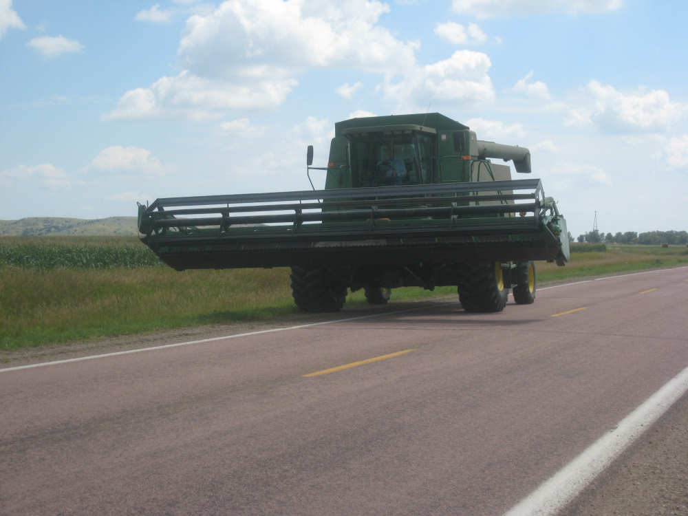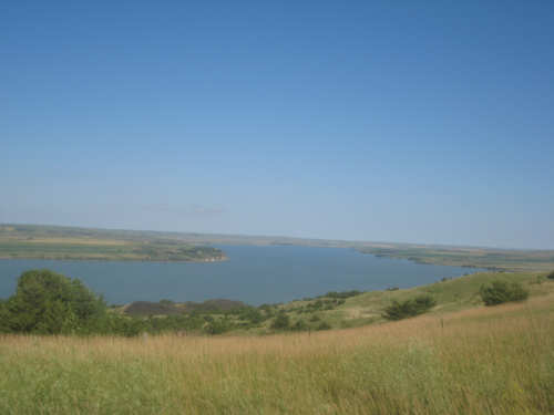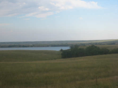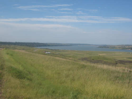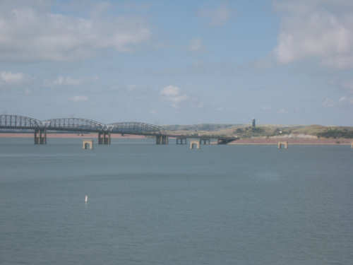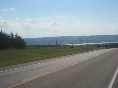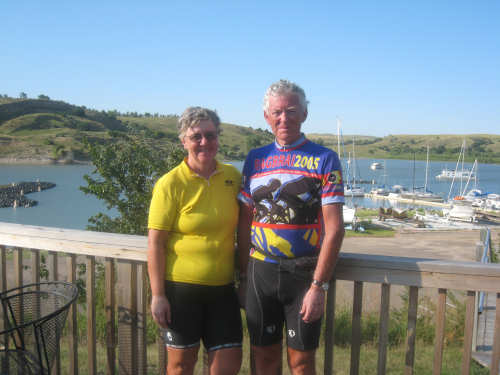 Wednesday, August 06, 2008 It stormed again last night and this morning was cloudy, so we left Fort Thompson expecting to get rained on again. However, it quickly cleared up and became hot and sunny. We started out at 7:45 and followed Indian Road 4 right along the Missouri River for about 8 miles. The hills along the river were very pretty; the terrain was mostly gentle hills with grasses for pasture and some small farms. The Indian Road was in bad repair most of the way, but it was flat. We then turned onto State Road 50, which we followed for most of the rest of the day. We soon had 2 long, steep hills to climb, but it was still early in the day so it wasn't too hot and the hills around us were spectacular. We came into Chamberlain, the only town of the day, after a steep descent from the second hill. Chamberlain is the county seat of Brule County and is located right on the river. There were 2 interesting bridges across the river in town, and we saw two kids playing on a beach on the river as we went through town. There was also a historic marker, nearly unintelligible, but with some interesting information. We stopped at a convenience store to have a snack and top up our camelbaks, since this would be our only chance to do so all day. We had only come 22 miles out of our 70 mile day, so we had to resort to the warm water in our bottles before the day was over. While we were at the store, a guy came over and said he had seen us on the road yesterday, chugging up a hill, and again today, going up the hill into Chamberlain. He said he really sympathized with us because he sometimes biked between Chamberlain & Fort Thompson himself. After Chamberlain, we veered away from the river until the end of the day. We were back in the immense croplands now and we were still climbing, only more gradually now and over a longer distance. A few clouds had developed so we had occasional cloud cover and the wind was a little stronger at times, so it cooled us off some, but it was basically pretty hot most of the afternoon. The road was pretty smooth except for long cracks that went all the way across the road and shoulder at frequent intervals. They were sometimes deep enough to be quite jarring on us and the bike, which was unpleasant. Other than that, the road surface was pretty smooth. South Dakota uses the same surface technique that Texas does - chip seal, I think they call it, where they put down a layer of tar and then spread gravel over it. This made the Texas roads awfully rough, but South Dakota must use smaller gravel because they are generally much smoother, even when freshly done. Highlights from today, besides the beautiful hills before Chamberlain, were: a huge lake, called Red Lake that we passed shortly after Chamberlain; a short range of hills, called Bijoux Hills, that we went through and then behind; and another large piece of farm equipment that passed us on the road. The farm equipment seemed to be some sort of harvester and when we first saw it coming toward us, it was taking up the entire road. We stopped to let it pass and to take pictures of it, but we didn't really need to. As he approached, the driver moved over to the side of the road and it seemed that he moved the blades over as well. They originally stuck out evenly on both sides of the vehicle (they were what was taking up the whole width of the road), but as he passed us, we saw that the blades were farther over to the opposite side of the road. After he passed, they had moved back to the center. We had reached the peak of our long climb after we passed the Bijoux Hills, so our pace picked up a little. It was still a lot of up and down, though, and we were getting tired and hot, but the end was now less than 20 miles away so we pushed ourselves to get there as soon as we could. There wasn't much of interest until we made our final turn toward the river, onto SR 44. The last downhill to the river was really pretty, although we were a little daunted to see the road we would start off on tomorrow morning, right across the river - it looked pretty long and steep, but we'll worry about that tomorrow. We found the marina where we would stay in a little cabin overlooking the river. We checked in at 5:30 and quickly decided we would have dinner before doing anything else. There were 2 women running the place, a server and a cook who was the sister of the owner. The owner was away at Sturgis, South Dakota, catering an affair at the huge motorcycle rally that was going on there. We took some pictures of the place after dinner and the owner's sister was kind enough to offer to take a picture of us in front of the marina. Then we went up to our cabin to unload, shower and work on the website. Since our cellphone connection doesn't work here, we had to use the marina's internet access which only works in the restaurant so we are limited by the restaurant's hours. We ended the day at a little over 70 miles in under 7-1/2 bike hours, a better average than we expected. Tomorrow, at least, will be a short day, but the day after will be even longer than today. Still, the next day will be a rest day again. |