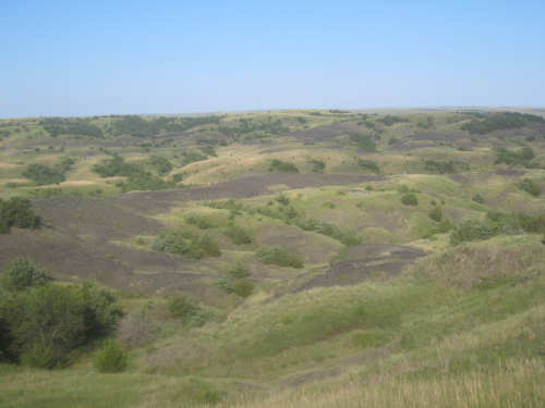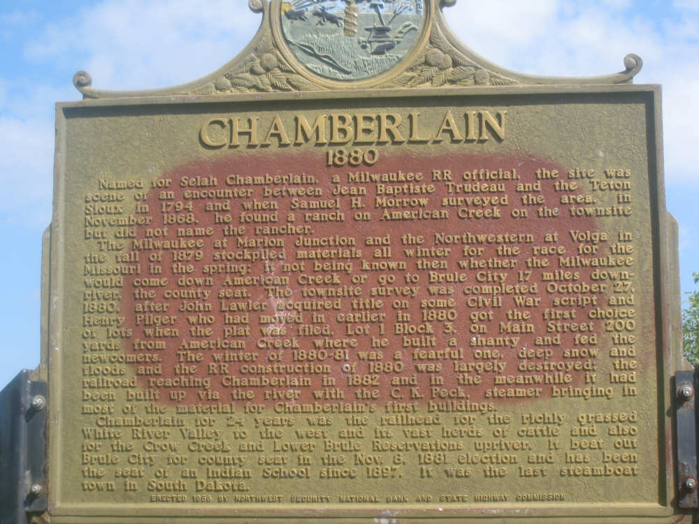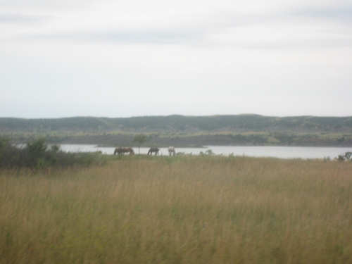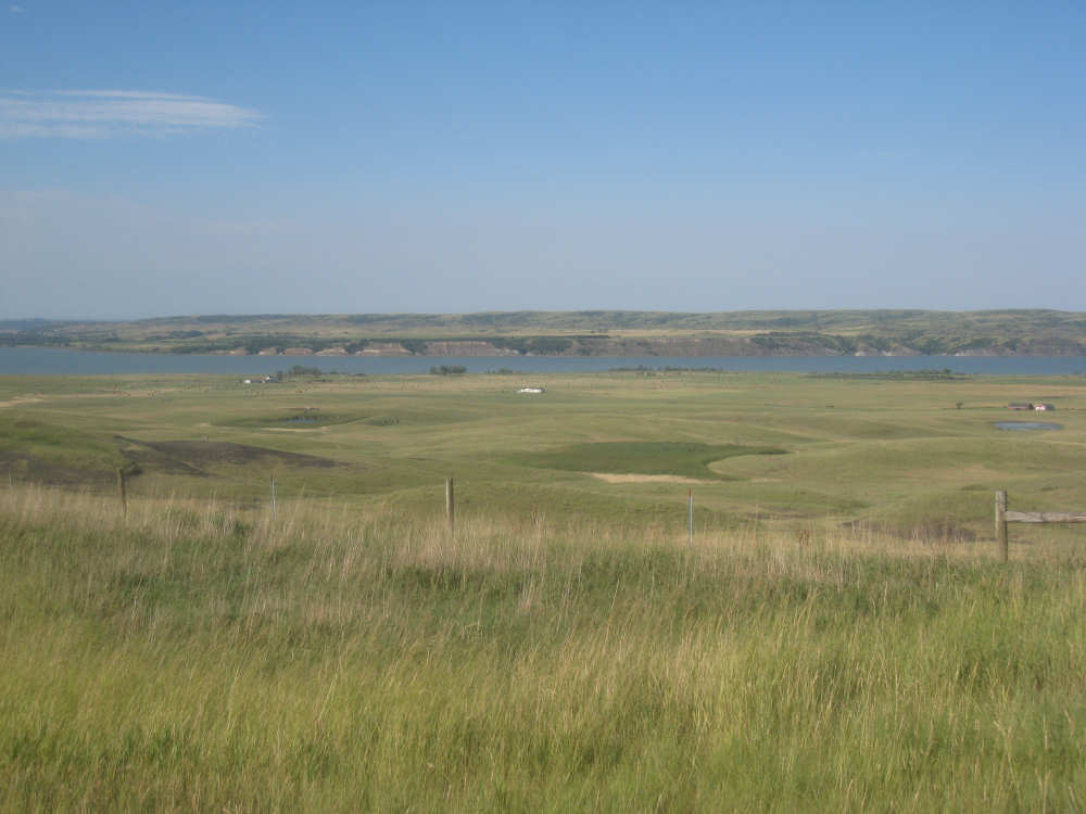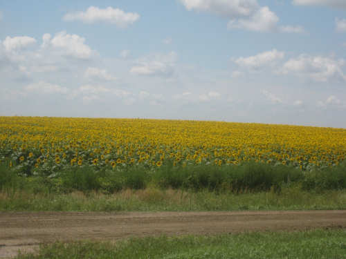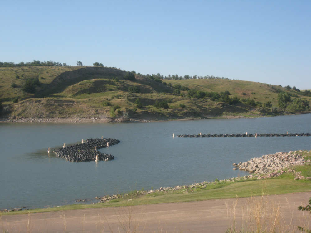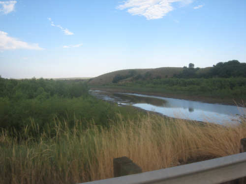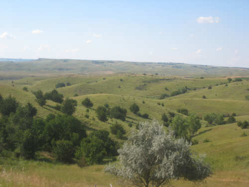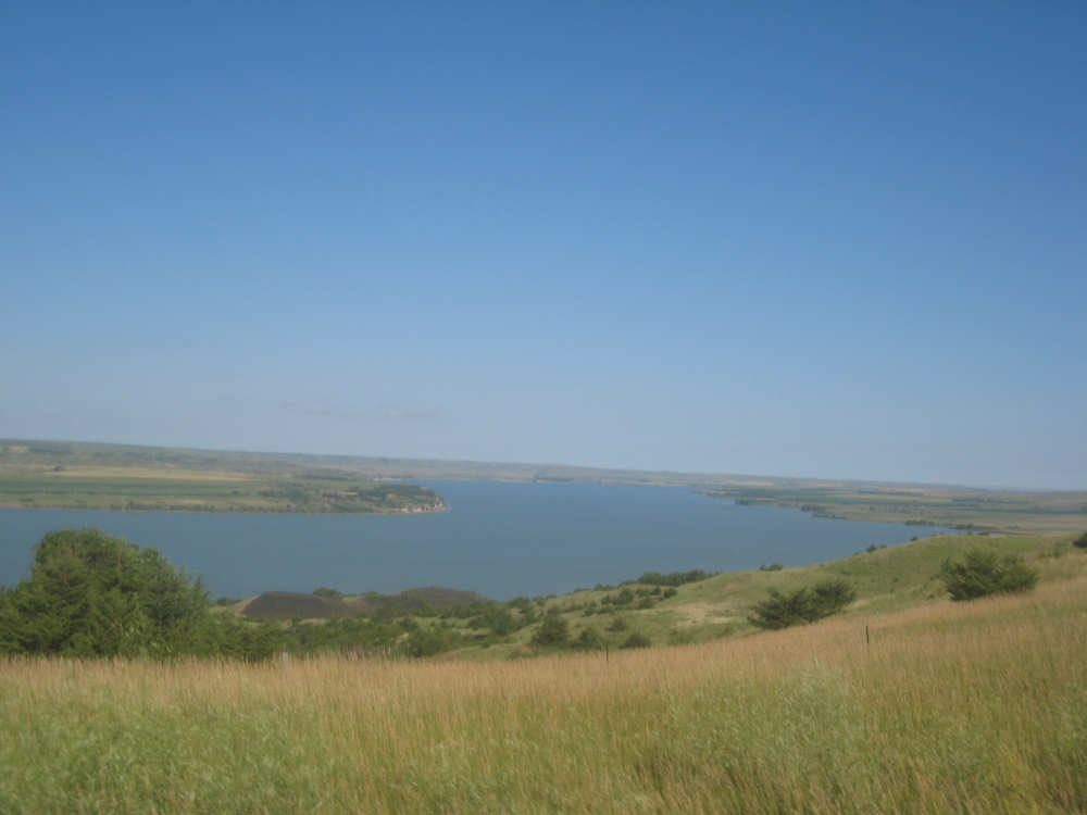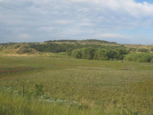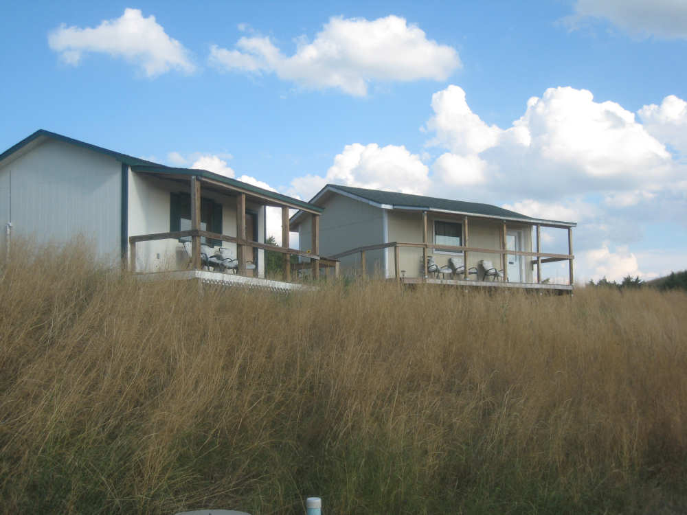 Wednesday, August 06, 2008 It stormed again last night and this morning was cloudy, so we left Fort Thompson expecting to get rained on again. However, it quickly cleared up and became hot and sunny. We started out at 7:45 and followed Indian Road 4 right along the Missouri River for about 8 miles. The hills along the river were very pretty; the terrain was mostly gentle hills with grasses for pasture and some small farms. The Indian Road was in bad repair most of the way, but it was flat. We then turned onto State Road 50, which we followed for most of the rest of the day. We soon had 2 long, steep hills to climb, but it was still early in the day so it wasn't too hot and the hills around us were spectacular. We came into Chamberlain, the only town of the day, after a steep descent from the second hill. Chamberlain is the county seat of Brule County and is located right on the river. There were 2 interesting bridges across the river in town, and we saw two kids playing on a beach on the river as we went through town. There was also a historic marker, nearly unintelligible, but with some interesting information. We stopped at a convenience store to have a snack and top up our camelbaks, since this would be our only chance to do so all day. We had only come 22 miles out of our 70 mile day, so we had to resort to the warm water in our bottles before the day was over. While we were at the store, a guy came over and said he had seen us on the road yesterday, chugging up a hill, and again today, going up the hill into Chamberlain. He said he really sympathized with us because he sometimes biked between Chamberlain & Fort Thompson himself. After Chamberlain, we veered away from the river until the end of the day. We were back in the immense croplands now and we were still climbing, only more gradually now and over a longer distance. A few clouds had developed so we had occasional cloud cover and the wind was a little stronger at times, so it cooled us off some, but it was basically pretty hot most of the afternoon. The road was pretty smooth except for long cracks that went all the way across the road and shoulder at frequent intervals. They were sometimes deep enough to be quite jarring on us and the bike, which was unpleasant. Other than that, the road surface was pretty smooth. South Dakota uses the same surface technique that Texas does - chip seal, I think they call it, where they put down a layer of tar and then spread gravel over it. This made the Texas roads awfully rough, but South Dakota must use smaller gravel because they are generally much smoother, even when freshly done. Highlights from today, besides the beautiful hills before Chamberlain, were: a huge lake, called Red Lake that we passed shortly after Chamberlain; a short range of hills, called Bijoux Hills, that we went through and then behind; and another large piece of farm equipment that passed us on the road. The farm equipment seemed to be some sort of harvester and when we first saw it coming toward us, it was taking up the entire road. We stopped to let it pass and to take pictures of it, but we didn't really need to. As he approached, the driver moved over to the side of the road and it seemed that he moved the blades over as well. They originally stuck out evenly on both sides of the vehicle (they were what was taking up the whole width of the road), but as he passed us, we saw that the blades were farther over to the opposite side of the road. After he passed, they had moved back to the center. We had reached the peak of our long climb after we passed the Bijoux Hills, so our pace picked up a little. It was still a lot of up and down, though, and we were getting tired and hot, but the end was now less than 20 miles away so we pushed ourselves to get there as soon as we could. There wasn't much of interest until we made our final turn toward the river, onto SR 44. The last downhill to the river was really pretty, although we were a little daunted to see the road we would start off on tomorrow morning, right across the river - it looked pretty long and steep, but we'll worry about that tomorrow. We found the marina where we would stay in a little cabin overlooking the river. We checked in at 5:30 and quickly decided we would have dinner before doing anything else. There were 2 women running the place, a server and a cook who was the sister of the owner. The owner was away at Sturgis, South Dakota, catering an affair at the huge motorcycle rally that was going on there. We took some pictures of the place after dinner and the owner's sister was kind enough to offer to take a picture of us in front of the marina. Then we went up to our cabin to unload, shower and work on the website. Since our cellphone connection doesn't work here, we had to use the marina's internet access which only works in the restaurant so we are limited by the restaurant's hours. We ended the day at a little over 70 miles in under 7-1/2 bike hours, a better average than we expected. Tomorrow, at least, will be a short day, but the day after will be even longer than today. Still, the next day will be a rest day again. |
