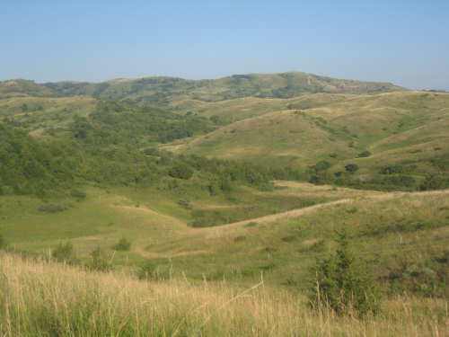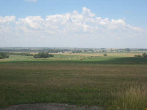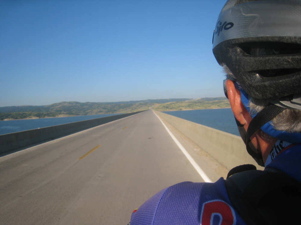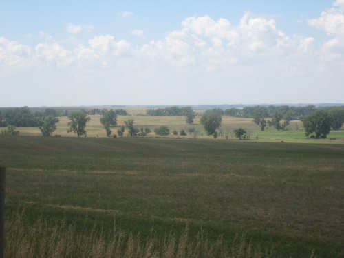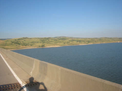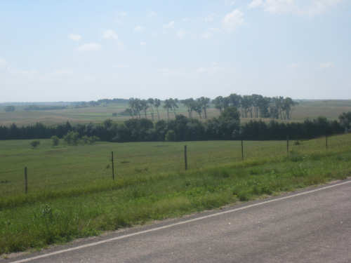 Thursday, August 07, 2008 A much shorter day today, but bright and sunny like yesterday. We started out at 8:10, just because our restaurant opened at 7 and we weren't in a big hurry. Our first order of business was croosing the Missouri and going up the hill on the other side. It was long (2-1/2 miles) and steep (about 5%), just as we expected. We probably shed a pound of sweat each, going up. But the good news was that we got the worst hill of the day over with right at the beginning. There were certainly more hills, but none as long or as steep. We entered Gregory County on the other side of the river and quickly got the impression that this county was serious about its rules. We first saw a sign the the county was zoned and building permits were required for any building. Then we saw a sign about having all your livestock's brands inspected before leaving the brand inspection area. We must have turned off before we got to the inspection area though, because we didn't see one. We then meandered along some county roads, enjoying the vistas and farmlands. We came to the town of Burke, about halfway through today's route and managed to find a grocery store where we stocked up on bananas and Gatorade for tomorrow. We asked about a restaurant and were directed to one a couple of doors down that served very good burgers. While we were still on the street, a couple from Chicago who were visiting there stopped to ask about our trip. After lunch in Burke, we got onto SR 18 where we stayed for the rest of the day to Bonesteel. 18 was in remarkably good shape and as we rode, we started to notice that the cracks seemed to have been recently sealed and were covered with strips of what seemed to be toilet paper, presumably to keep the tar from being stuck to the tires of all the passing cars. As we rode, the tar in the cracks seemed to get fresher and fresher until, finally, we saw Road Work signs ahead. We eventually came upon a crew of guys who were blowing debris out of the road cracks, filling them with tar, and then rolling toilet paper over them, using something that looked like a long-handled paint-roller with a roll of toilet paper at the end of it. We stopped and asked one of the flagmen whether it really was toilet paper (I couldn't believe it) and he verified that it was, in fact, Charmin one-ply and they used it because it was the only brand that completely disintegrated in the rain so it didn't litter the highway (take note, all you readers with septic systems!). We were very impressed with the operation and wished that they had been working on SR 50 yesterday. It was a pretty hot day, going up to 93 by the end of our ride. We were lucky to have more cloud cover in the afternoon - it felt quite pleasant when we were under a cloud. We didn't have much wind today, like yesterday, which was good becuase it would have been a headwind. However, we did have a little breeze now and then which helped a little with the heat as well. We arrived at our motel in Bonesteel at 3 pm, having done 45-1/4 miles in a little under 5 hours of bike time. We were lucky to have internet access, although our cellphones don't work. We're hoping tomorrow's stop will have good reception, especially since we'll be spending a rest day there. |