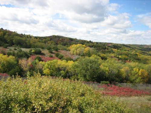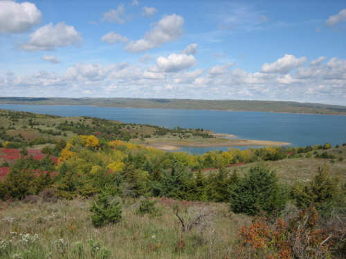 Another dull rest day, but we have a real treat for you, courtesy of our friend, Terry from Tempe. He sent us some photos of the Fort Randall Dam area that he took while on vacation in late September a couple of years ago. The fall colors are awesome and he also got some pictures of the old chapel, the one building from the old fort that still has some walls standing. Enjoy!