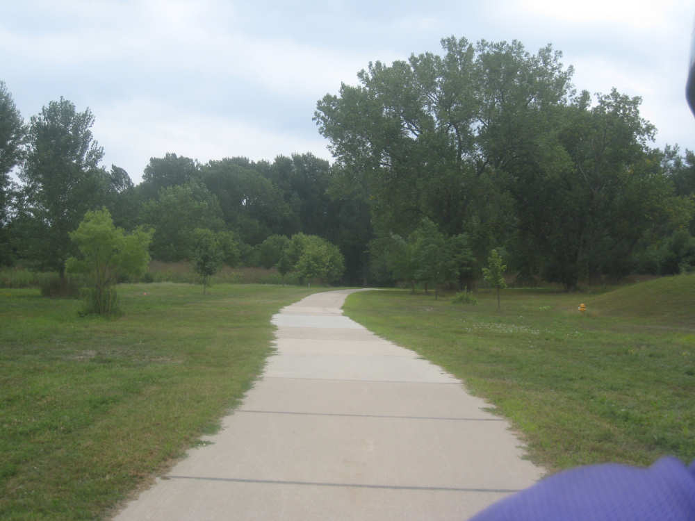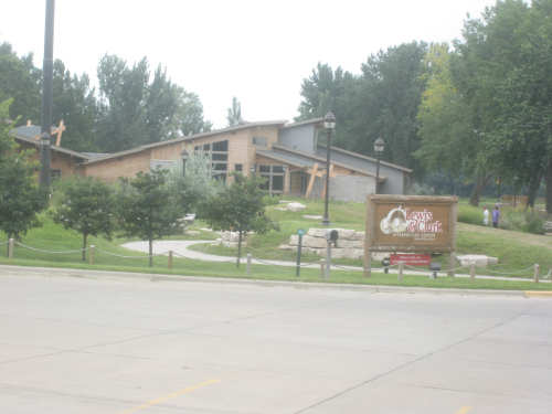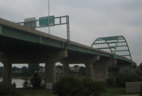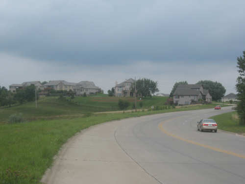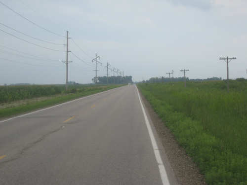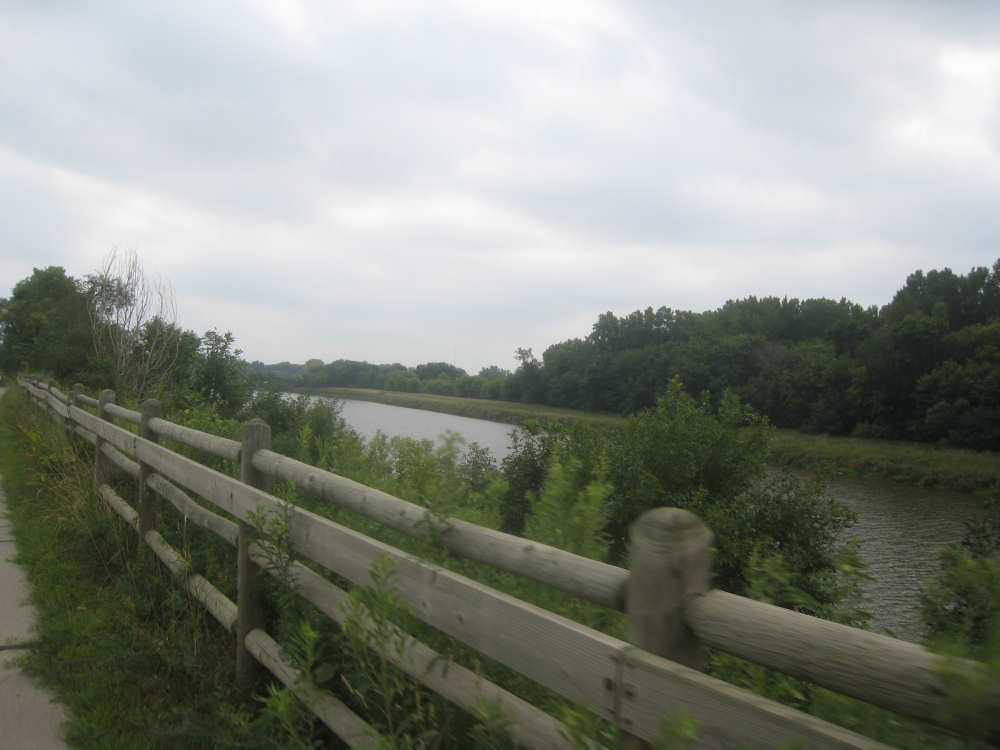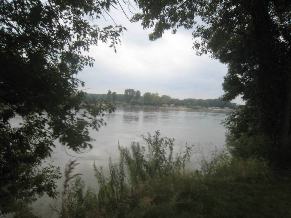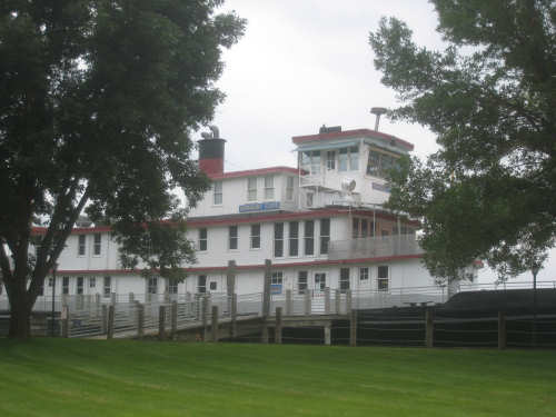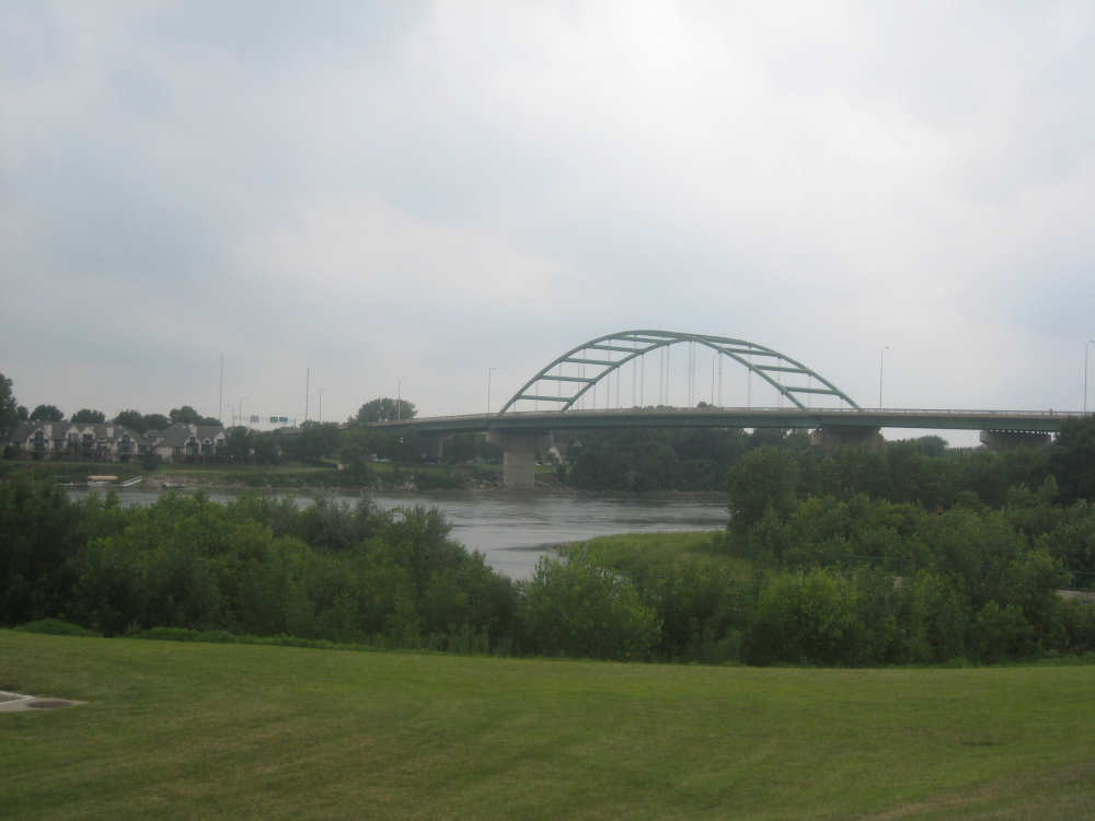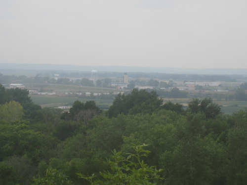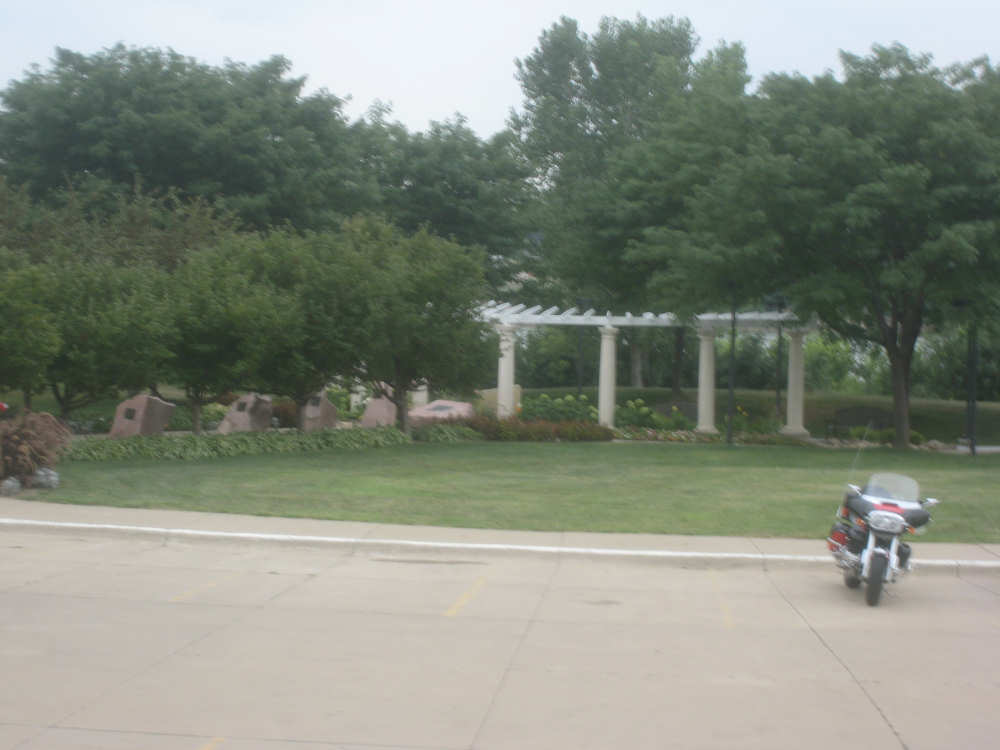 Monday, August 11, 2008 Another day of headwinds, this time already pretty strong right from the start. And today was even flatter than yesterday, so it should have been a thoroughly enjoyable ride, but instead we spent it pushing against the wind. Aggravating. We started off at 7:30 under cloudy skies, our stuff all wrapped up since we had a good chance of rain this morning. It didn't rain and it looked like it was clearing up by noon, but it got cloudy again just as we were getting close to our motel for the night. Sure enough, we made the last turn with one mile to go and we ran smack into the rain. We pulled off into a gas station to take shelter under its canopy and saw our motel right across the street! We waited for the rain to ease up and then scooted across the street just as a busload of elderly folks arrived and went into the motel too. We managed to slip in before they got organized so we got settled in pretty quickly. We had a number of interesting sights today. We found out that the University of South Dakota is in Vermillion and went by its campus on our way out this morning. Our morning road was a quiet county road down the southeastern tip of South Dakota, sandwiched in between Iowa and Nebraska. We were able to see the Nebraska hills to our right, across the Missouri River, and the Iowa hills ahead to our left, across the Big Sioux River. We went through a number of small towns, Burbank, Elk Point, Jefferson, and North Sioux City; the first ones were fairly rural but they became more urban as we got closer to Iowa. We rode next to a train track most of the morning and saw what looked like a truck pulling a train on the tracks near North Sioux City. It turned out it was being pushed by 2 train engines at the back, but its load was 2 train tracks that were each about a half-mile long! The gizmo at the front behind the truck cab was designed to grab one end of the track to unload it. Very interesting way to haul track. A short while later, we saw a familiar logo painted on a group of buildings - this was Gateway Business Park, the headquarters for Gateway Computers. We reached the Big Sioux River which we would cross into Iowa around lunch time. We stopped for lunch at a casino that promised burgers. Outside the casino was a plaque saying we were entering/leaving South Dakota (depending on which side you read). I thought it had very nice words to say about Iowa. It's a good thing we took that picture because it was the only welcome we had to Iowa, our 22nd state. No welcome sign greeted us on the bridge or after it. We first rode through a pleasant residential area of Sioux City, followed by a bike trail through Riverside Park, a nice large park along the Big Sioux and Missouri Rivers. The Big Sioux converges with the Missouri along this stretch. The bike trail and park were lovely and covered about 4 miles along the rivers. We continued on a park road open to traffic which went by an Iowa welcome center, a river museum, a Lewis & Clark Interpretive Center and a memorial to a plane that crashed nearby in 1989. It was a United Flight 232 going from Denver to Chicago when it had some mechanical failure. Apparently the pilots did an incredible job of landing the plane in almost impossible conditions, which resulted in a number of the passengers and crew surviving. After the park we climbed into a section of the Loess Hills, These hills line the Missouri Valley in Iowa and were created during glacier movements in an ice age. They are apparently composed of fine-grained loam and they cover about 200 miles from just north of Sioux City to the northwest corner of Missouri. We ran into more road construction here and detoured through another nice residential section of Sioux City before coming back down to a flat area again. We continued on a flat, straight county road all the way to Sloan, where our motel was. The road had no shoulder and a fair bit of traffic, but the Iowa drivers were immensely courteous, slowing down behind us when they couldn't pass easily. When we stopped for a break, a gentleman coming out of a side road asked if we were ok, then asked about where we were staying and gave us all sorts of information about the area for a few minutes before pulling off. We arrived at our motel at 4:15, having gone almost 62 miles in nearly 6-1/2 bike hours, a pitiful average for such a flat day. We included a couple of pictures taken by our friendly couple from Chicago whom we met in Burke, SD. As promised, they emailed us the 2 pictures they took of us on our bike, one facing the sun and the other loooking the other way. |