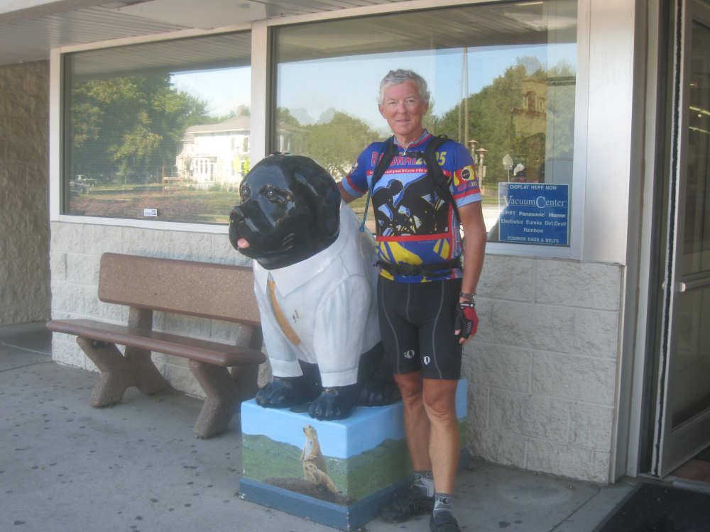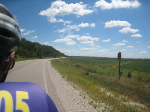Tomorrow we'll have a tougher time of it, about 73 miles with fewer towns and more climbs. We will also enter Nebraska, though, our 23rd state. By the way, one of our favorite readers, Dwight from Cherry Hill, NJ, solved a mystery we had in Elk Point, Iowa yesterday. The 100F sign we saw on the historic building there was actually IOOF - the Independent Order of Odd Fellows, an international organization (www.ioof.org). Thanks, Dwight! Another by the way - the Iowans are very proud of their Olympian gymnast, Shawn Johnson.