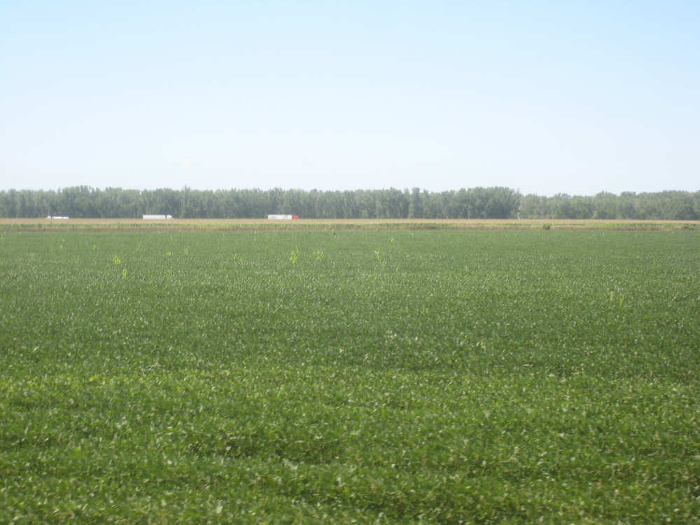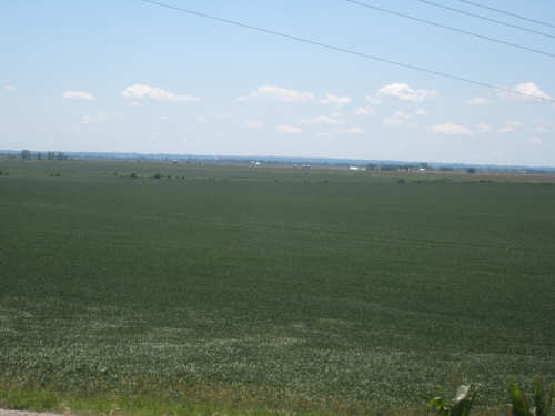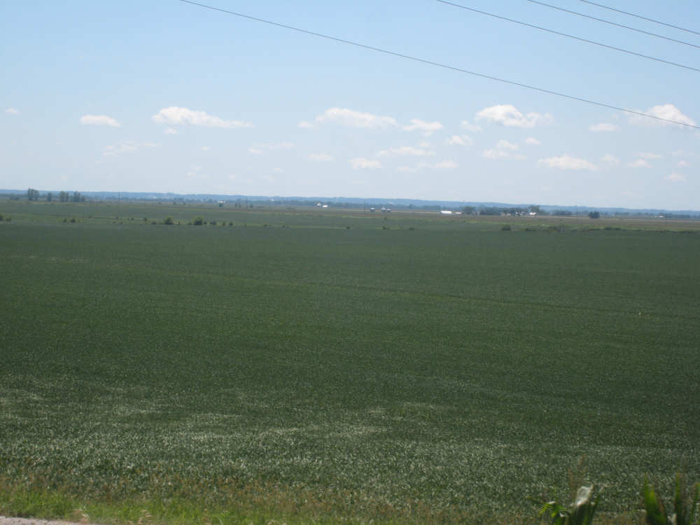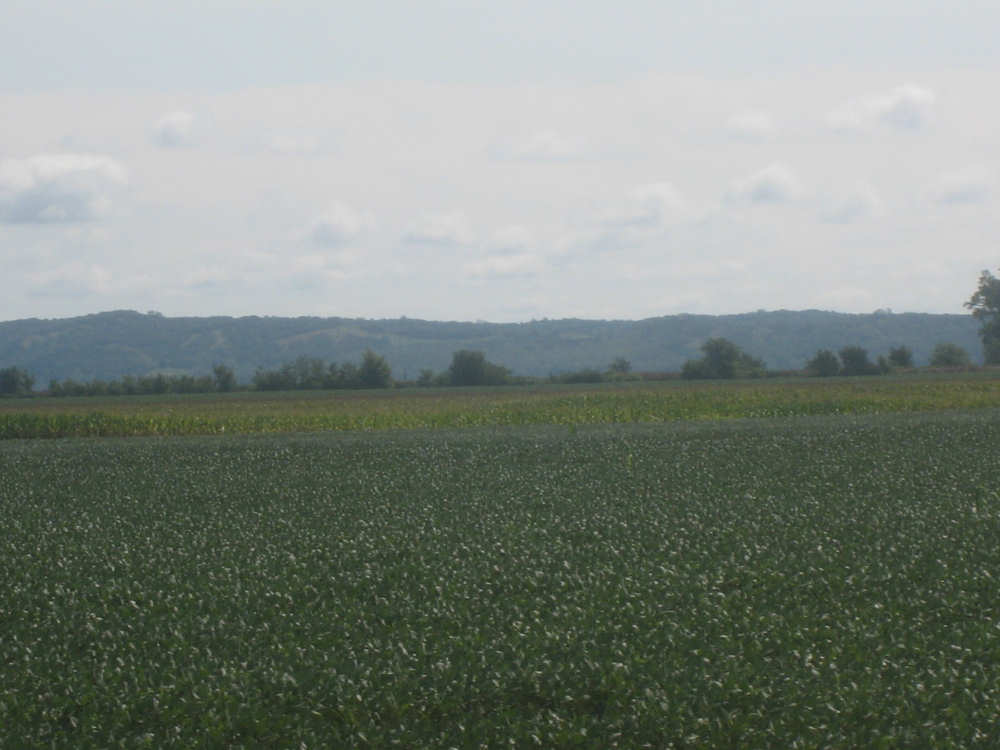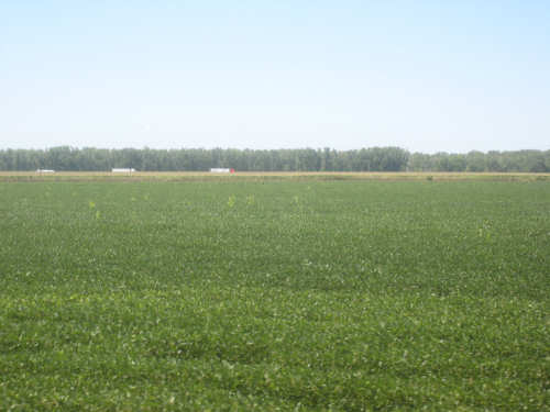 Trees along the Missouri with the I-29 trucks and a big soybean field