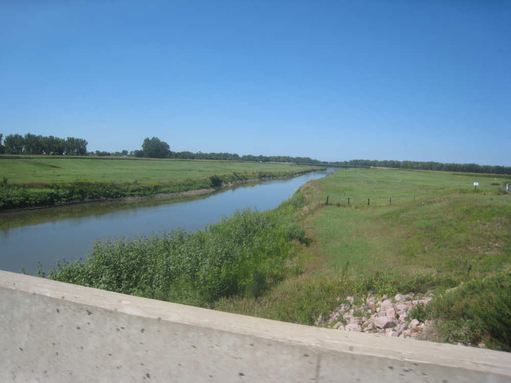 One of several creeks or irrigation ditches off the Missouri