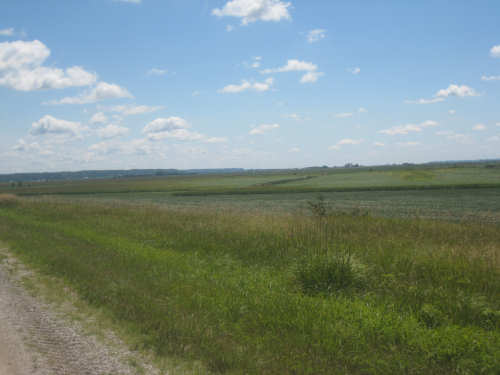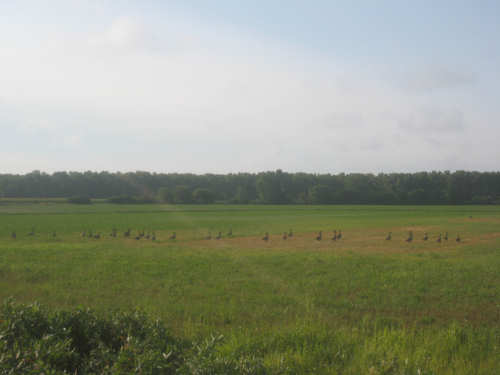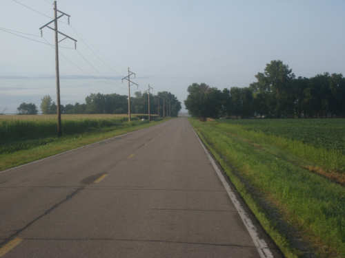 MUCH better today - it was still very flat and the wind was calmer as well as changing into a tailwind early in the morning. We left the motel at 7:30, noting that it must have rained more overnight, given the number of puddles around. It was still cloudy when we left but cleared up quickly and turned out to be a gorgeous day. It was a little cooler too so it was a thoroughly pleasant day. The riding was pleasant, too, and our average reflected it - over 2 mph faster today with less effort. We went a mile farther (a little under 63 miles) in an hour less bike time (a little under 5-1/2 hours) and got to our motel an hour and a half earlier (2:45), much less worn out.