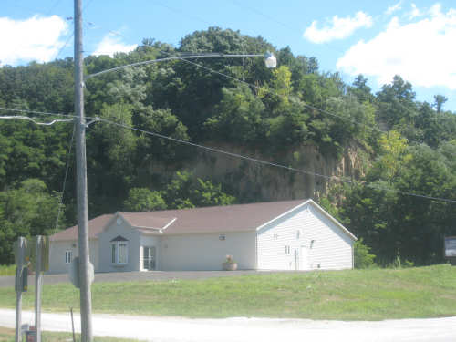 Coming into Missouri Valley, a cliff seems to loom over a church