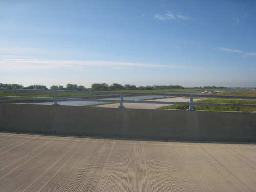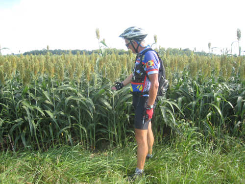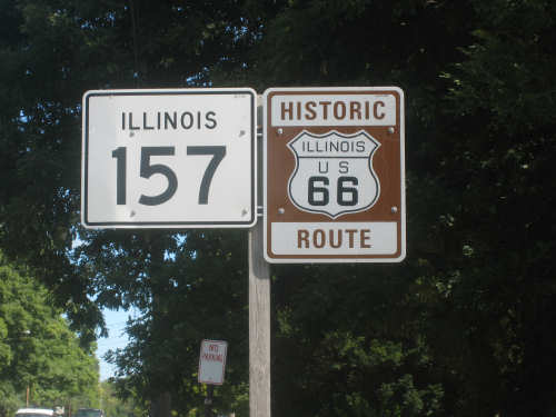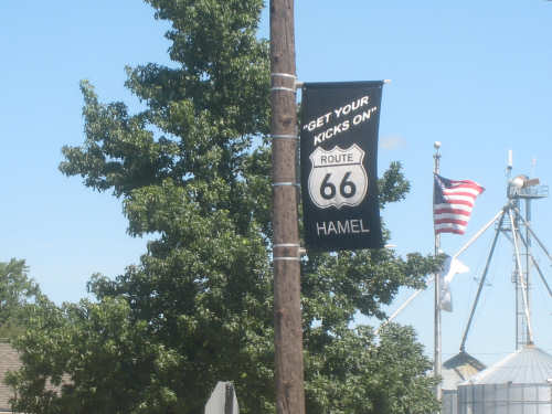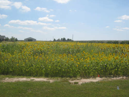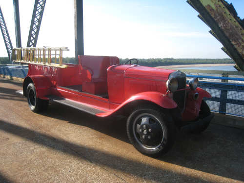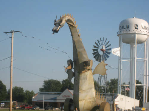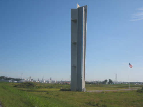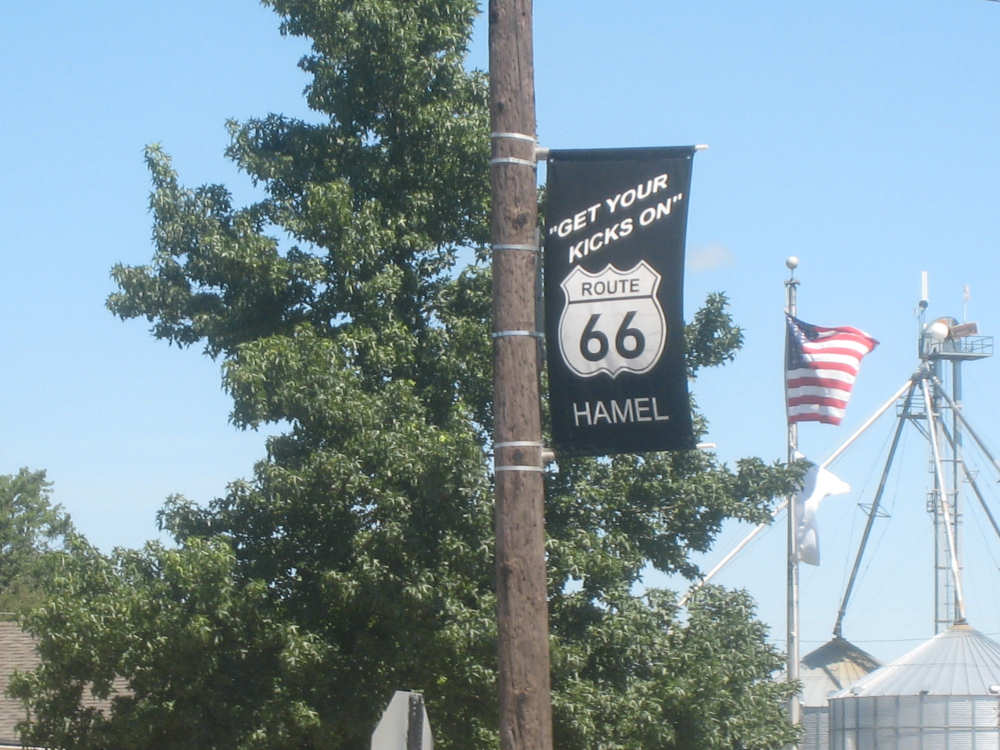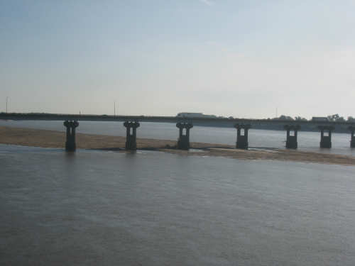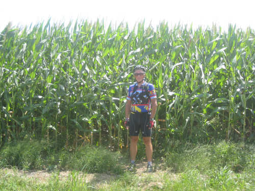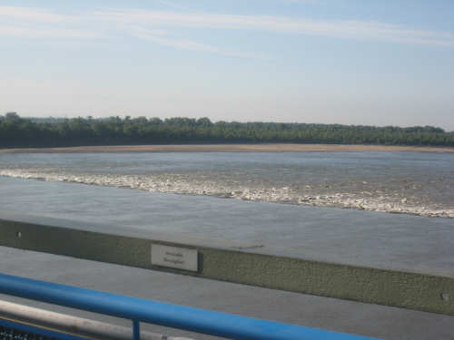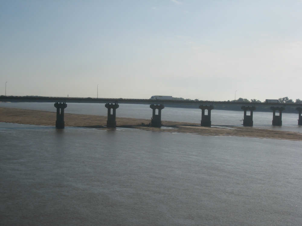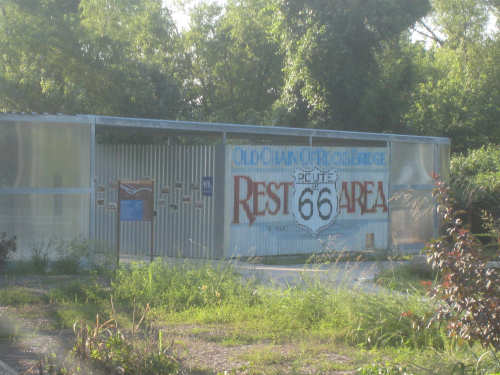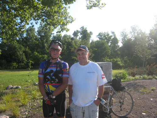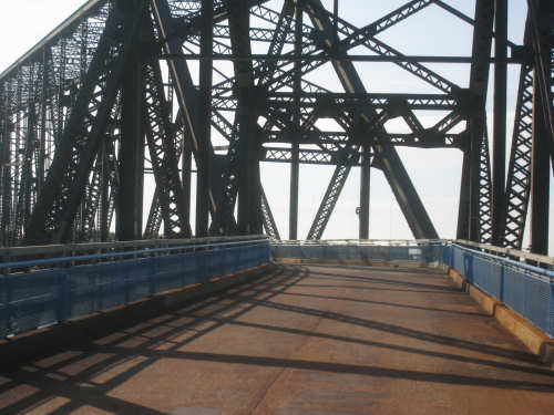 Monday, August 25, 2008 Beautiful day today - the humidity was much lower and it was a little cooler than it's been. The wind was stronger than we expected, and was a headwind, naturally, so it slowed us down some, but at least it was much less hilly than Missouri had been. We started out with a short ride to the Chain of Rocks Bridge, a pedestrian/bike bridge over the Mississippi River. We were very lucky to run into another bicyclist going there as well. This was Mike, who makes this trip every day on his way to work. He asked us about our trip as we were biking over to the bridge and then led us to its entrance. When we got to the bridge, we found out it was closed. The sign by the bridge clearly stated it was open 1/2 hour before sunrise, and it was definitely well after sunrise at that point. Mike wasn't worried, though, and convinced us that it would not be a long wait. He also said that the alternative, going on the nearby 270 bridge, was "suicidal" - lots of traffic, especially trucks, and no shoulder. There was another bridge farther north, as well, but it didn't have the charm of this bridge. The Chain of Rocks Bridge is a restored Route 66 bridge and had several relics from that era, as well as a 1929 restored fire truck. The Chain of Rocks refers to a string of rocks across the Mississippi, referred to in the Lewis & Clark journals, that blocks navigation on the river. There is a canal alongside the river that boats and barges can use to get by this natural obstruction. While we waited for someone to come unlock the gate across the bridge, Mike whiled away the time telling us about the bridge and the Route 66 mementoes, and explaining how to get on the trail at the other end of the bridge. If he hadn't been there, we wouldn't have known that we should wait and might have taken our chances on 270. Someone did finally come and open the gate and the bridge was delightful. It was especially nice that we could stop and take pictures without worrying about traffic. In the middle of the bridge, we crossed into Illinois, our 26th state! We didn't have a welcome sign, but the boundary was marked by old Route 66 signs, one from Missouri, and one from Illinois. At the end of the bridge, we were on Choteau Island and crossed the canal on another bridge, then went on a bike trail alongside the canal to get to the Lewis & Clark Park. Mike had zipped ahead by now so as not to be late for work so we were on our own now. We got to the end of the canal, where it rejoined the Mississippi, and we thought the park was just a little ways ahead so we continued along the trail. We saw what we thought was the Lewis & Clark monument, a beautiful structure that looked like one solid building when we first saw it, but turned out to be 2 towers joined together by little bridges when we saw it from the side. It was out in the middle of a field, though, apparently not complete yet, or at least not open. We soon saw from our GPS that we had gone past the access to the river where we had hoped to see the confluence of the Missouri and the Mississippi, but we hadn't seen anyway to get to the river since we left the canal. We retraced our steps until we were almost back to the canal when we saw another guy on a bike who confirmed that the only river access he knew of was at the Chain of Rocks bridge and then about 4-5 miles north of there. That was very disappointing and we went on our way, having already taken much more time than we expected there. It occurred to us later that we actually had seen the confluence right where the canal joined the Mississippi, and checking our maps tonight confirmed that. It certainly wasn't as impressive as we had imagined, but that point was the last time we saw the two mighty rivers. We passed through a few towns on the rest of today's journey, as well as several crop fields, mostly corn and soybeans, as usual. Our first town was Edwardsville, the county seat of Madison County and home of a huge Southern Illinois University campus. We passed the campus four miles before we came to the town. The town was very elegant and quaint, clearly a university town in its abundance of eating places and quirky shops. We had lunch at a nice place across from the county courthouse and administration building, both very impressive structures. Our next town was Hamel, a much smaller town, but with the distinction of being on the legendary Route 66, something they touted at every turn. We went through another small town, Alhambra, and then skirted the edge of a larger town, Greenville. Tree farms and nurseries seemed to be a thriving business along the route. We spent most of the day on two-lane roads, mostly without shoulders but in good repair. Some of the roads had a fair bit of traffic, but the Illinois drivers have been just as courteous as we've experienced in each other state, giving us a wide berth as they passed and slowing down behind us when it wasn't safe to pass. We ended the day on Rt. 40, parallel and close to I-70, which was a noisy road with a lot of trucks on it. This meant that most of the traffic was on I-70, which was a very good thing for us. It was a long day - we started at 8 this morning and arrived at our motel in Vandalia at 6. We did a little over 73 miles in 7 hours and 20 minutes, not bad considering the headwind. Our motel had a restaurant right next door, which makes life so much easier for us - and they open at 6 for breakfast! Tomorrow's another long day and we'll have another east wind, but it will also be fairly flat. |