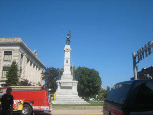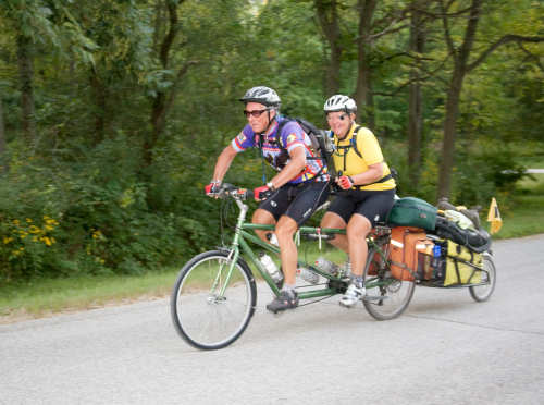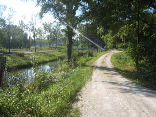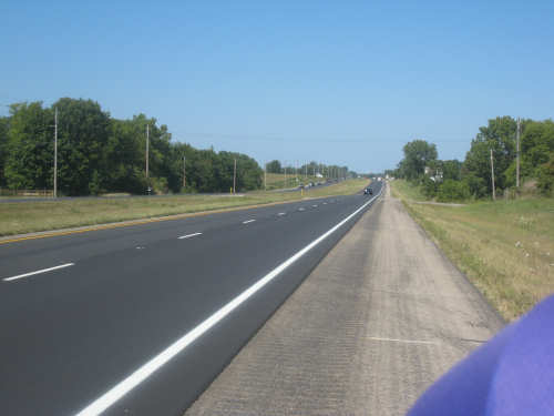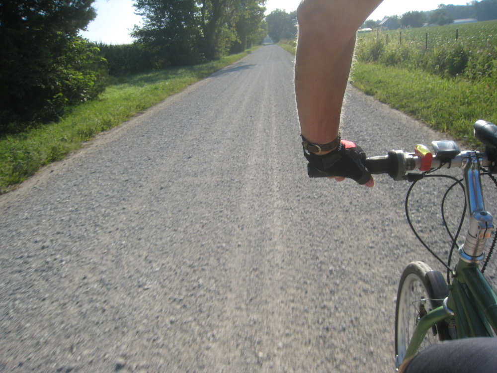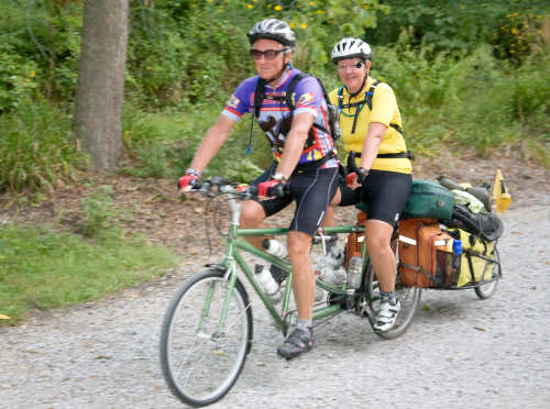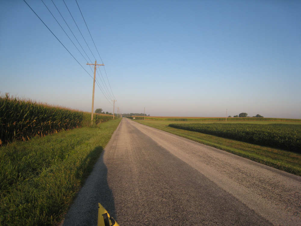 Sunday, August 31, 2008 Back on the road again! David took some pictures of us, on our rest day and as we were taking off in the morning. He told us there was a 'little hill' as we left their driveway and he slipped ahead of us to get a picture of us going up it. You can tell Pat was working hard whereas I was just enjoying the ride, as usual. Poor Pat. It was a lot less hilly after that, but we did have a series of dips and rises. We also had about 3 miles of gravel road at one point and just at the end of the day we had a few hills. Other than that, it was fairly flat and reasonably well paved. The day started out quite chilly (fall is coming!) but it warmed up quickly and got into the high 80's. It was fairly humid, too, probably because of Hurricane Gustav blowing warm Gulf Coast air up this way. The wind was mostly calm, with a stronger headwind later in the afternoon. We left David & Janet's very reluctantly at 7:30 this morning, after another huge meal, and arrived at our motel in Peru, IN at 3:15, having gone almost 59-1/2 miles in 5 hours and 50 minutes of bike time. We were mostly on county roads all day, with a short stretch on a newly-paved divided highway, US 31. Janet had told us this was the north-south highway up through the center of Indiana. We went through a few small towns today and one larger one, Delphi, where we ate lunch. The first town was near the Tippecanoe battleground (where William Henry Harrison's battle with the Tippecanoe Indians was fought) and had the unfortunate name of Battle Ground. It was a picturesque little town, though, with historic buildings and quaint houses. We crossed the Tippecanoe River partway between Battle Ground and Delphi. The Wabash River and the Wabash-Erie Canal crossed our road right before we entered Delphi. The canal was once a major transportation conduit between New York and Chicago. We stopped in Delphi for lunch, 25 miles out, even though it was early, since we didn't think we'd find much on the road later and we were right. We went through 3 more small towns - Rockfield, Burrows, and Onward - but didn't see any gas stations or stores. We had topped up our camelbaks in Delphi but were running out by the end of the day. We saw a number of bikes today - it being a warm, sunny Sunday - including a group of cyclists out for a ride. They all greeted us as they passed (easily) and one of them hung back to chat with us about our trip. We also saw one touring bike as we were eating lunch in Delphi, but we had stopped in the Arby's and he went across the street to the McDonald's. Even though we kept an eye out for him, we didn't see him after that. We have one more night in Indiana tomorrow, and then it's on to Ohio. It will be interesting traveling on Labor Day - we're not sure what we'll run into (parades, other festivities?), but we hope there will be some food places open. We may have to crash a picnic or two! |