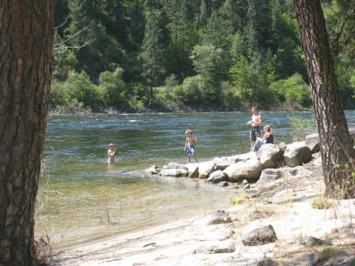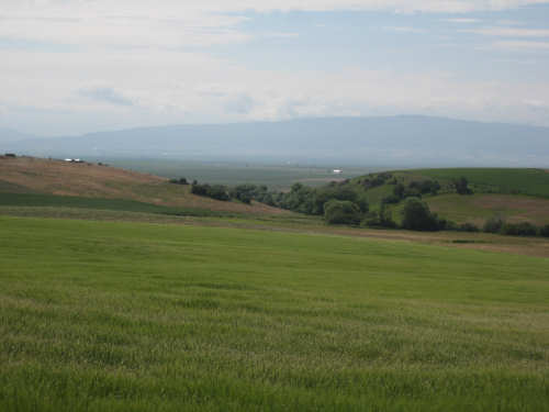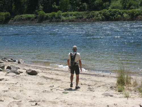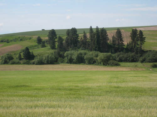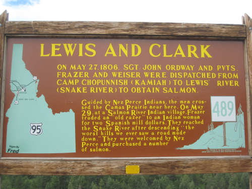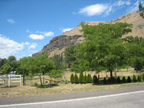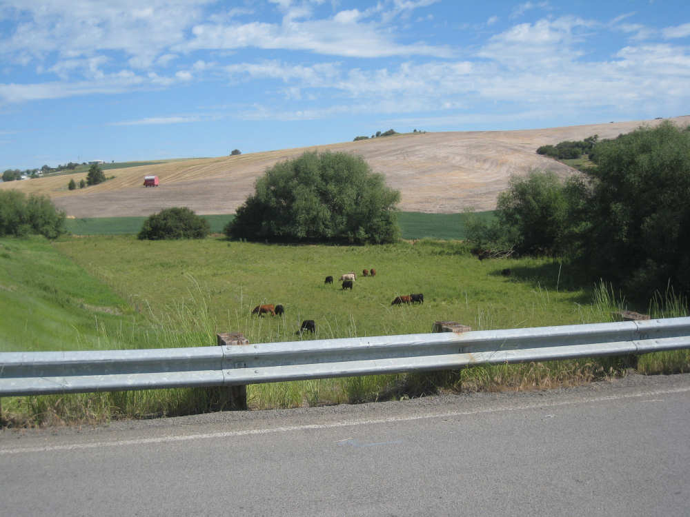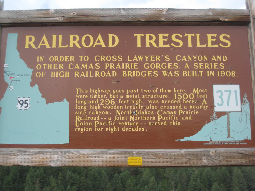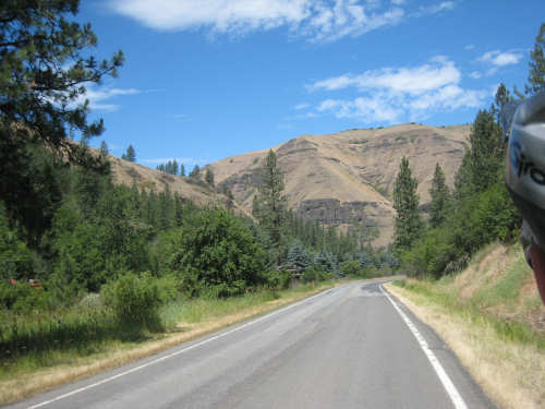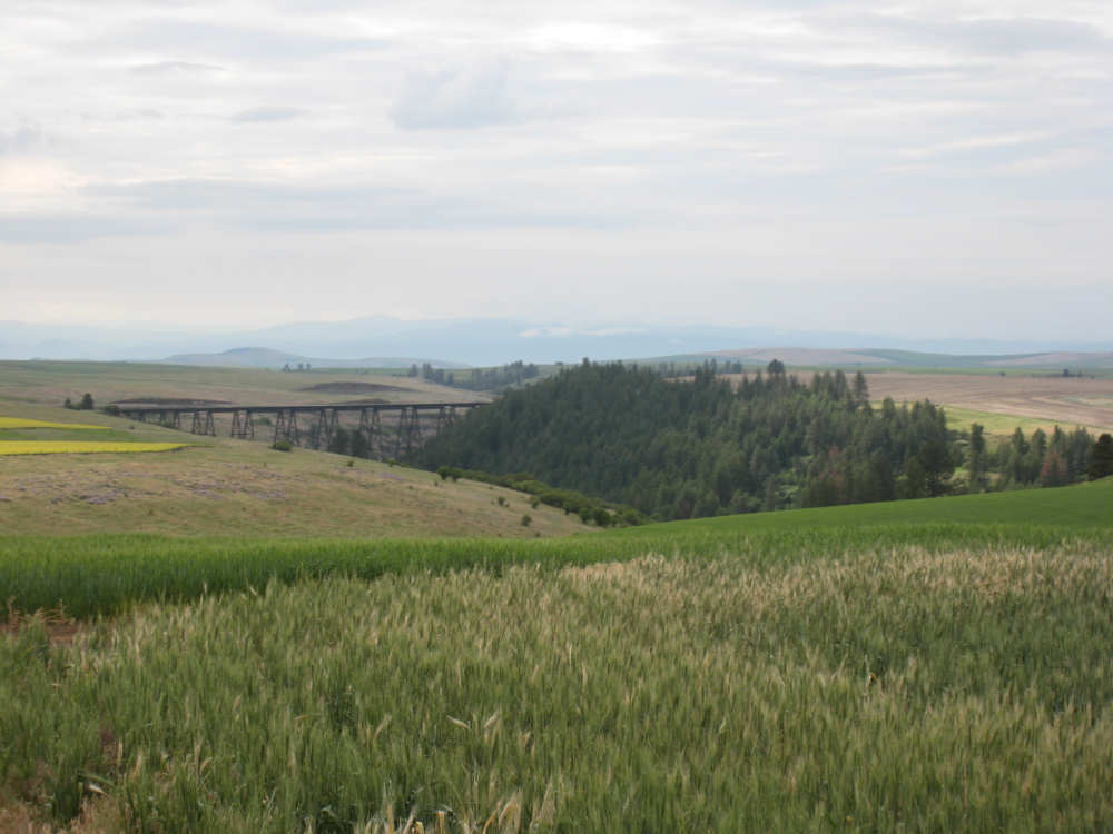 Saturday, July 05, 2008 We had a lovely night at the bed & breakfast, and a wonderful breakfast this morning. LaVina is a great story teller and has lived in the area for some 60 years, so she had all kinds of information on the history of the place and her house is full of antiques from generations of their families. Her husband's ancestors were one of the early pioneers who settled the region. She told us one story of their salvaging an old barn and transporting it to their place to use as a guest house. They didn't have any trouble until they tried to get under a railroad trestle a few miles from their house (see picture below). Luckily, a crew was there grading the road at the time and they just graded it a little deeper under the trestle so they could get through! We lingered over breakfast and finally got going around 8 am. We had a short day today with not much climb, so we figured we could be indulgent. We ended up going almost 45 miles in under 4-1/2 bike hours, arriving at our motel at 2:30, so it worked out. We left LaVina's and headed back out the hard-packed gravel road their house is on to get back to Rt. 95. The road was very straight and had a lot of rolling hills, the kind we would usually fly down and try to coast up. Given the gravel, though, we had to be very careful on the downhills and even so, we did some slipping and sliding on one of them, but we made out ok. Shortly after we went under the trestle she had told us about, after 3 miles of gravel road, we were back on 95. We continued to ride past rolling, forested hills and farm fields with green or yellow (canola) crops and beautiful vistas. The road we were on was rolling as well, nothing too steep or long, though. We continued to see many historic markers today and took pictures of most of them. We eventually turned off 95 onto a series of narrower roads with not much shoulder but also not much traffic. These roads went through farm fields mostly with some great vistas and a geological marker for a change. They also had a lot of rolling hills, most of them short enough to be fun. We were struck by what good condition nearly all the farm buildings were in, not like the run-down, falling-apart buildings on a lot of farms in the South. They usually looked brand-new and spotless. We came upon a very small town called Greencreek which was also very new and clean looking, despite the fact that it was established in 1895, according to their town welcome sign. Very impressive. By the time we reached the bottom of our last and longest hill, we were starting to get tired. We stopped to eat the oatmeal cookies LaVina had packed for us this morning and rest a bit. When we got to the top, the view was spectacular - the whole valley was laid out before us with more, bigger hills in the distance. We went downhill most of the rest of the day, with a fairly steep 8-mile stretch from that point. We went from our 4100-foot plateau at Craigmont down to about 1500 feet, mostly in those 8 miles. Towards the end, when it was less steep, we passed several large hills which may have been the Kamiah buttes, mentioned in the geological marker. Very picturesque. We reached Kamiah and stopped for lunch and then turned back on Rt. 12 and along the Clearwater River again (remember, we rode along it for several miles yesterday morning out of Lewiston). The river was as beautiful and fast-moving as it was further down-river yesterday. We passed a little beach and Pat screeched to a halt to go down to the river and test the waters. He found them pretty cool and refreshing. A group of kids with their parents were also enjoying the river nearby. We reached the town of Kooskia shortly afterwards and pulled into our motel. After a nice cool morning, it had gotten pretty hot again, so we were glad to have ended early. Tomorrow will be another long climbing day, ending in a campground. We don't expect to have cellphone or internet availability so the day's page will probably not be up until the day after. |