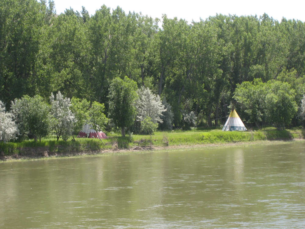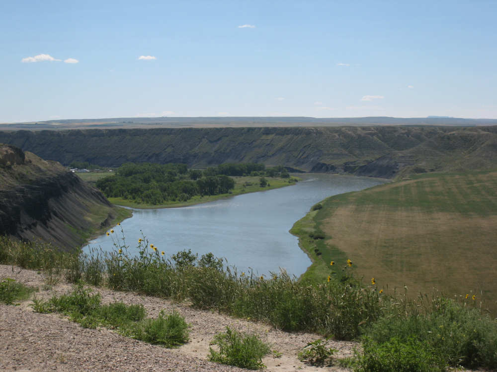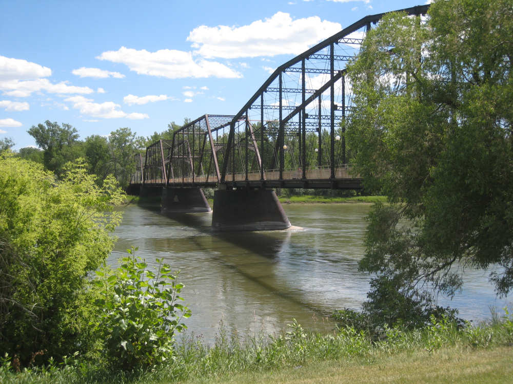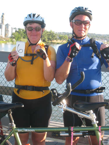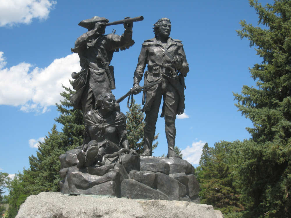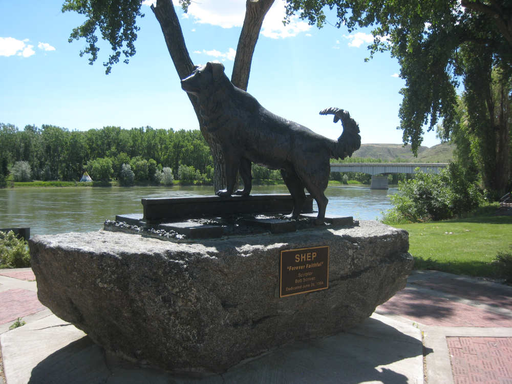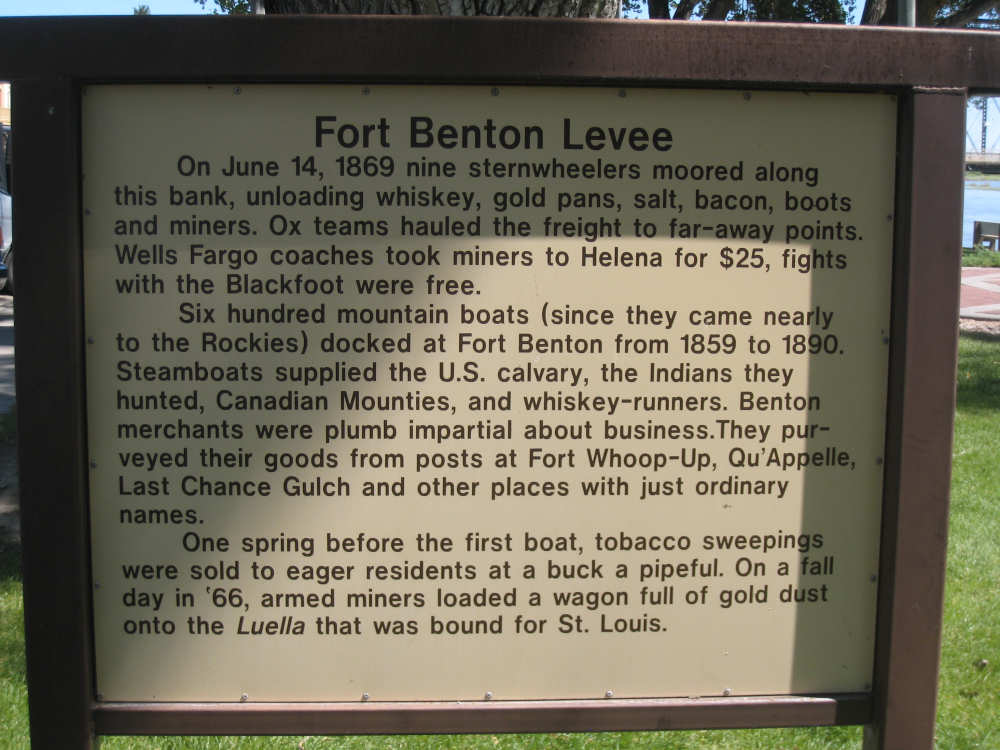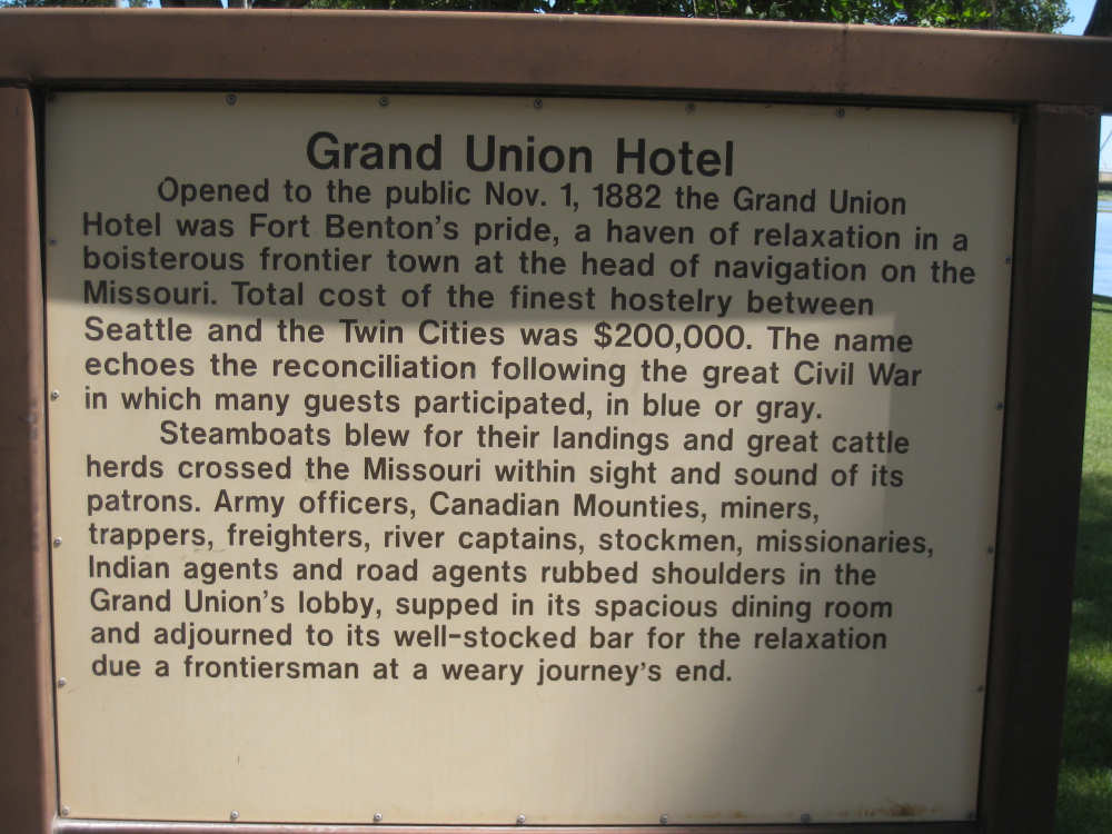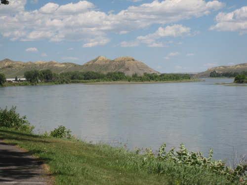 Monday, July 14, 2008 Another pretty easy day, mostly downhill except for a couple of hills - one of which was the climb out of Great Falls, shades of the L&C Portage! The temperature was pleasantly cool again this morning, in the 50's I think, and we had a great tail wind again as well. We set out across the Missouri River after breakfast at a nearby restaurant (they fixed us some sandwiches to take along as well, since we didn't have any pass-through towns today. Just as we got to the bridge over the river, we passed a lady walking over the bridge and we asked her if she would take our picture, which she kindly did. So we got our 6000 mile photo with the Missouri behind us. After we climbed the hill out of Great Falls, we were on a plateau for most of the day, descending very, very gradually - from about 3500 to 3000 by the end of the day. We were on Hwy. 87 nearly all day, and it was straight as an arrow for a good part of the day, so we could see it stretching out ahead of us. There were some rolling hills at the beginning which slowed us down a bit. One downside of our early morning ride was that we found a lot of hungry mosquitoes. They didn't bother us when we were zipping along donwhill, but when we slowed on the uphills, they came in for a bite. We tried to stop for a rest at about 20 miles and they were so annoying we had to go on. Luckily, their numbers diminished after that and we didn't have any further trouble from them a little while later. The terrain during most of the day was mostly farm fields as far as we could see on either side, growing either hay or some other kind of grain. We saw a few clusters of houses like little subdivisions out in the middle of nowhere, and a few single farm houses, but most of them were way off on the horizon or completely out of sight. Today was a big historical marker day. When we stopped at the little town of Carter to eat our sandwiches, we found two Lewis & Clark plaques in a field next to a bar/restaurant that had been closed for a year or so. We didn't see anything else in Carter except for grain silos, some houses, and a sign for a quiliting shop. Then as we approached the town of Fort Benton, a very historic town itself, we found a viewing area where we could see the Missouri River and a bit of the town below us. It made our position, being up on a plateau, very clear; we dropped another 200-300 feet very quickly going into the town. There were also a half-dozen historic markers up there in the viewing area, most of which were about the town and the area nearby, and only one or two about Lewis & Clark, the main point being that it was near here that Lewis correctly chose to go up the Great Falls fork rather than the Marias River. We took pictures of all the plaques there and marvelled at the beautiful view before going the last 3 miles into town. We arrived in town around noon, having left Great Falls about 7:40. We had reservations at a fancy hotel - the Grand Union, one of several places in town that is a National Historic Landmark; we knew we were awfully early to check into our hotel, but were aghast when the woman at the desk told us the room wouldn't be ready until 4. She also told us we couldn't bring our bike inside until after 10 pm when the restaurant was closed. We were thoroughly annoyed at this point and stalked off to have some food while we considered what to do. We found a very friendly restaurant a block or so away and ended up bringing our laptop over there and working on the website for an hour or two. The rest of the time we wandered along the riverfront taking in the sites. There were a number of historic markers in the park along the river, as well as a lovely walking bridge over the Missouri, a statue to a faithful dog named Shep who waited at the train station there for his dead owner to return, a replica of a keelboat used extensively in the 1800's, and finally a statue of Lewis, Clark, and Sacajawea commemorating their choosing the right fork. Some of the markers here were essentially the same as the markers at the viewing area, but they were enough different that we thought they might still be of interest; sorry for the duplication. When we headed back to the hotel to check in around 4, there was another woman at the desk who was much more helpful and accommodating. She found a cubbyhole to tuck our bike in for the night and answered all our usual questions about the timing of breakfast and where to get ice, etc. So we went up to our room for a shower, feeling a great deal more mollified. We will be going down to dinner soon which should cure any lingering ill will we might still have. We ended the day at 42 miles in 3-1/4 bike hours, even better time than yesterday. |