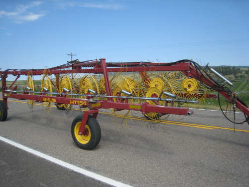 This beautiful piece of farm equipment gathers cut hay into rows for baling