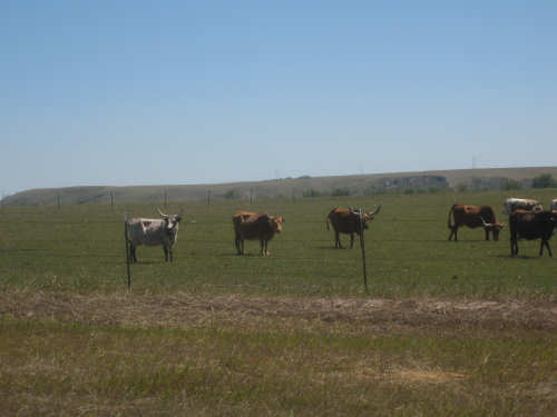 We stopped for lunch in Stanton although it was a bit early and were surprised to see the cafe full of people. We joined a guy who had been doing road work on the road into Stanton this morning and he asked if we were the couple on the tandem bike he had seen ride by. We also found out the answer to a question that had been bothering Pat for some time - why are there always windsocks at oil pump locations? The guy at the next table overheard us asking about it and said it was because of the hydrogen sulfide gas that's commonly found there. He remarked that you would want to be sure to be upwind of that deadly gas if you were around it.