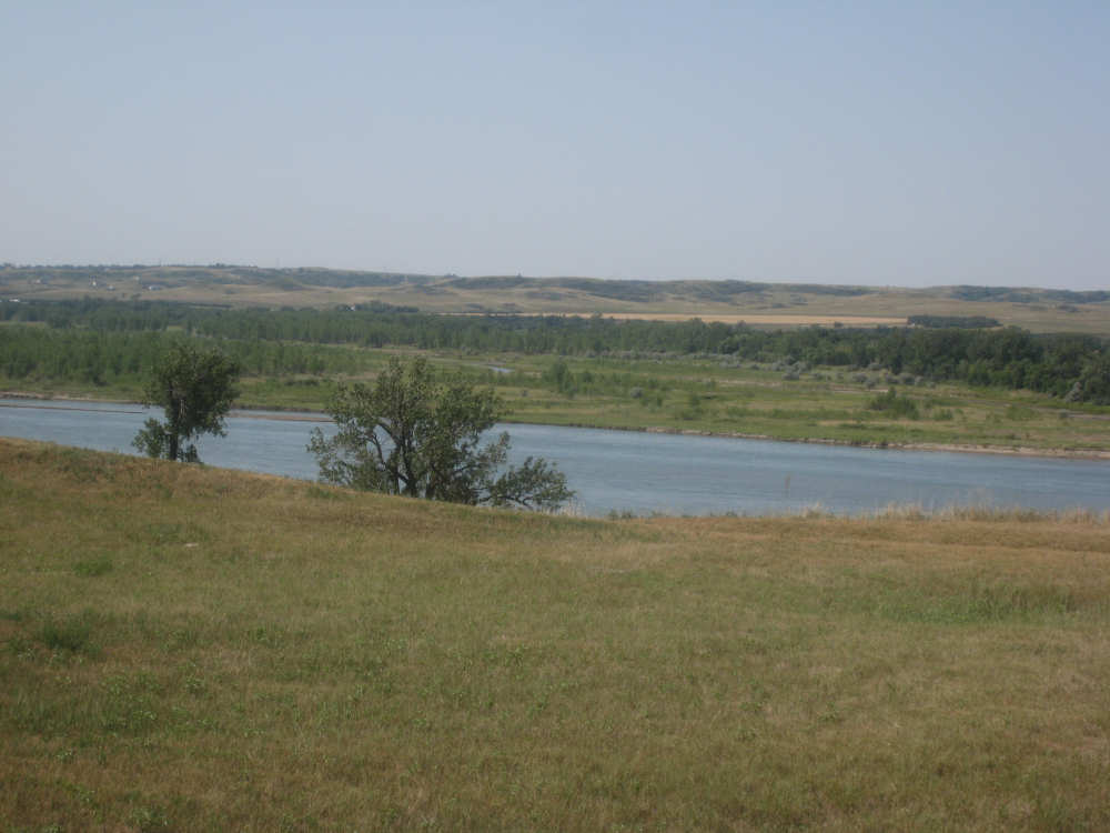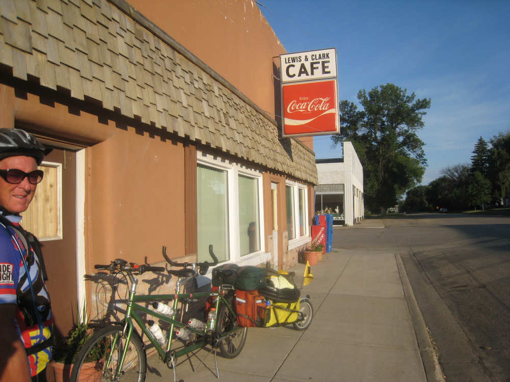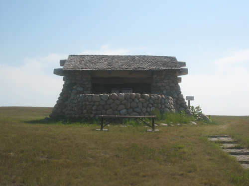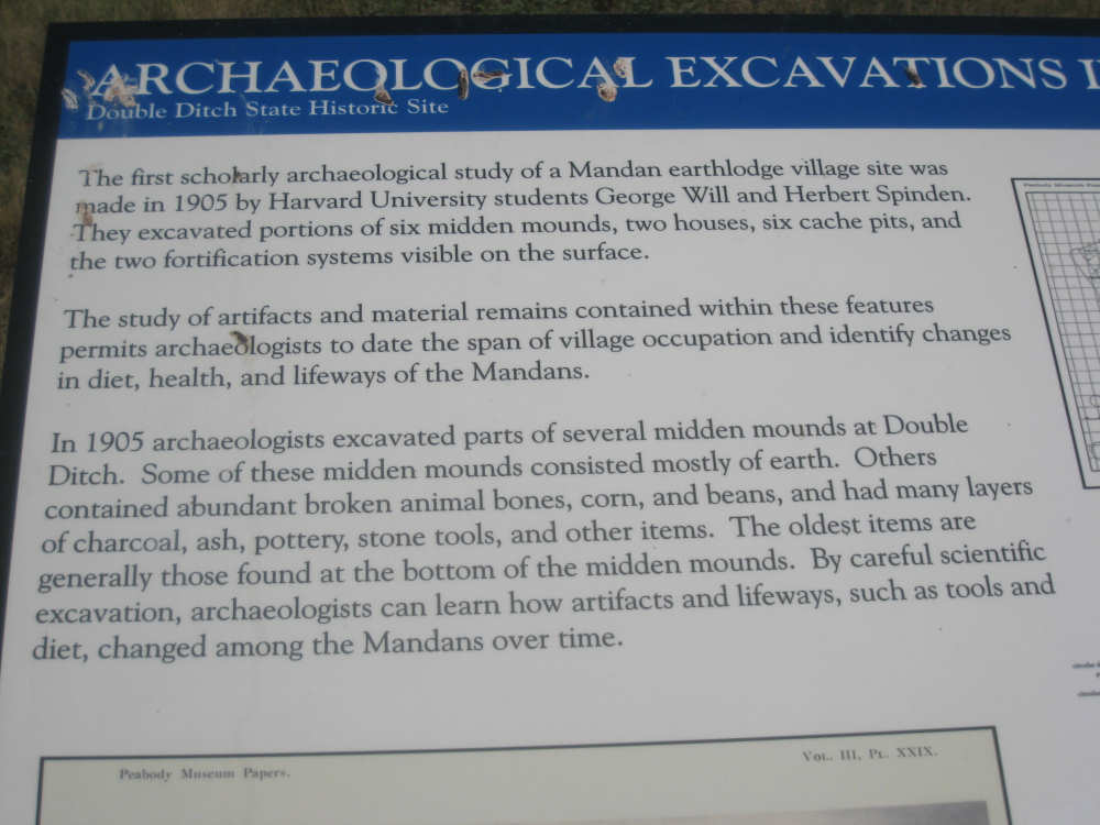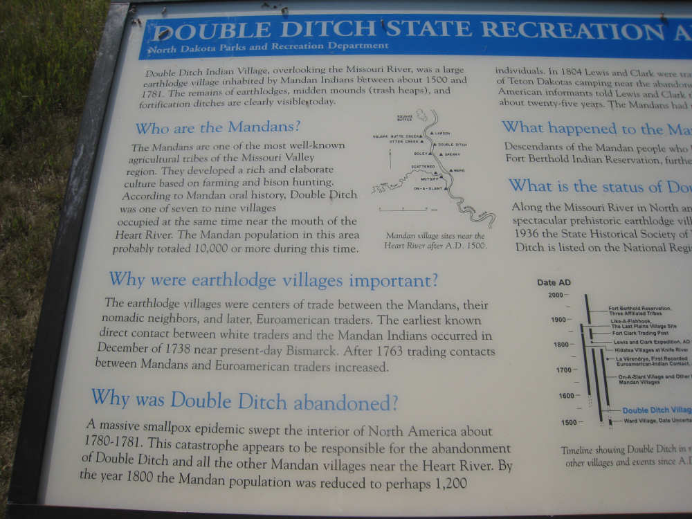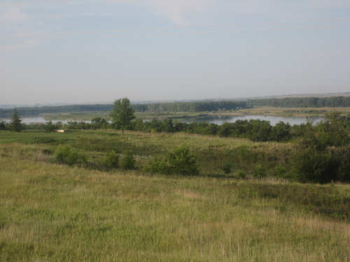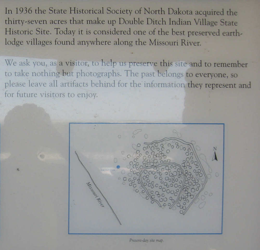 Wednesday, July 30, 2008 Sorry for the technical difficulties yesterday, but all is working fine today and yesterday's pictures are now up. Another beautiful day today, cool and sunny with a calm wind in the morning - excellent biking weather. It was rolling hills again today, too, and the wind, once it got going, was from the south, but we made out fine. We went into downtown Washburn to find breakfast and found a quaint little town with a great cafe. Banners on the lampposts called Washburn the winter home of Lewis & Clark, referring to the place they camped during their first winter, just south of here. We then set out on Hwy. 83 and, shortly afterward, turned off onto Rt. 1804, the more scenic road that runs closer to the river. We got some great views of the Missouri today, as well as the farmhouses, crops, and trees alongside it and the hills and buttes behind it. It was a very lovely day. We noticed that many of the crops were not grain, which was practically all we saw in Montana - here we saw corn and other crops as well as wheat and hay. We were also surprised to find that someone in North Dakota has the same sense of humor that we saw in Texas. One of the farms' fence posts were each decorated with an old cowboy boot or shoe, like the farm called Boot Hill that we saw near Hunt, TX (see the April 14 page). We did a little more sight-seeing today, at another earthlodge village called Double Ditch (no explanation why it was called that). This one had been inhabited by the Mandan Indians but had already been abandoned when Lewis & Clark arrived there in 1804. Almost 90% of the Mandans had been wiped out by a smallpox epidemic and the survivors had relocated farther north. We got pictures of several plaques, one of them describing the square-looking buttes we had seen earlier along the river, but others mostly talking about the earthlodges and the Mandans. Some of the pictures may seem like repeats of yesterday's but we thought the floor plan shown here was clearer than yesterday's, so we included it. The village site also had a lovely stone shelter that had been built in the Depression as one of the Conservation Corps projects, and there was a plaque about that. Shortly after the Double Ditch village, we began to get into the outskirts of Bismarck. We got onto a parallel road called River Road that ran along the river. This brought us to a bike trail, parallel to the road, which wound through a series of parks. The first one was Pioneer Park which had a pavilion, picnic area, and woods along the river. The second, more elaborate one, was Keelboat Park with an interesting sculpture of Lewis, Clark & Sakagawea, a replica of a keelboat, and a small steamboat that gave rides up and down the river. It also had a restaurant, and given it was around 1 pm, we stopped and had a delicious lunch. We continued along the bike path through about 3 more miles of lovely parks before we arrived at our motel at 2 pm. We found our motel to be very well situated, near restaurants and near a bike shop. After unloading everything, we headed over to the bike shop to get it looked over. We also managed to get a bike seat cover for my seat which is coming apart at the seams. I'm hoping the seat cover will keep the seat together for the rest of the trip, so I can get a new one at home. It was another short and pleasant day - 43 miles in a little over 4 hours of bike time. The next two days will be longer and a little tougher, we expect. Here's hoping the weather cooperates, at least! |