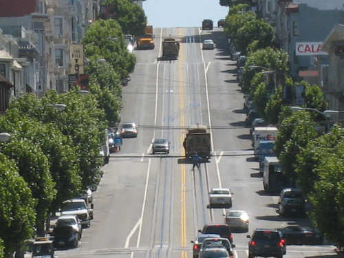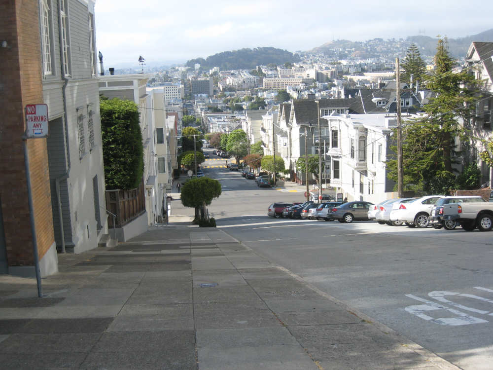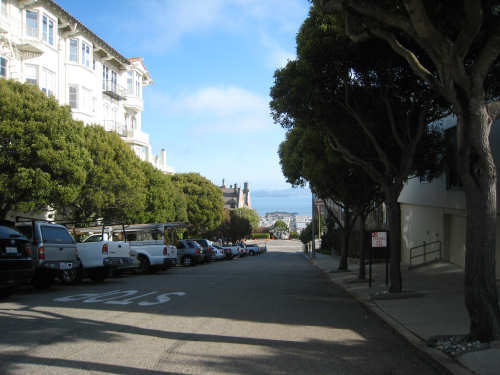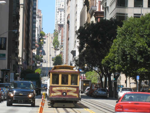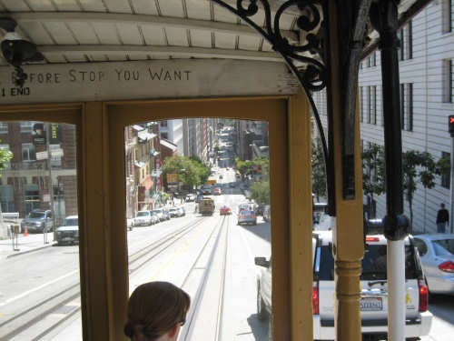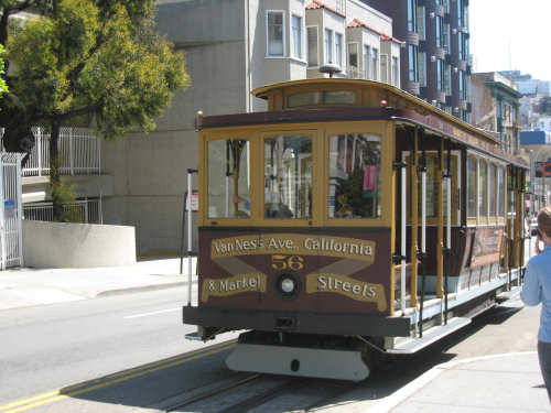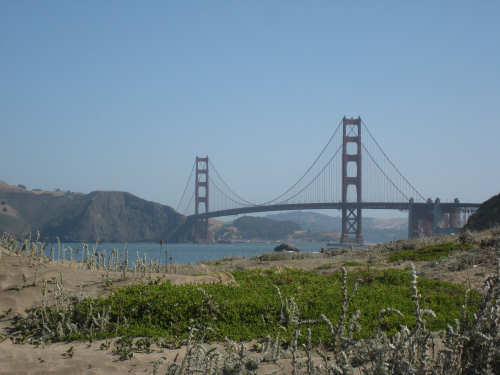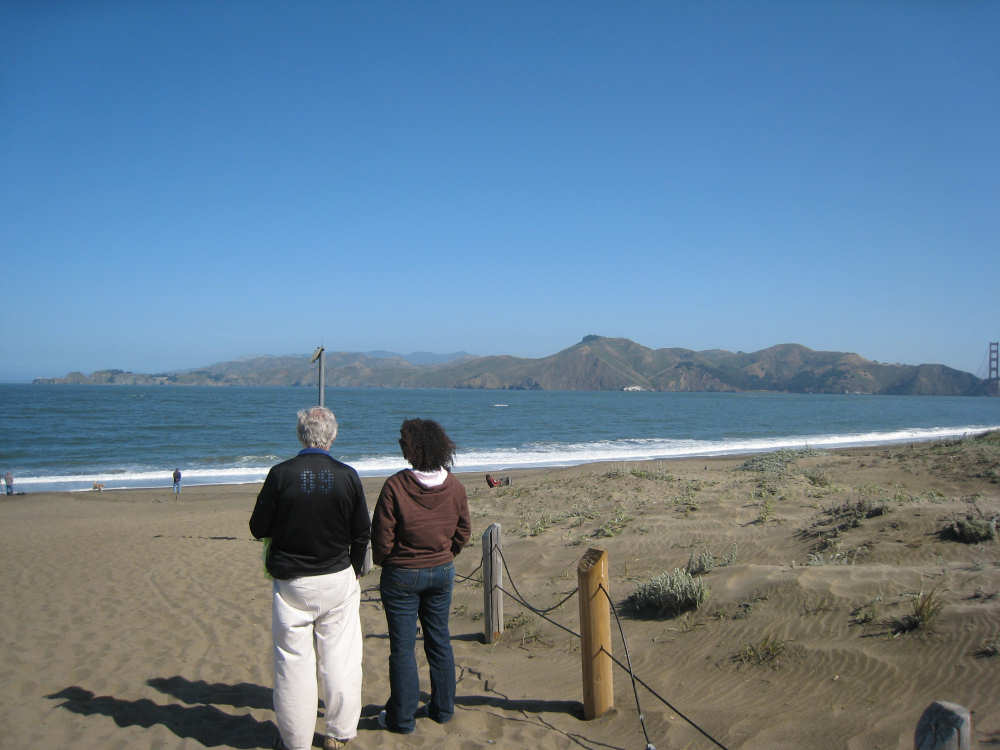 Monday, June 02, 2008 - Rest Day in Berkeley, CA Shane took us in to San Francisco today, stopping at the high school where she teaches and then touring us around the city a bit. The high school kids were just starting their final exams so there was a lot of hubbub when we arrived but the kids soon disappeared into classrooms for the tests. Pat & I wandered around the neighborhood - Pacific Heights - while Shane took care of some things, then she drove us down to the Golden Gate Bridge, to see where our route will start off on Wednesday, then to Baker Beach, Ocean Beach, and around the Golden Gate Park, a long and lovely city park along the ocean and bay. Both Baker and Ocean Beach were along the ocean, but Baker Beach was in a little cove and the water and wind were a lot calmer there; Ocean Beach was colder and windier with much choppier waves. One could see the fog bank that sat out over the water and moved in during the evening and out again in the morning. The Cliff House, a famous restaurant, was perched on a cliff right on Ocean Beach. We also saw some white rocks a little bit off shore whose whiteness, Shane explained, was due to all the bird guano deposited on them. The Golden Gate Park had lots of trees and beautiful plants, some wetland areas, a large botanical gardens, a Japanese garden, and much, much more. Then Shane took us around to some other famous neighborhoods - Haight-Ashbury, the Castro district (where her sister, Becca, lived for a while), and finally to California and Van Ness where the cable cars originate. She dropped us off there and we took a ride up Nob Hill, through Chinatown and back down to the Ferry Building where we had been the day before. From there, we took BART, the subway system, back to Shane's house. After that, we tried to get some work done - laundry, planning next week's route, updating the web site - until Shane came home and we went out to dinner with Becca, who's still hard at work getting her new apartment ready to move into. Tomorrow's our last rest day; this glorious week is quickly coming to an end and, as usual, we still have a lot to do. May not be a great day for pictures, but the day after that should be - we'll be heading out over the Golden Gate Bridge. I hope we'll be able to take pictures from up there. It all depends - if there's a lot of bike traffic, we may not be able to stop or go slowly enough to snap many pictures. We'll see what we can do. |