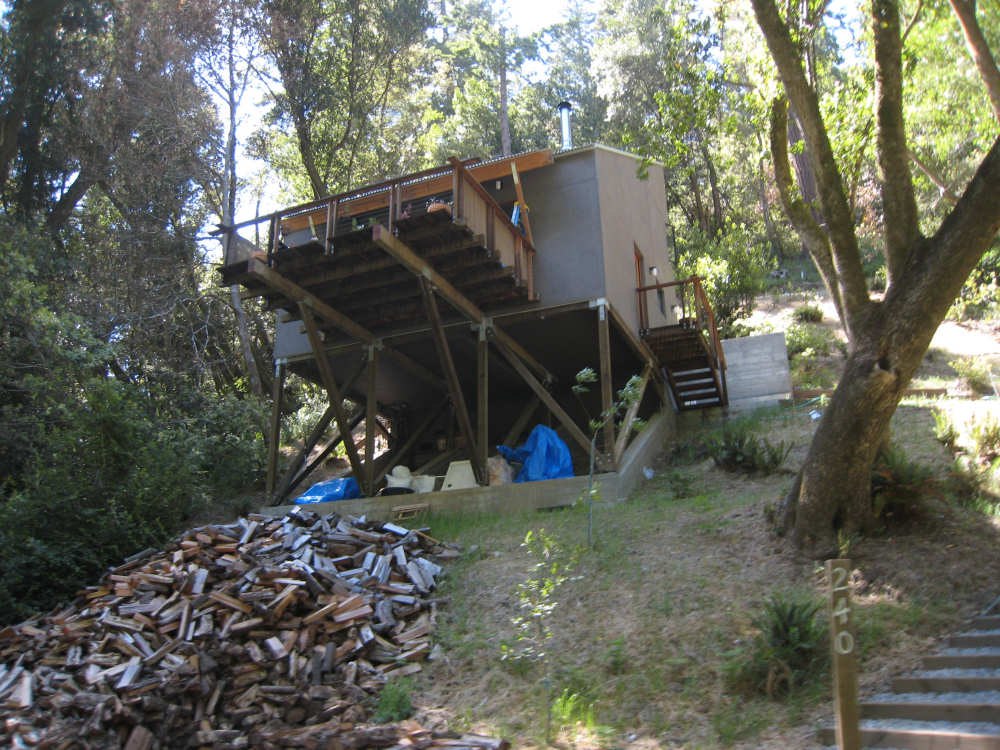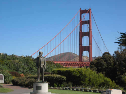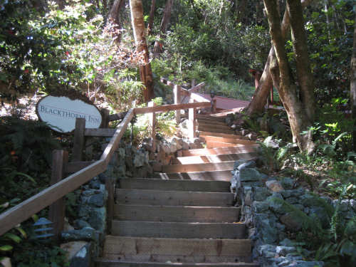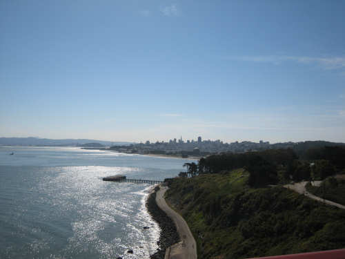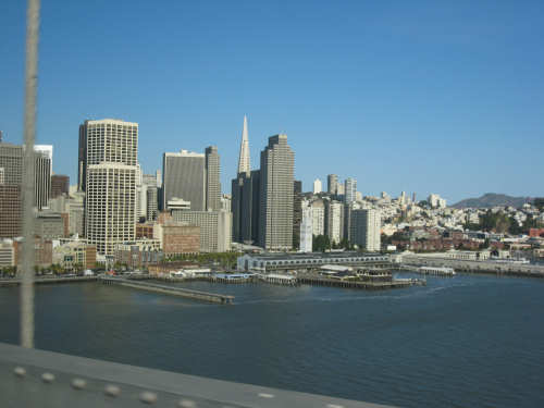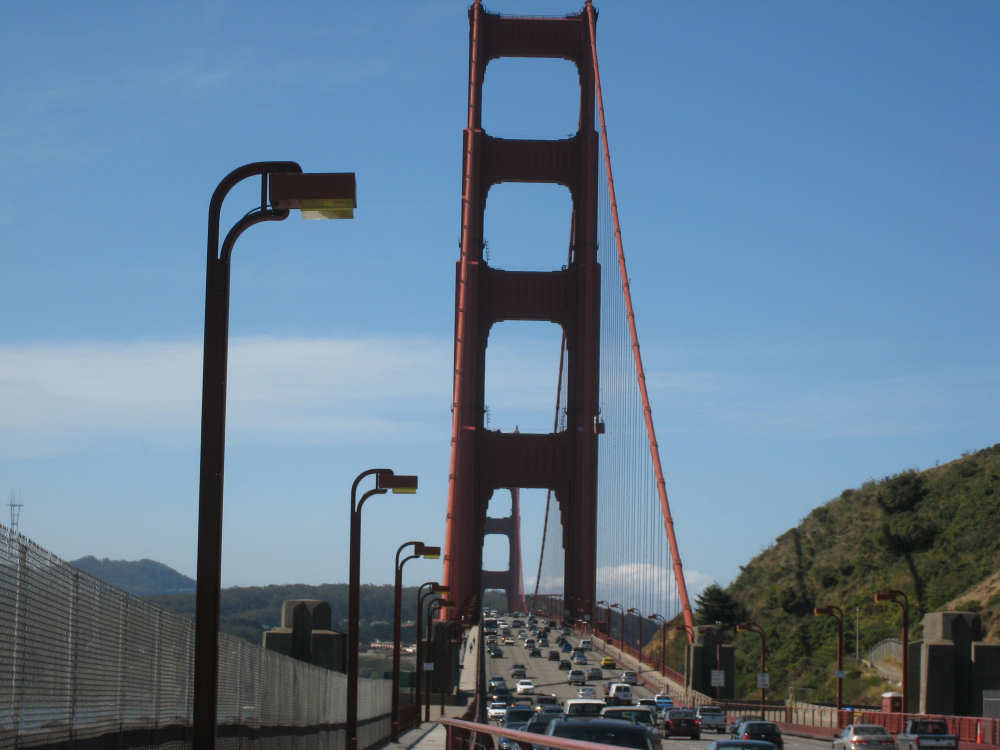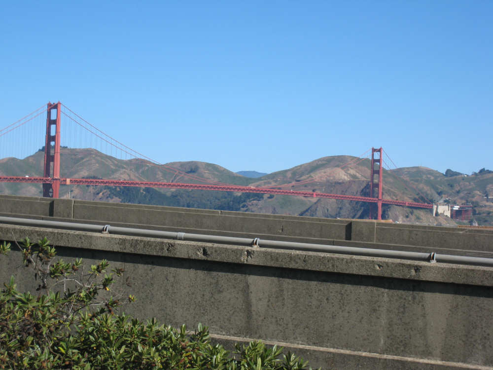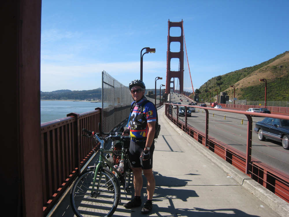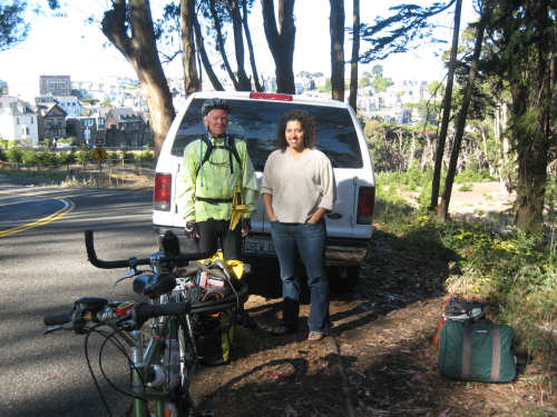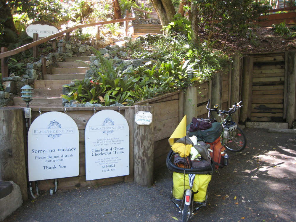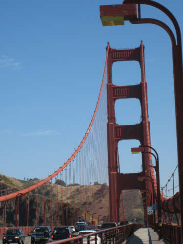 Wednesday, June 04, 2008 Sorry for blowing off yesterday. We spent most of the day working on our route for the next week and napping (Shane kept us up late every night!). The only interesting thing we did all day was go out to dinner and ice cream with Shane, Sky and Becca and I managed to forget to bring the camera. So we didn't have any pictures, but we were going to put up a page anyway and then go to bed early for a change, except that we got immersed in watching the presidential candidates' speeches and ended up staying up late after all. So we decided to bag it and get some sleep. Today we got up bright and early and packed up all our stuff. We had a major problem of how to get from Befkeley to the Golden Gate Bridge in San Francisco without biking over the Bay Bridges (very bad to do on a bike). Shane resolved the problem by borrowing a van and hauling us and the bike over to the Presidio area near the Golden Gate in it. Then we rode through the Presidio to the Golden Gate Bridge. There was a statue of the man who was the chief engineer on the bridge building project at the foot of the bridge, as well as a sample bit of the cable that holds it up. Very impressive looking. With all the extra fussing of loading the bike in the van, getting driven over and unloading, then riding to the bridge and taking pictures there, we didn't start heading over the bridge until about 9:30. There was a lot of car traffic on the bridge, but not too much bike and foot traffic on the walkway so we had a pretty easy ride. I was a little nervious starting out because the bridge was so high up over the water, but it didn't seem too bad after all. There are two walkways, one on each side of the bridge, but one on the ocean side was closed because of painting, and we actually saw two guys up in a little bucket working on the wires. That's definitely not a job I'd like! Once we were off the bridge in Marin, we got some help from another bicyclist as to how to proceed (it was a little confusing there and we wanted to make sure we didn't get on the freeway), and headed off toward Sausalito. Sausalito is another cute shore town with very chi-chi stores and nice parks and marinas. We took pictures of the San Francisco skyline, which we could still see although it was a little fuzzy and the islands in the bay. We started climbing and saw some neat valleys full of houses. We went by Mill Valley, but I don't think we saw it. We did go through a number of nice small towns - Corte Madera, Larkspur, Kentfield, Ross, San Anselmo, and Fairfax - one blending into the other. Then we got into the woodsier areas and started seeing lots of trees, some redwoods, but many others, too - eucalyptus and oak predominantly. We also got into a steep climb as well. Couldn't tell if we had gotten "soft" from our week off, but it seemed to go on forever. We got to the town of Lagunitas on the downhill slope and stopped for a pick-me-up. We liked the milkshakes we had so much that we decided we ought to get something for dinner there as well. Good thing we did, because there was nothing else from there to the end of our day, except for a little deli. After Lagunitas, we got onto a bike trail through the Samuel P. Taylor State Park, which was gorgeous - crammed full of trees, mostly redwoods, and with the Lagunitas Creek running through it. The trail surface was better than the road we'd been on before that, too! After the bike trail, we went over Olema Creek and through the tiny town of Olema, then up a small road called Bear Valley which followed the creek and came up to the point of Tomales Bay, in the heart of the Point Reyes National Seashore. This area is a pristine, protected area with lots of marine life and birds and trees. We weren't near enough to the shore to see the ocean, but the part we were in was heavily wooded and quite beautiful. We turned onto Vallejo Road where the inn at which we would be staying was located. The inn looked almost like a huge tree house, nestled in the woods as it was. We dismantled the stuff on the bike and took it all up to our room and left the bike parked outside the main level of the inn. The place was practically deserted tonight, only one other couple was there and they kept out of sight. So we had the living room and kitchen area of the inn to ourselves as we had our dinner and worked on our website. We can't wait to get into that cushy bed up in our room, though! We ended the day at 3:45, with 40 miles in about 4-1/2 hours of bike time. Tomorrow should be a little easier although about 5 miles longer, and we'll be starting out late because we'll be having breakfast here, which doesn't start until 9:30. But we wouldn't want to miss it! |