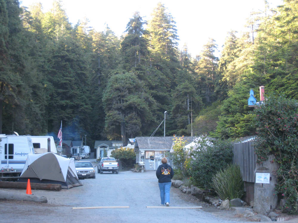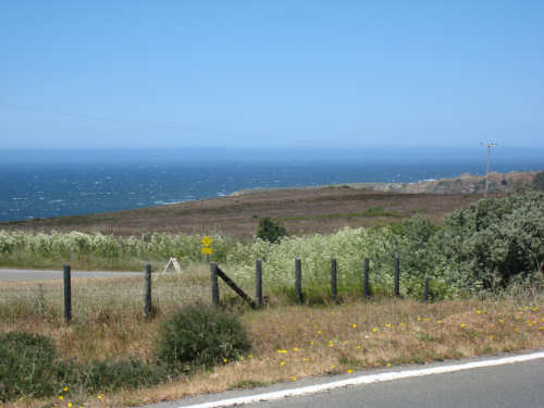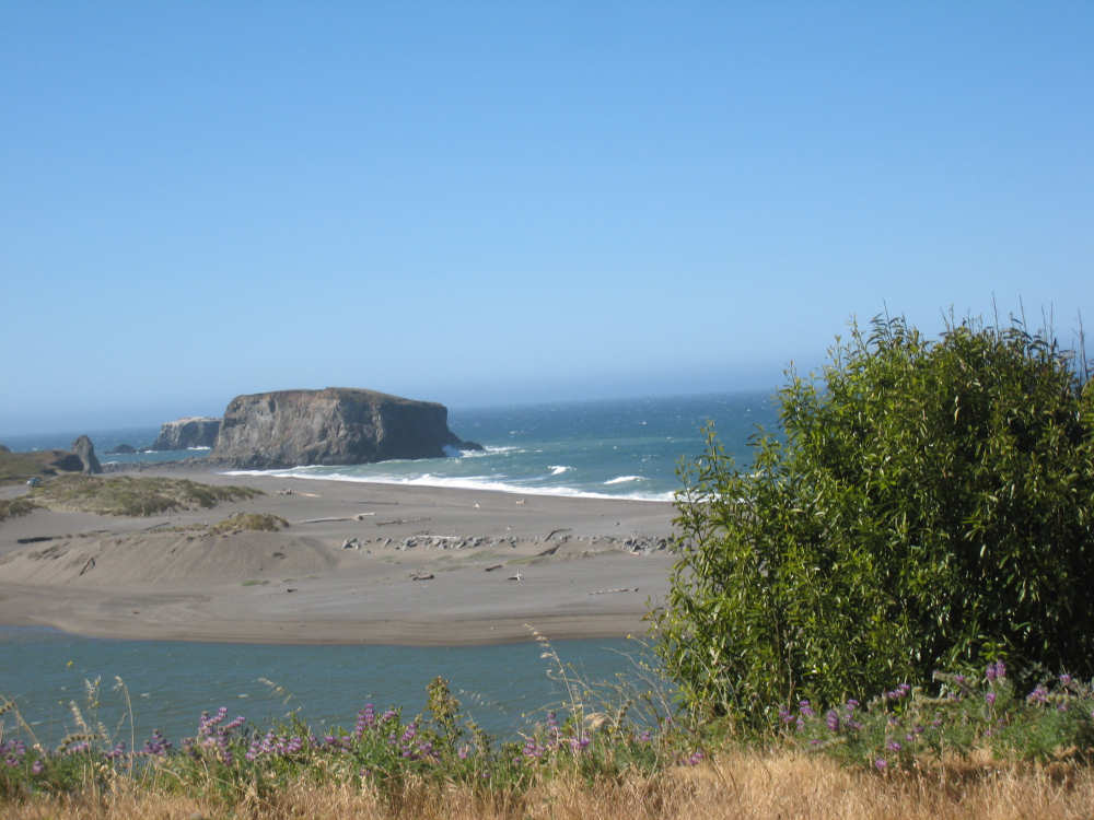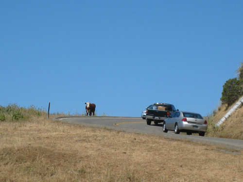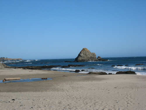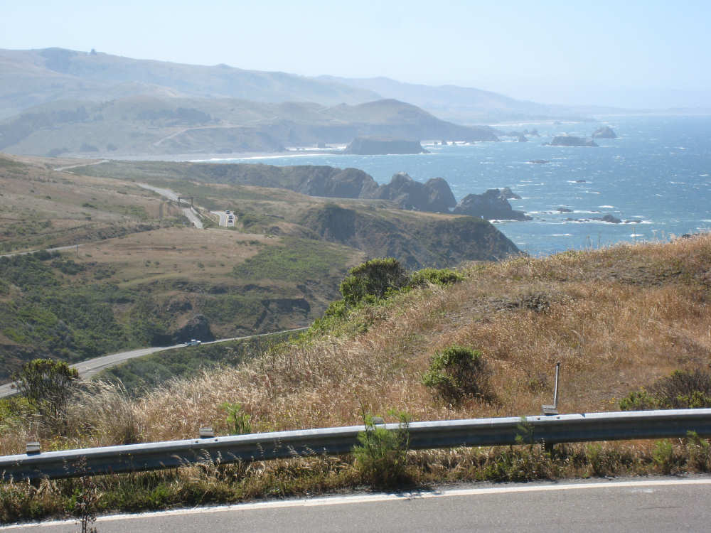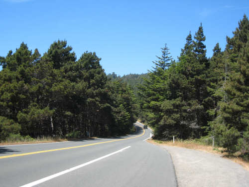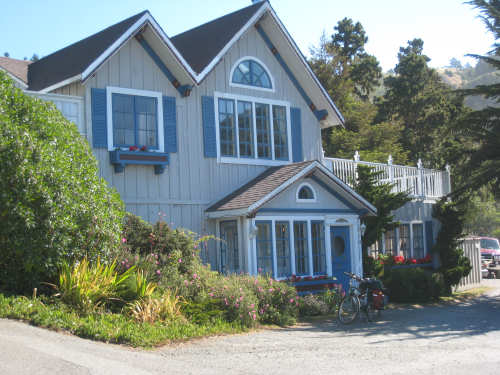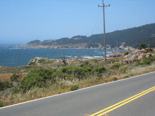 Friday, June 06, 2008 The wind did give us a bit of a break today - it was not quite as strong as yesterday but still had these maniacally strong gusts from time to time. Still it was hillier today than yesterday so we're pretty tired again, and tomorrow will be longer and hillier still. So we're really hoping the wind will behave itself tomorrow. We had another late start today - we had stayed in a nice little inn in Jenner and breakfast was included but it didn't start until 9. We were disappointed to learn it was only eggs, fruit and a muffin - hardly very satisfying for hungry bikers. We set out at 9:45 after uploading yesterday's pictures (sorry for the delay). We started out with the hardest hills right away, which was good - we like to get the worst over with early while we're fresher. The climb was up and around some 600-foot hills, with lots of switchbacks so that none of it was terribly steep, it just went on forever. The hills were beautiful though and we had some great views of the ocean from above. The rest of the day went along the ocean, through just a few small towns and several state parks. Most of the coast was very rocky and the ocean was very rough as it was yesterday. The colors of the ocean made quite a tapestry of colors, sometimes a light blue, sometimes dark blue, often light green near a shore, dark purple where there were kelp beds, and little white caps all over with lots of surf crashing over rocks near the shore. It was sensational to watch - we never got tired of it. Fort Ross was our first town and we had an early lunch in a deli there to make up for our skimpy breakfast. The next town was tiny Stewart's Point which was supposed to have a general store where we thought we'd get a soda, but it was closed. The bathrooms there were closed, too, unfortunately. However, there was a group of four guys who were biking from Utah, doing astounding 80-mile days (of course, they were going south, with the wind instead of against it). There was a woman with them also who was driving their sag wagon and they were taking a lunch break there. We had a nice chat with them and we went our separate ways. Our next chance for food was the town of Gualala, about 4 miles before our planned stop for the night. We weren't that hungry yet but bought some stuff for dinner from the grocery store. There was a guy there who had seen us that morning in Jenner and was very surprised we had made it that far. Then we headed off to Anchor Bay where we would camp. The Anchor Bay Campground is a very nice place, friendly people, and great location. It's nestled in among tall pine trees and located right off the ocean. A woman camping there said she loved coming here because it was one of the few places on the Northern California coast where you could walk right onto the beach; most beaches are down a steep rocky incline. The word quickly got around the campsite that we had biked from Philadelphia and lots of the campers came over to talk to us as we were setting up. Someone said that tomorrow morning at 9:15 it would be low tide if we wanted to see what was wahed up on shore, but we hope to get an earlier start tomorrow so we can get to Fort Bragg at a decent hour. We did 42 miles today, in almost 5-1/2 hours, arriving at 5:30. |