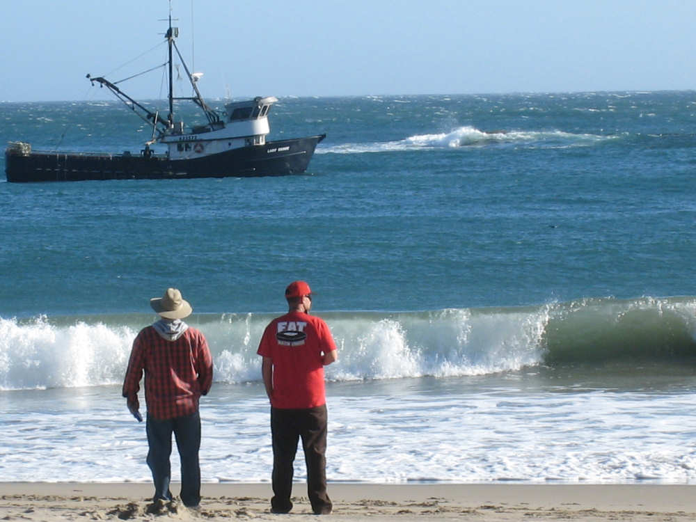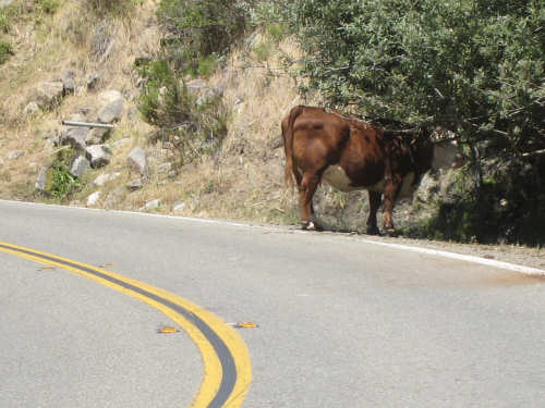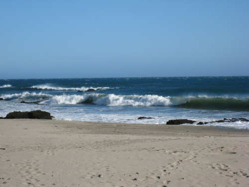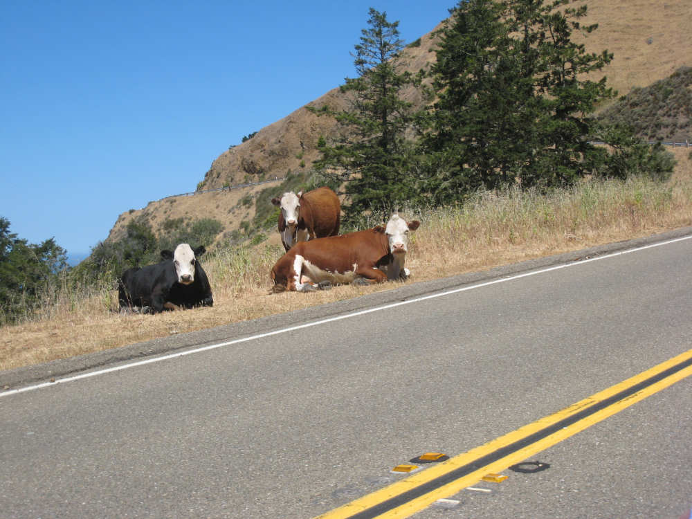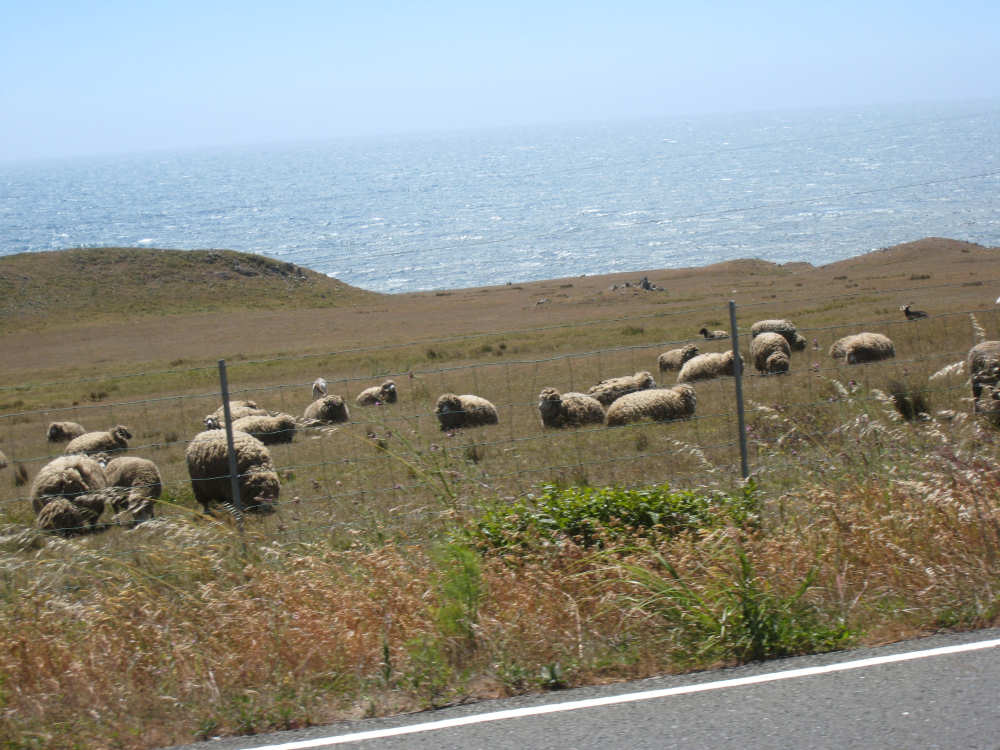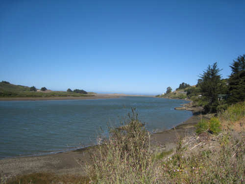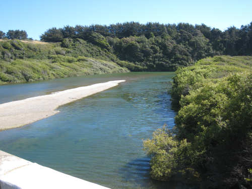 Friday, June 06, 2008 The wind did give us a bit of a break today - it was not quite as strong as yesterday but still had these maniacally strong gusts from time to time. Still it was hillier today than yesterday so we're pretty tired again, and tomorrow will be longer and hillier still. So we're really hoping the wind will behave itself tomorrow. We had another late start today - we had stayed in a nice little inn in Jenner and breakfast was included but it didn't start until 9. We were disappointed to learn it was only eggs, fruit and a muffin - hardly very satisfying for hungry bikers. We set out at 9:45 after uploading yesterday's pictures (sorry for the delay). We started out with the hardest hills right away, which was good - we like to get the worst over with early while we're fresher. The climb was up and around some 600-foot hills, with lots of switchbacks so that none of it was terribly steep, it just went on forever. The hills were beautiful though and we had some great views of the ocean from above. The rest of the day went along the ocean, through just a few small towns and several state parks. Most of the coast was very rocky and the ocean was very rough as it was yesterday. The colors of the ocean made quite a tapestry of colors, sometimes a light blue, sometimes dark blue, often light green near a shore, dark purple where there were kelp beds, and little white caps all over with lots of surf crashing over rocks near the shore. It was sensational to watch - we never got tired of it. Fort Ross was our first town and we had an early lunch in a deli there to make up for our skimpy breakfast. The next town was tiny Stewart's Point which was supposed to have a general store where we thought we'd get a soda, but it was closed. The bathrooms there were closed, too, unfortunately. However, there was a group of four guys who were biking from Utah, doing astounding 80-mile days (of course, they were going south, with the wind instead of against it). There was a woman with them also who was driving their sag wagon and they were taking a lunch break there. We had a nice chat with them and we went our separate ways. Our next chance for food was the town of Gualala, about 4 miles before our planned stop for the night. We weren't that hungry yet but bought some stuff for dinner from the grocery store. There was a guy there who had seen us that morning in Jenner and was very surprised we had made it that far. Then we headed off to Anchor Bay where we would camp. The Anchor Bay Campground is a very nice place, friendly people, and great location. It's nestled in among tall pine trees and located right off the ocean. A woman camping there said she loved coming here because it was one of the few places on the Northern California coast where you could walk right onto the beach; most beaches are down a steep rocky incline. The word quickly got around the campsite that we had biked from Philadelphia and lots of the campers came over to talk to us as we were setting up. Someone said that tomorrow morning at 9:15 it would be low tide if we wanted to see what was wahed up on shore, but we hope to get an earlier start tomorrow so we can get to Fort Bragg at a decent hour. We did 42 miles today, in almost 5-1/2 hours, arriving at 5:30. |