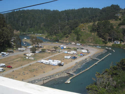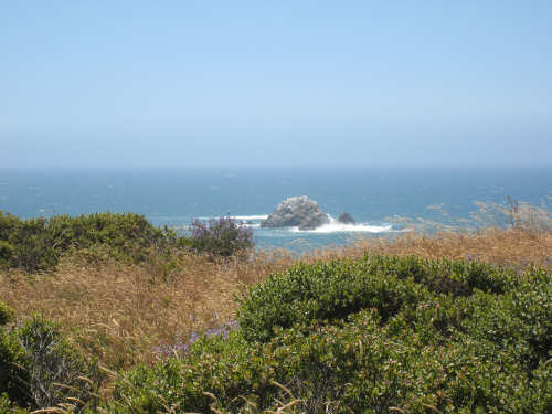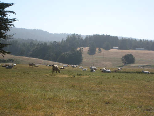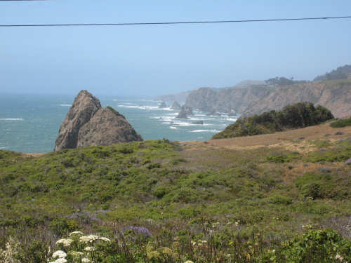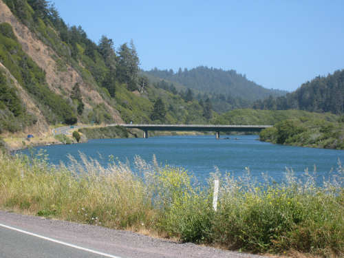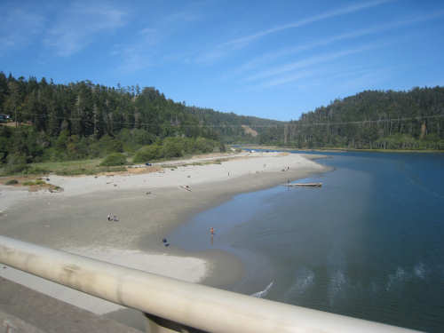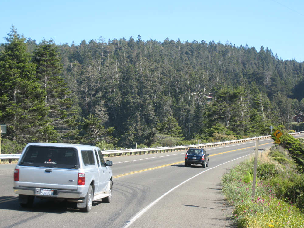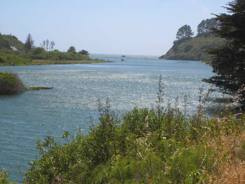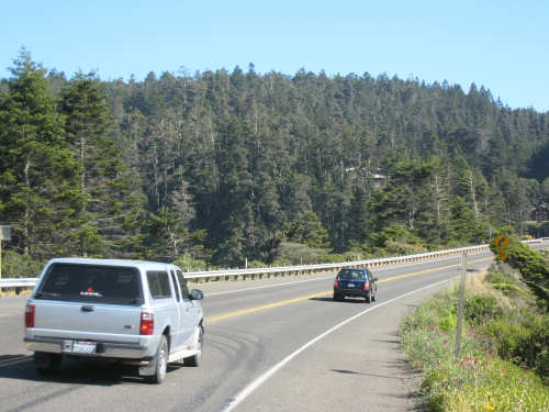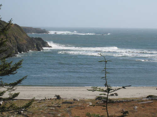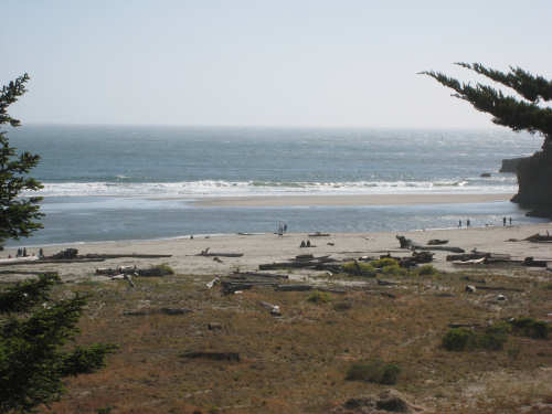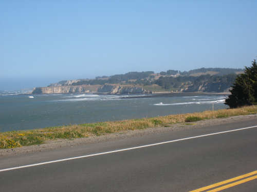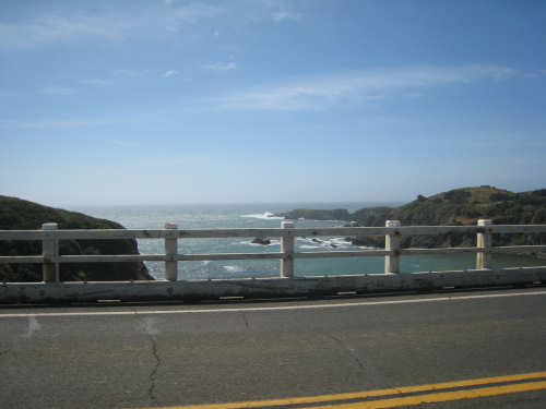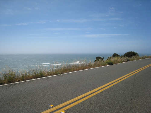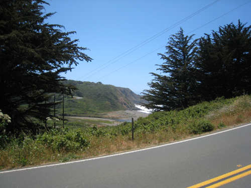 Saturday, June 07, 2008 Tonight we have a serviceable cell phone connection - makes the website work so much easier. Last night at Anchor Bay, we only had connection down at the beach, so Pat had to take the laptop down there to upload our pictures and text! Very crazy. Cell phone/internet access will continue to be troublesome for some time, however. Cell towers are not held in high regard in these parts apparently. Today was not as bad as we expected, although it was a long and tiring day. We left camp in Anchor Bay at 8:30 am and arrived at our motel in Fort Bragg at 6:30 pm. The wind was not quite as strong as yesterday, although we did have some of those insane gusts from time to time. We had been warned about the horrific north winds in California, but they really hadn't been much of a problem until we were north of San Francisco. And they really have to be experienced to be believed anyway - truly incredible how strong they are. At any rate, the wind seemed to die down this afternoon, so it bodes well for tomorrow, too. Today was also a milestone in that we broke 4500 miles - roughly the half-way point of our trip. So tomorrow we are, effectively, on our way home! We had a couple of sweet rolls at camp this morning to tide us over until we hit Point Arena, 11 miles away. We were lucky to find a very nice cafe in Point Arena, which we noticed because there were 2 bikes parked in front. The bikes belonged to a Swiss couple who were biking the Pacific coast south to LA, having also biked in Australia and New Zealand starting back in January. They were a very charming couple and we had a great breakfast and great company, too. They said they had expected to see us since they had met a guy at their campsite in Manchester, a town just north of Point Arena, who told them about us. He was biking north like us and we had met him the day before yesterday (he passed us, easily). He had stopped one town south of ours that day and so we saw him again yesterday (he passed us again, easily). We told him we were stopping in Anchor Bay, but he apparently went about 15 miles further than us to Manchester. Abalone fishing is apparently very big here; we noticed a lot of large abalone shells decorating building at the Anchor Bay campsite and as we were having our quick breakfast there, a number of people arrived wearing wet suits who were headed for the beach to fish for abalone. As we headed towards Point Arena, we noticed a lot of cars lining both sides of the road in a couple of spots and the people around the cars were putting on or taking off wet suits. The waiter at the cafe in Point Arena confirmed that they were going abalone fishing, too. A Bureau of Land Management official was having breakfast at that cafe, as well, and one of his jobs is to make sure no one leaves with more than their quota. We spent all day going up and down hills, winding away from and back towards the ocean again and again. The ocean was beautiful as always, with waves breaking over the rocks near the coast. We crossed several large rivers that emptied into the ocean - they were all very clear and pretty. The landscape we passed through was either forested with tall pines, redwoods, eucalyptus, or a few other types of trees, or it was rolling pastures and meadows. It was all spectacular. We passed through several small towns besides Point Arena and Manchester - Elk, where we had lunch, Albion, Little River, Mendocino, Caspar, and finally Fort Bragg - the largest of all of them. They were all clearly resort towns where state parks and beaches were the center of attention, and inns and B&Bs were in good supply. We ended the day at 56 miles in about 7 hours of bike time - slow but sure. |