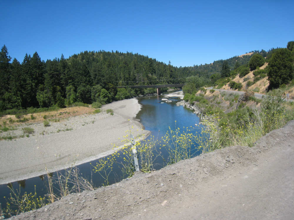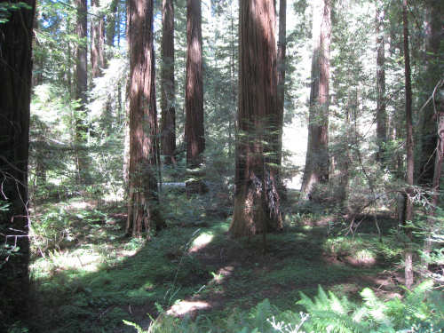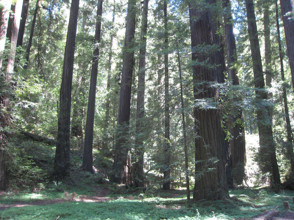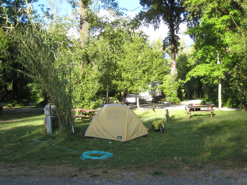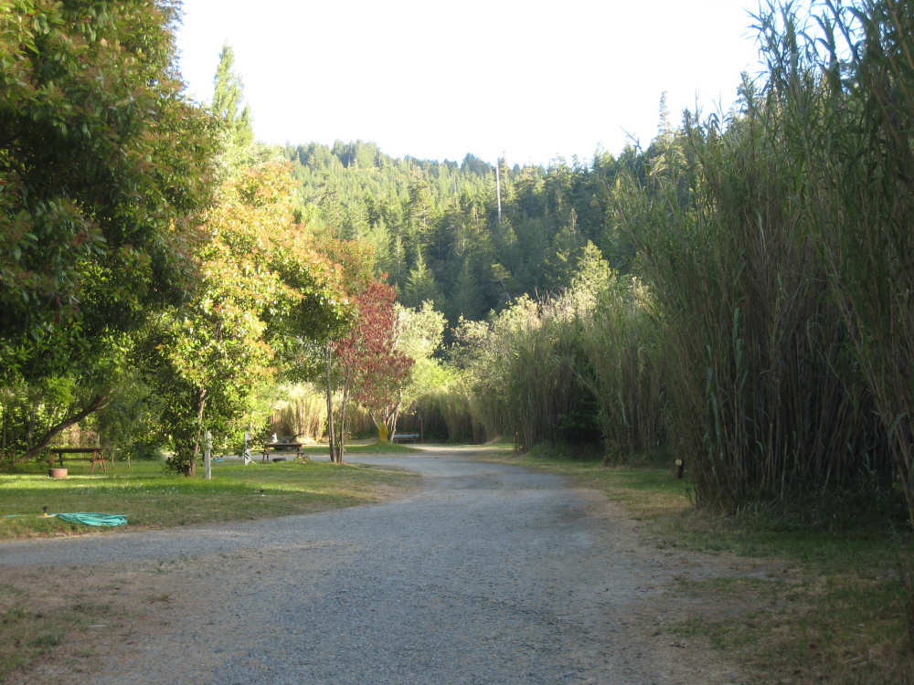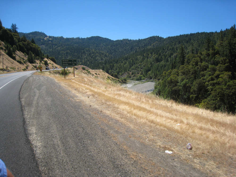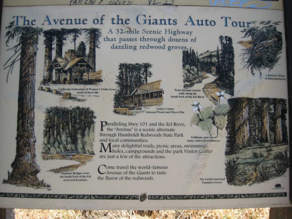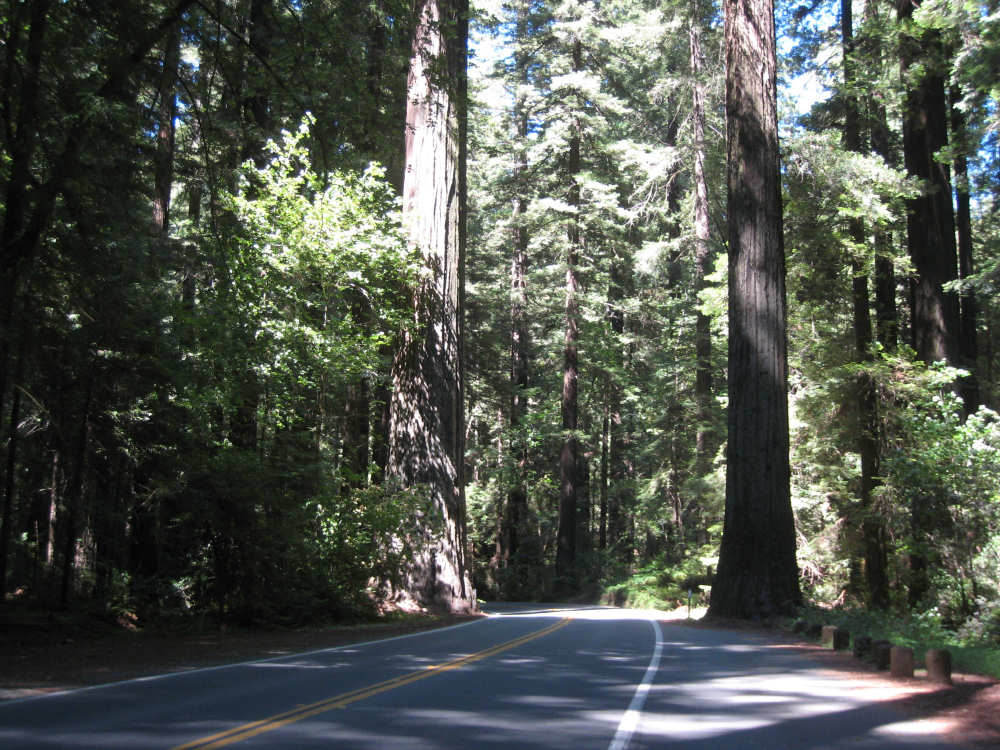 Monday, June 09, 2008 Our campsite last night was quite international. Besides Audrey from Quebec and the 4 people from Austria, another couple of guys from England arrived fairly late. There was only one American in the hiker/biker site besides us, he was from San Francisco and was doing a whirlwind tour from Portland back to San Fran in just a couple of weeks. We had some breakfast at our favorite new restaurant across the street from the campsite, including 2 more brownies like the ones we had last night. The restaurant is called the Peg House, which we thought was named after the owner, but she told us it was because the entire house was held together with wooden pegs - no nails, screws or other metal fasteners. Truly an amazing place; not to be missed if you're in the area. Today was about redwoods. We started off on 101, a fairly busy road but wider than Hwy. 1. There were already some touristy redwood places popping up along the road - the World Famous Tree House, the Living Chimney Tree, etc. - and there were lots of places offering wood carvings, the most common subjects of which were bears, Native American Indian chiefs, sea captains, and other odd characters. Many of them were quite good. We also started seeing logging trucks again, this time with redwoods; we've heard that we'll be seeing a lot more of them as we continue north. We took a little detour off 101 for a bit onto Rt. 271 which was very scenic and a lot calmer than 101. We went up a hill and for a while were overlooking 101, as well as the sparkling Eel River, which snaked alongside us pretty much all day. We rejoined 101 after a few miles and "officially" entered Redwoods Country. We saw a Road Narrows sign (roads seem to only narrow, they never say they widen) and soon realized that it had shrunk to squeeze between large redwood trees on either side of it - pretty amazing for a major road like 101. The road did widen again later and went up some pretty steep hills. At least, they seemed steep - we seemed to still be pretty tired out from the hill into Leggett yesterday. We stopped to rest midway up one hill and a guy on a bike soon came up alongside us. He was touring too, and seemed to do it frequently - he was familiar with a lot of the places we'd been and were planning on going. He said his name was Adrian and we had a very nice time talking with him; he had quite an upbeat attitude and clearly loved biking around the country. He went off ahead of us but left us feeling much cheerier than before we stopped - another "bike angel" showing up just when we needed one. We stopped in Garberville for lunch and chatted with a motorcyclist from the area. He told us a lot about the Columbia River Gorge and other places and was quite interesting. We set off again - by now it was quite warm and the wind was still pretty calm, like yesterday. After the next hill, we were feeling quite wiped out. We came to the turnoff for the Avenue of the Giants (Redwoods, that is). which we had been looking forward to for some while. According to the information sign, this road covers 32 miles of redwood forest, over 53,000 acres, 17,000 of which are ancient trees, some of which live as long as 2,000 years. They are also the world's tallest trees, reaching heights of 360 feet. At first, it didn't seem very different from 101, except that the traffic was a bit lighter and there were no trucks. The heat was still oppressive and we were ready to call it a day. Then we started getting into the redwood groves - it was nice and shady, much cooler, and of course beautiful to look at. The trees were nothing short of majestic. and like being in an immense cathedral, they inspired one to silence. Most of the rest of the day's ride was fairly easy and downhill overall. We went in and out of the groves, kept getting peeks of the Eel River from time to time, and eventually arrived at Myers Flat and found our campground. This was a private campground, not a state park and had 2 things we haven't seen in a campground for some time - free showers and a laundromat (not free). We don't have cell phone access, but we do have electricity and wi-fi, so no excuses about the website. We arrived around 4 pm, set up the tent, showered and went to the one restaurant in town for dinner - delicious food, amazingly enough - and then did laundry and worked on the website. We had a short day - 43.5 miles - which we did in 4-1/2 hours of bike time. Tomorrow's a longer day but we'll end in a motel again and the day after will be a rest day - hooray! |