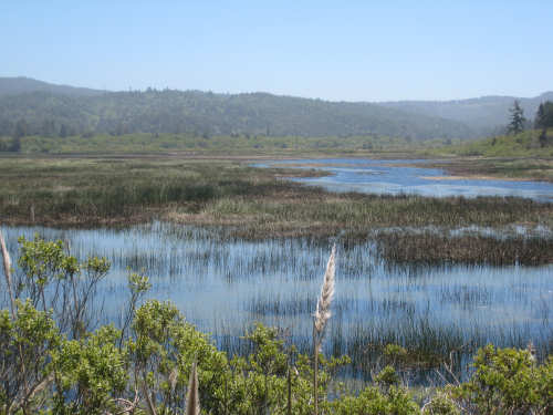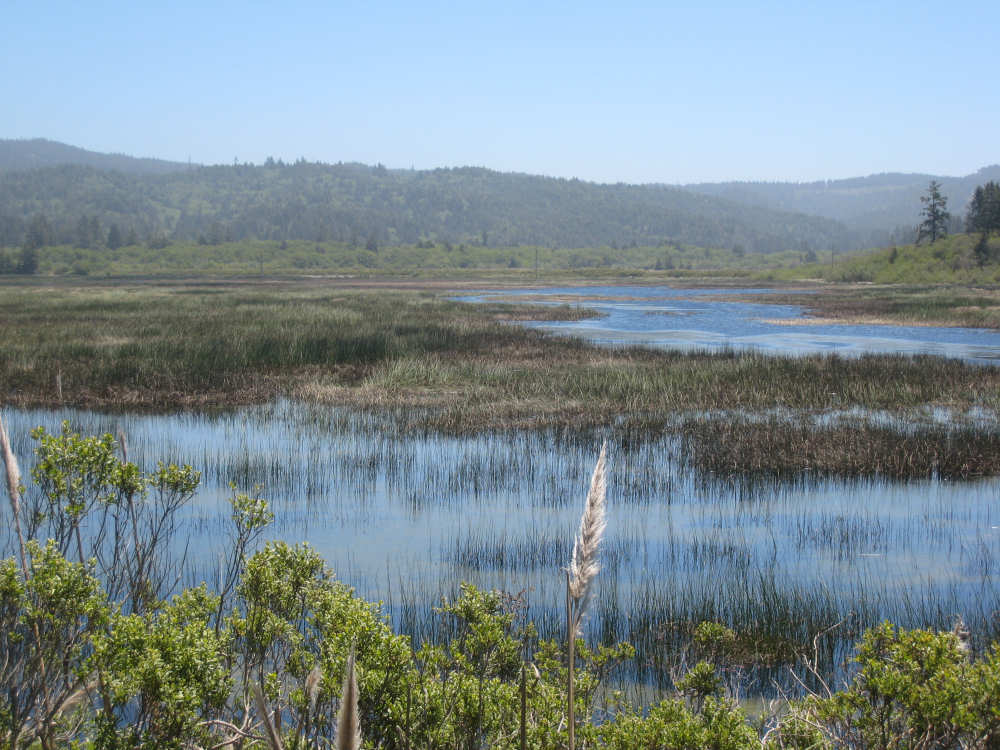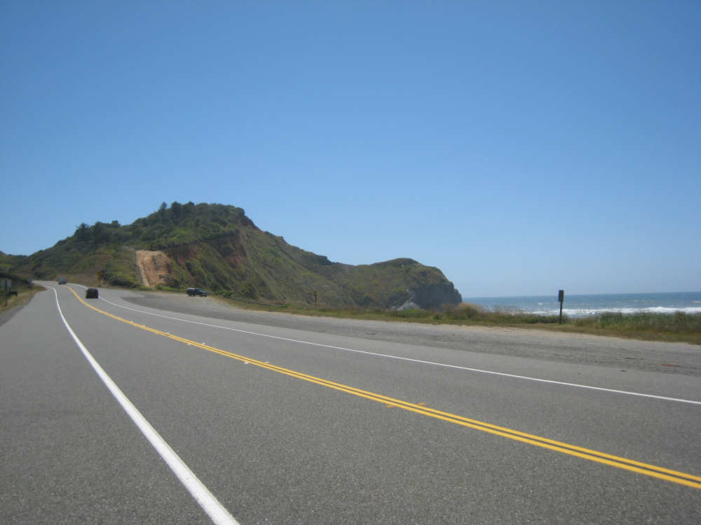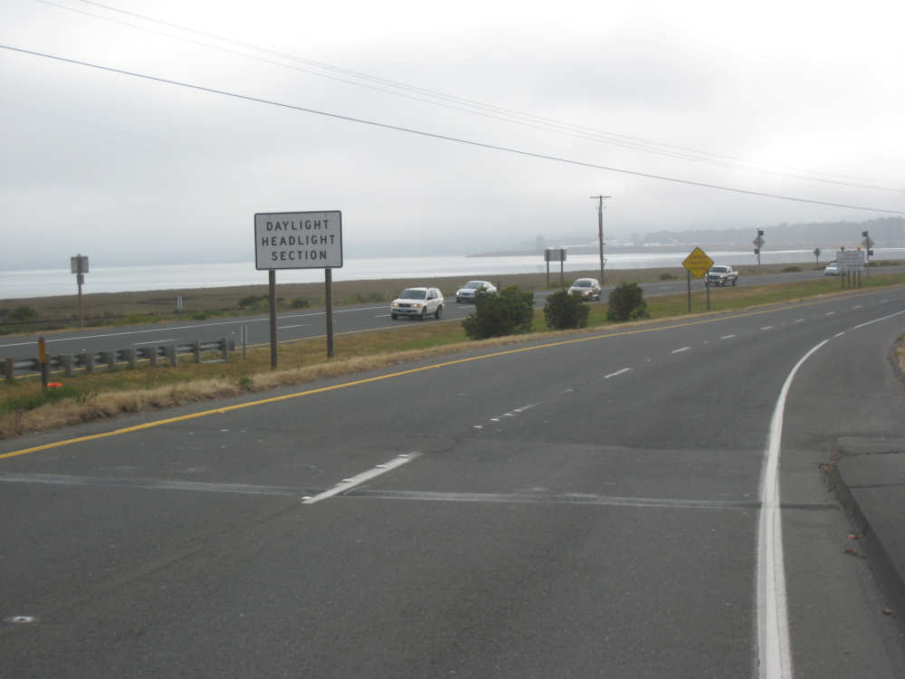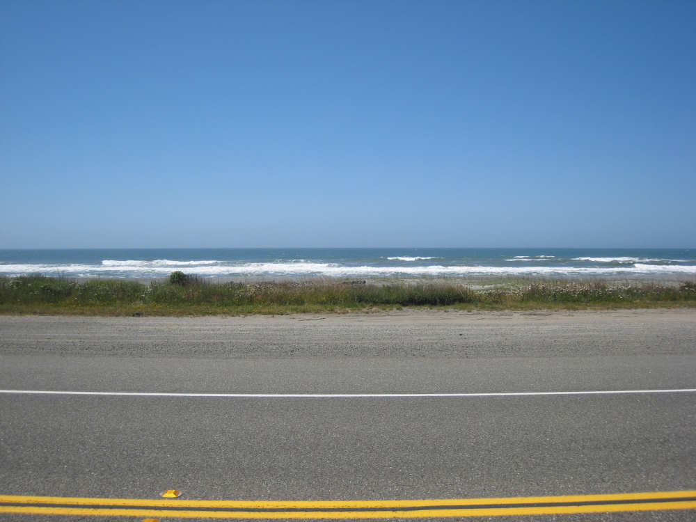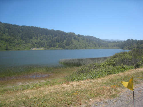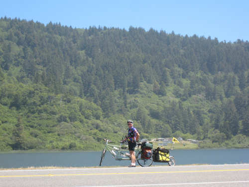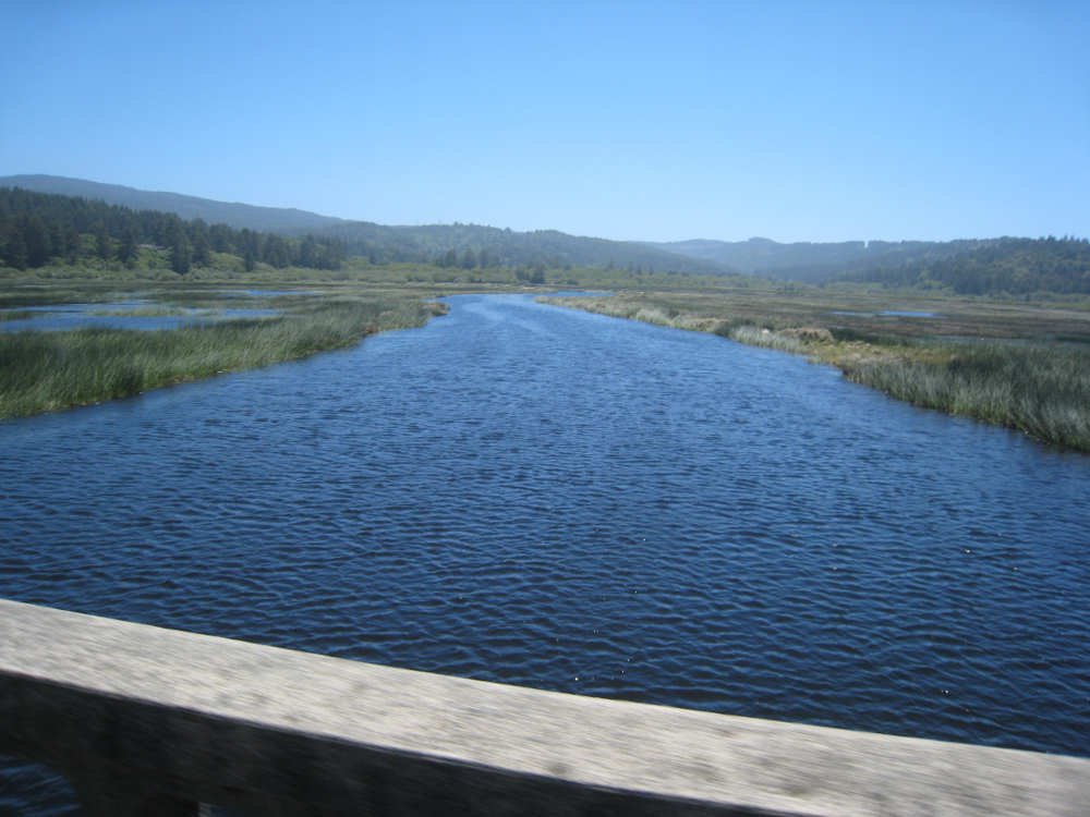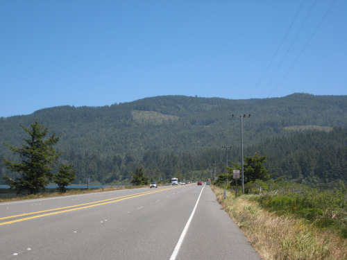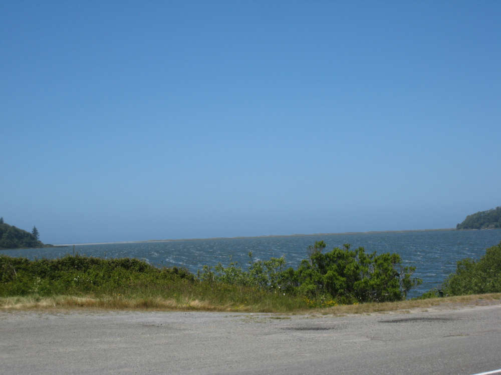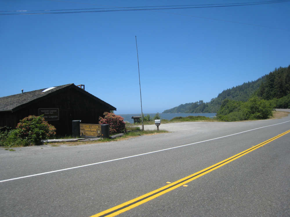 We got to the town of Trinidad, passing a turn-off for a nearby Indian Casino. Trinidad was another small resort town and probably was really pretty down along the coast, but Pat still wasn't feeling up to snuff, so we opted to go back onto 101 and get to Orick as quickly as possible so he could rest up. 101 was a 4-lane divided highway with a good shoulder at that point but it dwindled down to a 2-lane road with not much shoulder over the next 20 miles. There weren't any other towns between Trinidad and Orick, but the road meandered near the coast, around 3 lagoons (Big Lagoon, Stone Lagoon, and Freshwater Lagoon), up a few hills and through lots of forest with several mountain laurel and rhododendron bushes here and there. There were a couple of spots where the road went down to one lane due to road repair work. All in all, though, it was pretty scenic and quite enjoyable.