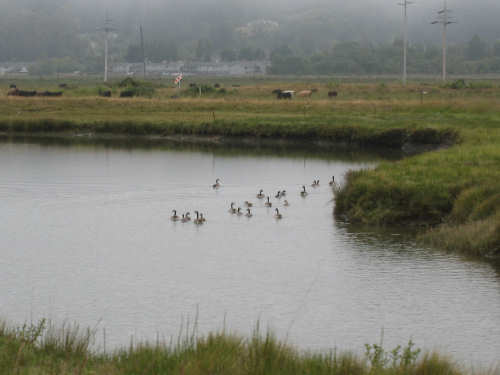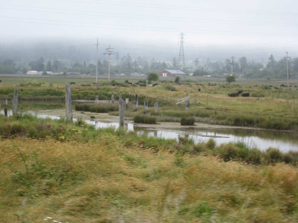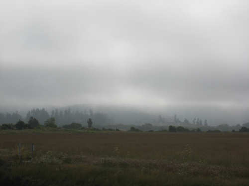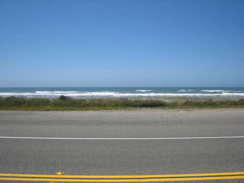 It was cloudy this morning when we started and there was lots of fog over the bay and in the forests. The visibility on the road was fine, though, and the fog cleared by 9:30 or 10. I guess it will be looking like this a lot when we get to Oregon. It was a little chilly, but warmed up when the sun came out. We had a hard time regulating our temperature - we would be warm going up hill when we were in full sun, but where it was shady or when the wind was blowing, it was often quite cold. The wind wasn't too bad today, stronger in the afternoon as usual, but not the knock-you-off-your-seat strong. The hills were pretty gentle today too.