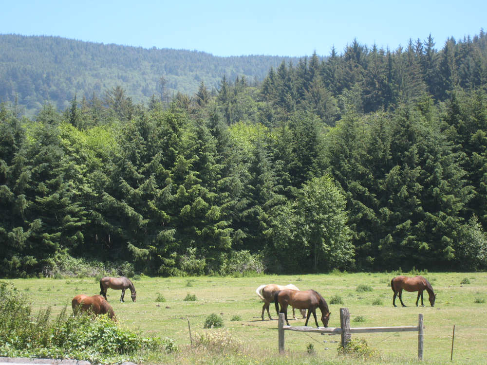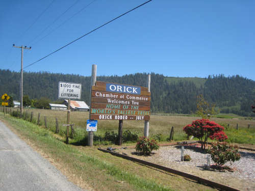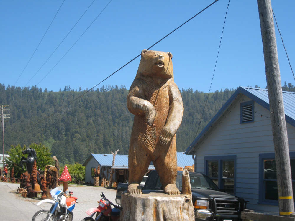 We reached Orick to find a welcome sign saying it was the home of the world's tallest trees. There were also lots of wood carvings for sale at a number of spots. A large area between Trinidad and Orick is designated the Redwood National Park, with lots of hiking trails and picnic spots. There were horses available for trekking through the forests. Apparently, there are elk in these forests as well. We got to our motel around 2:30, a very comfortable place with a cafe attached, so we have an easy breakfast place in the morning. The motorcycle run in Garberville, that we heard about when we were in that town, is having an impact here in Orick as well - lots of motorcycles are converging in the town, an easy run down to Garberville I guess, although it took us 2-1/2 days. Pat's trying to sleep off whatever's bothering him, so we'll see how he feels in the morning. Hopefully, he'll be well enough to hit the road again. We finished the day at 45.3 miles in 4-3/4 hours of bike time, our best average since before San Francisco.